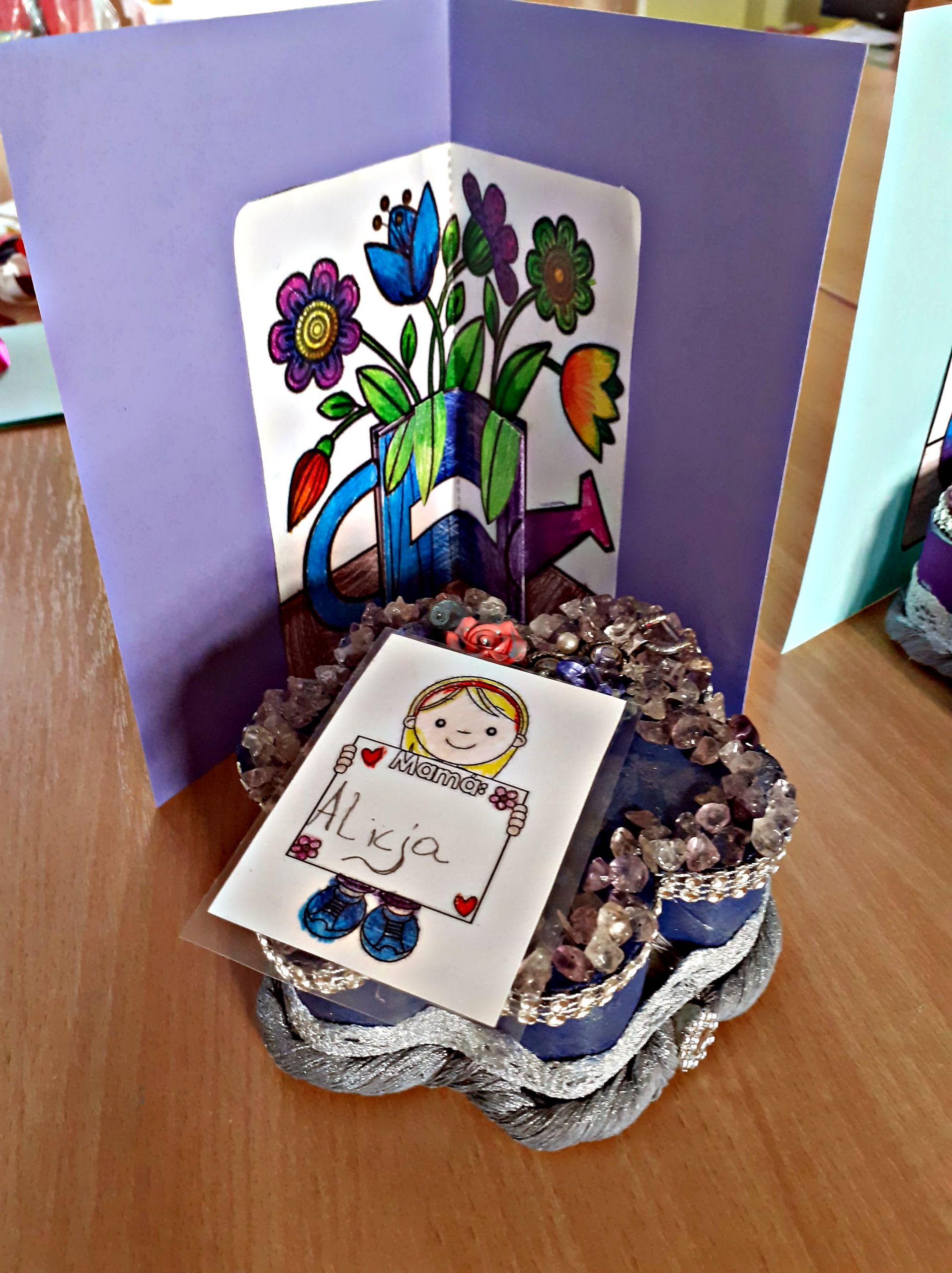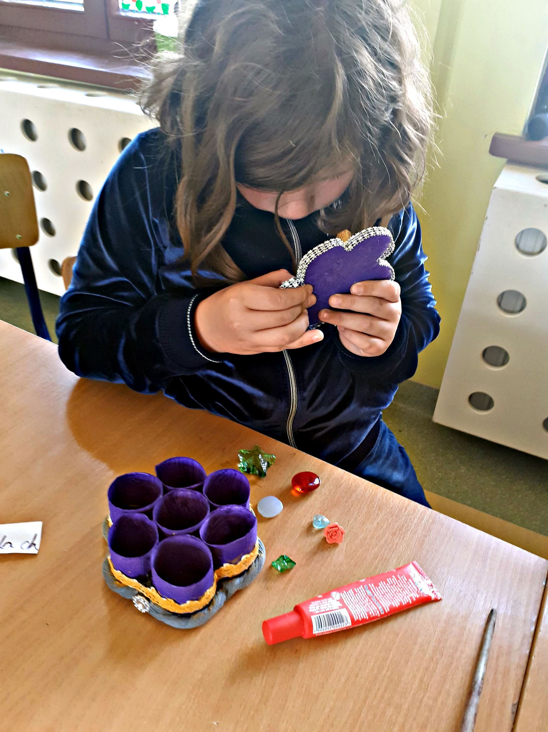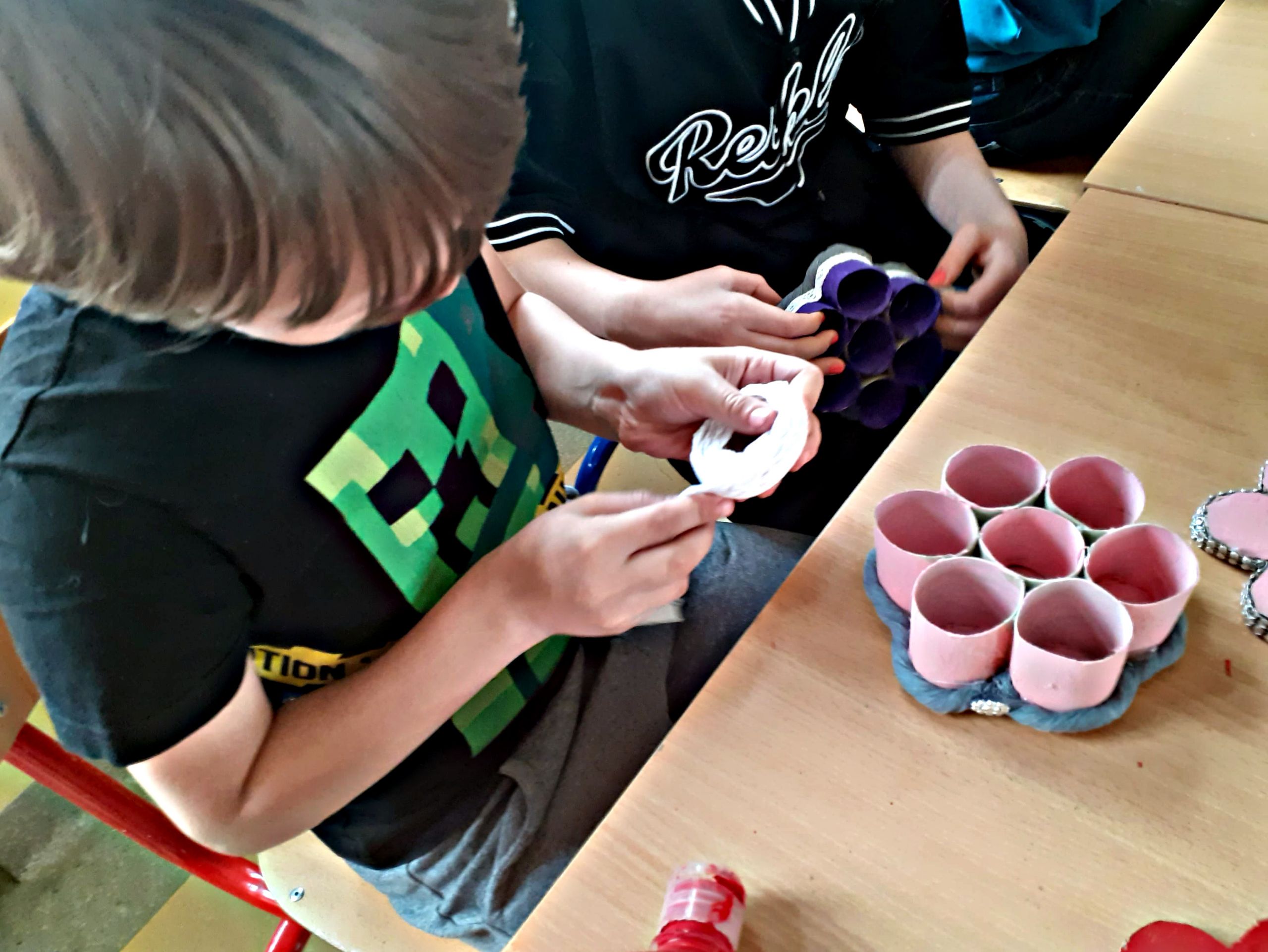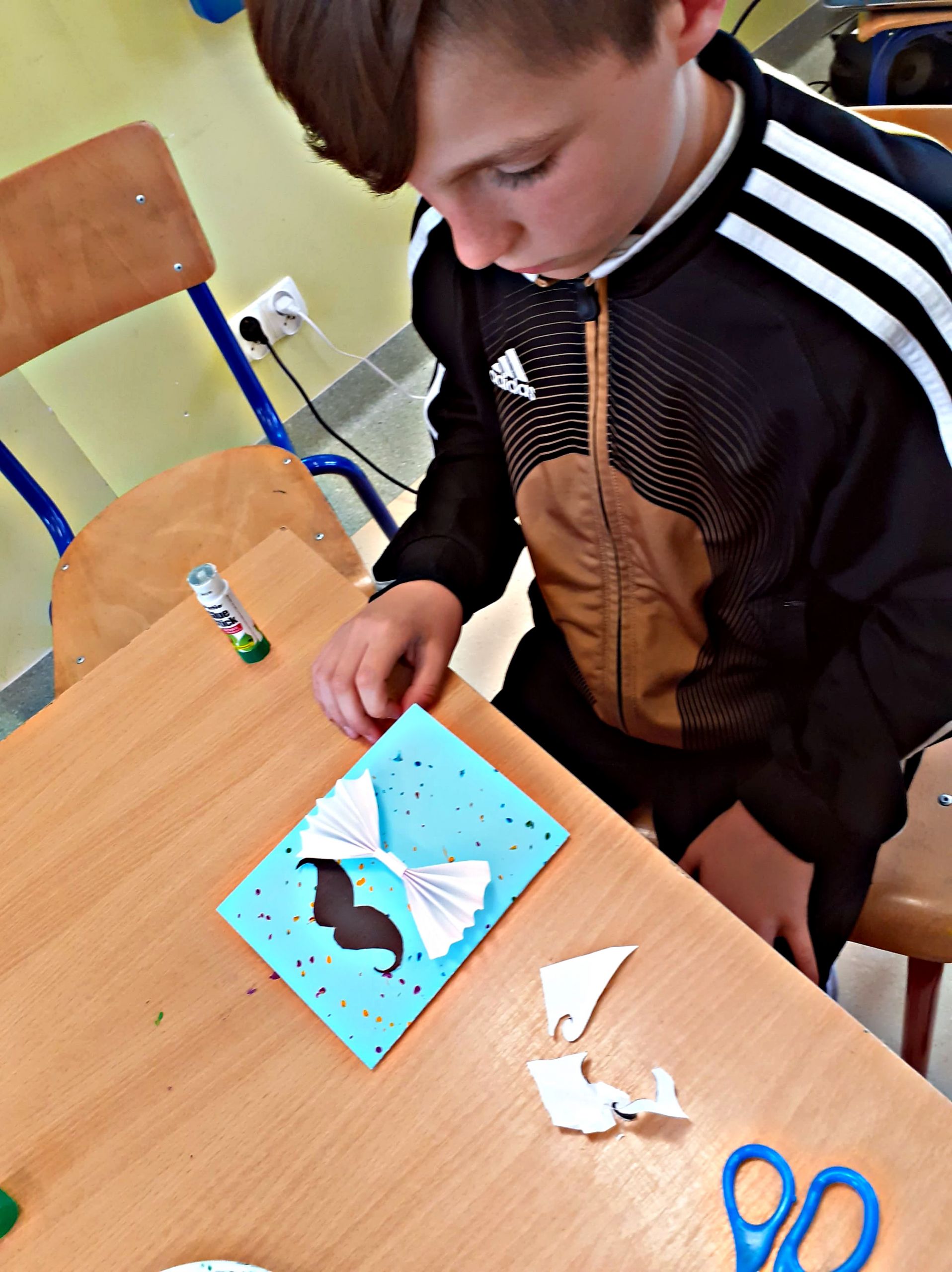 Po około 3 tygodniach przygotowań, nadszedł wyczekiwany przez nas Dzień Rodziny. Frekwencja dopisała, podobnie jak dobre nastroje. Fotorelacja z samego wydarzenia jest uboga, ze względu na fakt, że zbyt wiele się działo. Rozmowy, śmiechy, wręczanie prezentów – to wszystko sprawiło, że zapomnieliśmy o robieniu zdjęć. Ale nadrabiamy zdjęciami z poszczególnych etapów powstawania prezentów. Dla mam robiliśmy szkatułki na biżuterię i kartki z życzeniami 3D. Tatusiowie otrzymali ręcznie malowane kubki oraz laurki z wąsami i muszką na stronie tytułowej.