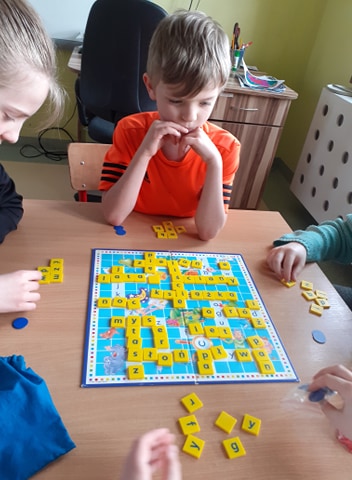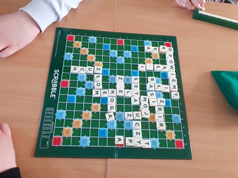 Scrabble to najpopularniejsza na świecie gra słowna, którą w 1931r. wymyślił Alfred Butts. 13 kwietnia to dzień scrabble, więc już wiedzieliśmy, jak spędzimy czas na zajęciach w świetlicy. Była wersja dla młodszych i starszych. Scrabble junior pomagały w tworzeniu słów dzięki podpowiedziom słownym i obrazkowym. Scrabble tradycyjne, czy literaki, jak również się o nich mówi, pobudziły naszą kreatywność i logiczne myślenie. W wyniku zdrowej rywalizacji najwięcej punktów zdobyła Julia – gratulujemy wyobraźni, zasobu słownictwa i znajomości ortografii!