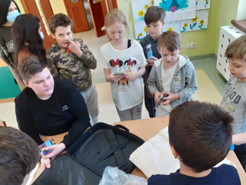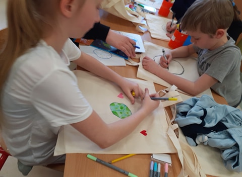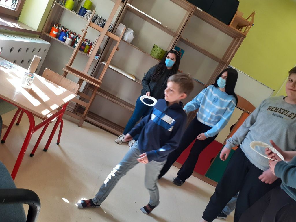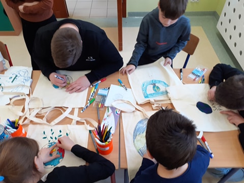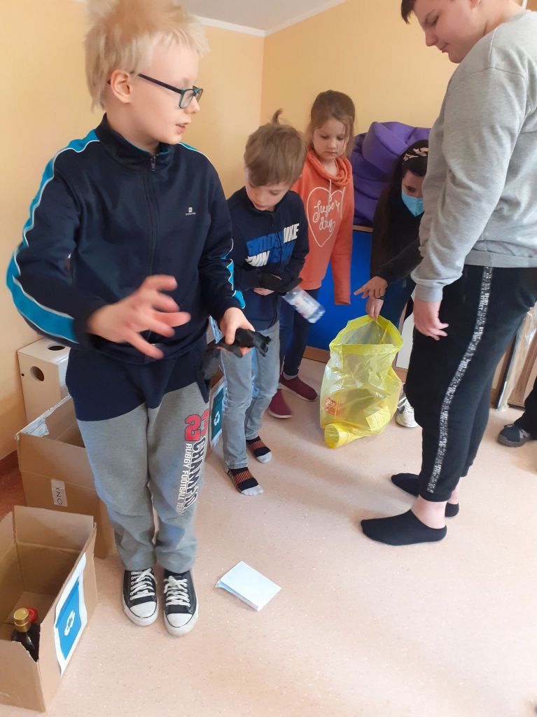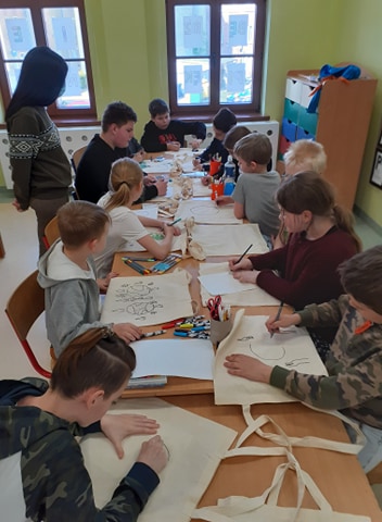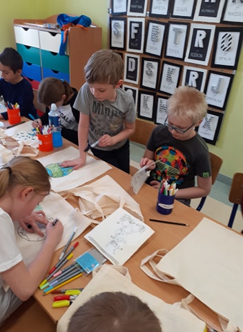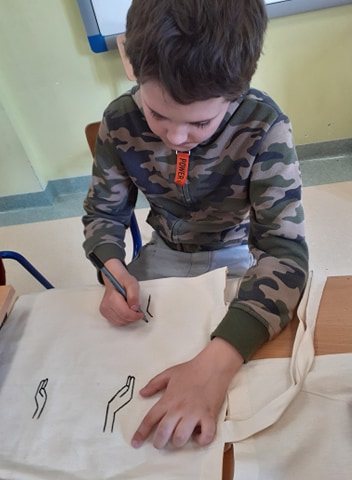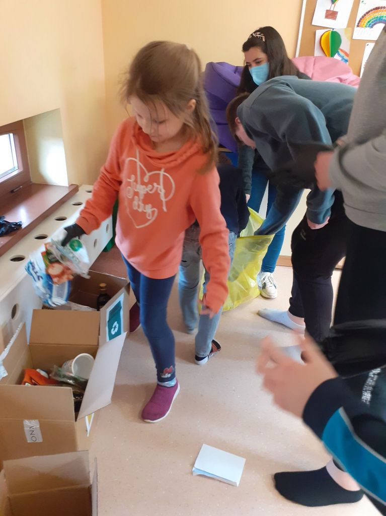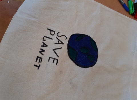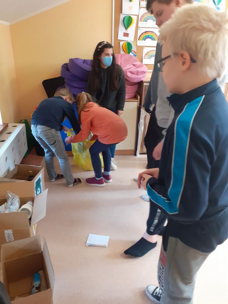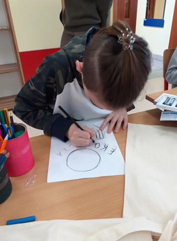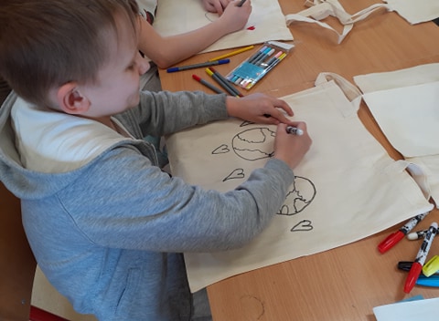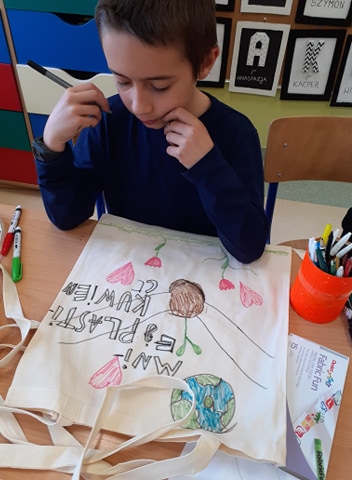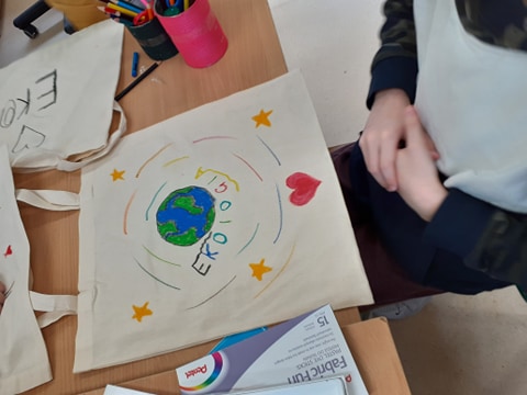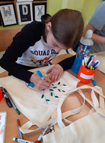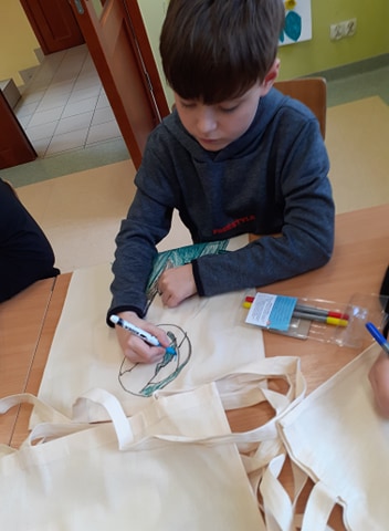 Ostatnie dwa dni to połączenie super zabawy i edukacji, a to za sprawą naszych dwóch wolontariuszek z @Europejski Korpus Solidarności – Inmy i Alicji, które przygotowały dla nas Eko warsztaty. Niejako kontynuując zajęcia które odbyły się z okazji Dnia Ziemi, pogłębiliśmy naszą wiedzę na temat tego jak dbać o naszą planetę. Wiemy już co należy robić: wyłączać światło po wyjściu z pomieszczenia i urządzenia, kiedy z nich nie korzystamy; zakręcać kran tak, aby nie kapała z niego woda; wziąć prysznic zamiast kąpieli w wannie; segregować śmieci, aby mogły zostać poddane recyclingowi. Kiedy już sobie pewne rzeczy przypomnieliśmy, a o innych dopiero się dowiedzieliśmy, czekało na nas kilka zadań do wykonania – zrobienie karmnika dla ptaków, zasadzenie roślinki, posegregowanie śmieci do właściwych pojemników czy dopasowanie czynności do tych chroniących środowisko lub nie. Tego dnia otrzymaliśmy również woreczki na owoce i warzywa, aby uniknąć używania w sklepie tych foliowych. Wolontariuszki ogłosiły nawet w związku z tym konkurs – przewidziały nagrodę dla osoby, która dostarczy najwięcej zdjęć świadczących o tym, że eko woreczek był używany. Drugi dzień zajęć to eko torby na zakupy. Jednak aby je otrzymać, musieliśmy rozwiązać kilka zagadek. Kiedy nam się to udało, uzyskaliśmy kod do otwarcia torby, w której były one ukryte. Nie chodziło o to, aby było one takie zwyczajne, a ozdobione przez nas w duchu ekologicznym. Nie było na nich zatem super bohaterów, postaci z bajek, słodkich zwierzątek i innych, a hasła i obrazki zachęcające do dbania o Ziemię i środowisko naturalne.