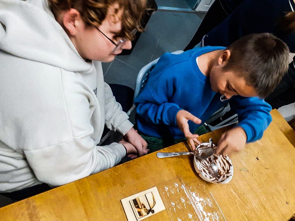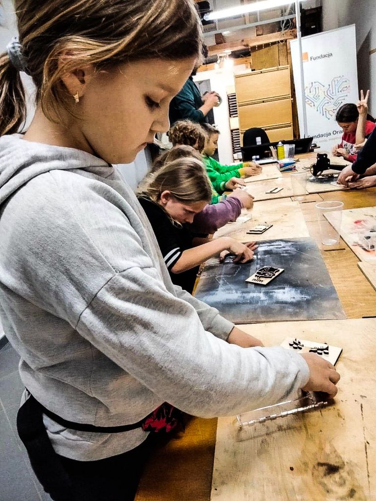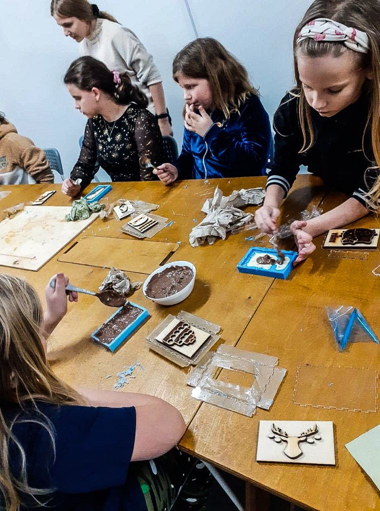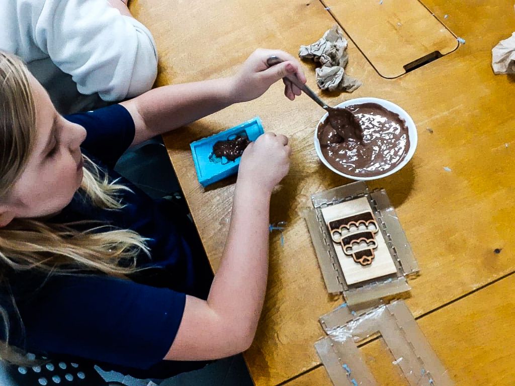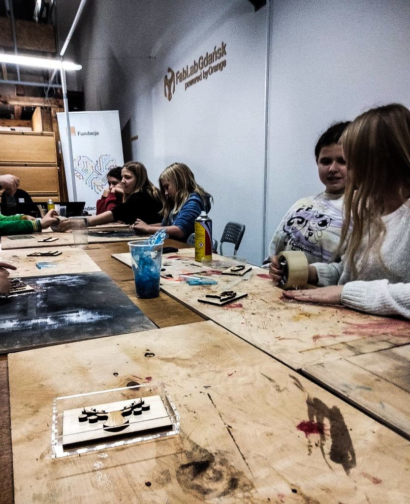 Za nami kolejne warsztaty w FabLab Gdańsk powered by Orange. Przygotowywaliśmy sobie od postaw silikonowe formy do wyrobów z czekolady. Za nami dużo pracy – szlifowania, oczekiwania na wycięte przez maszynę elementy, rozpuszczania czekolady, zalewanie nią formy i ostatni etap – schładzanie w lodówce. 6 godzin spędzonych w pracowni FabLabu zaowocowało pysznymi czekoladowymi kotkami, samochodami, stworkami i już nawet świątecznymi reniferami. Większość „nie przeżyła” drogi do domu. Skonsumowaliśmy je jeszcze na miejscu. Zdjęcia trzeba było robić szybko, bo wszystko znikało w błyskawicznym tempie. Test form silikonowych do czekolady wyszedł pomyślnie, teraz będziemy z nimi działać w naszych domach.