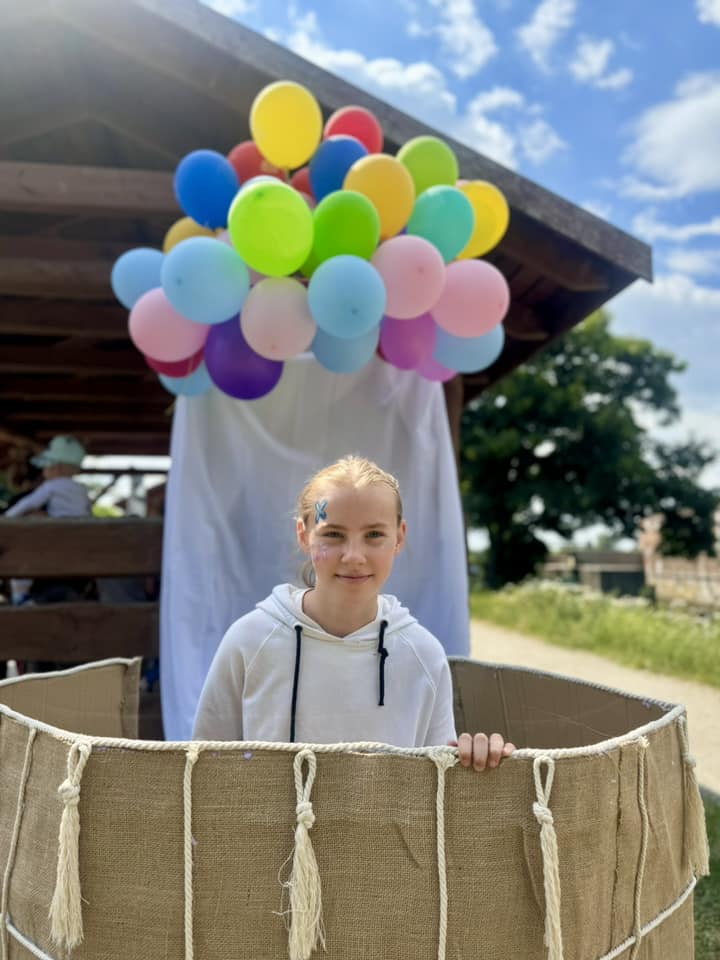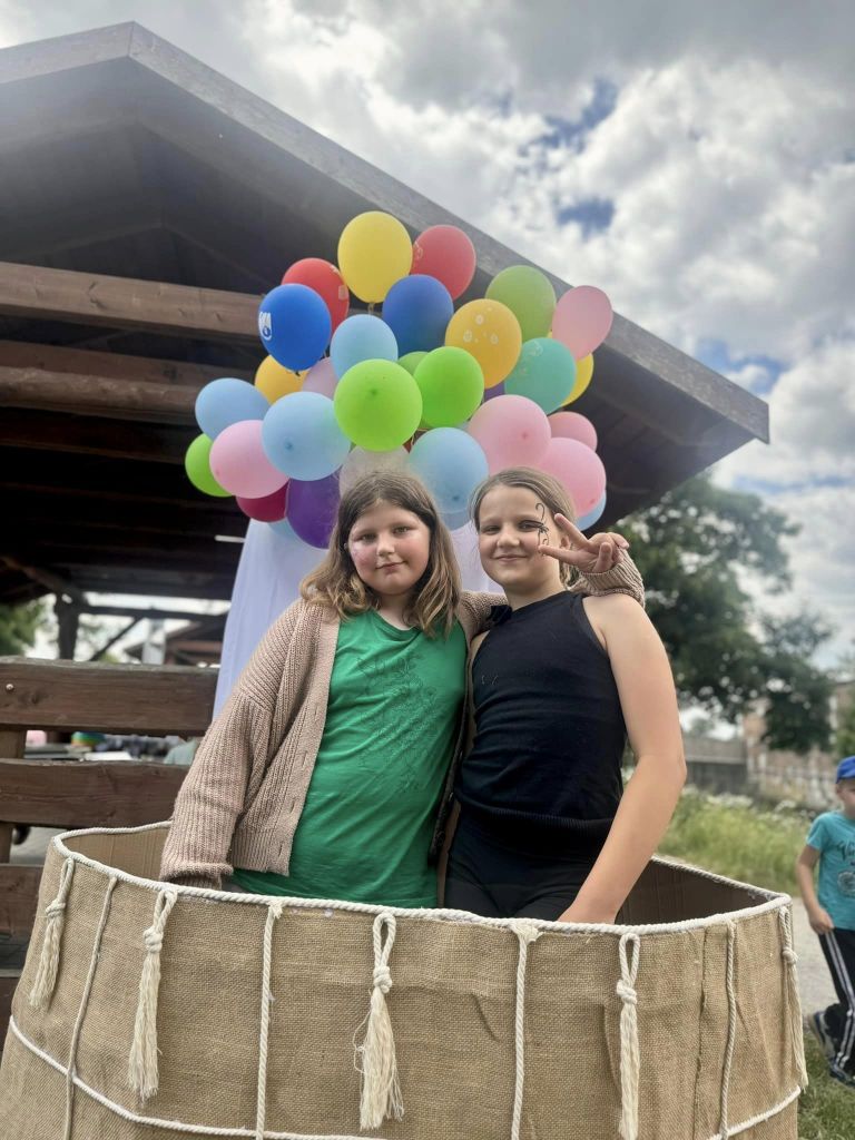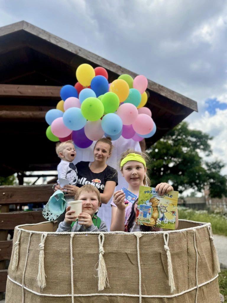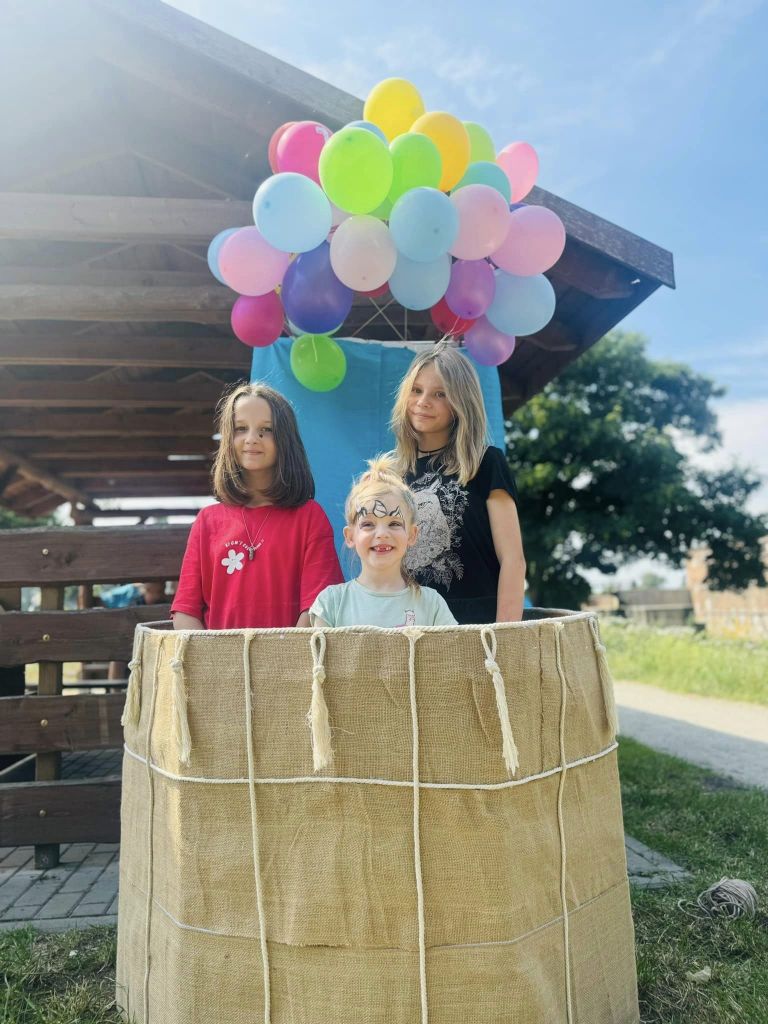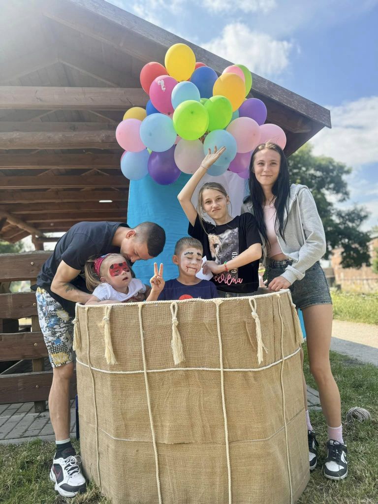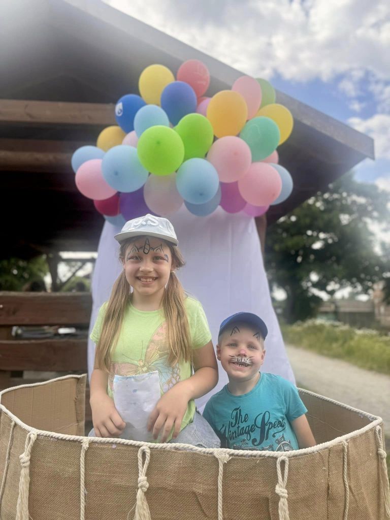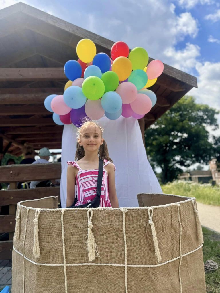 . Był nią kosz z kolorowymi balonami – zupełnie jak w bajce „Odlot”.