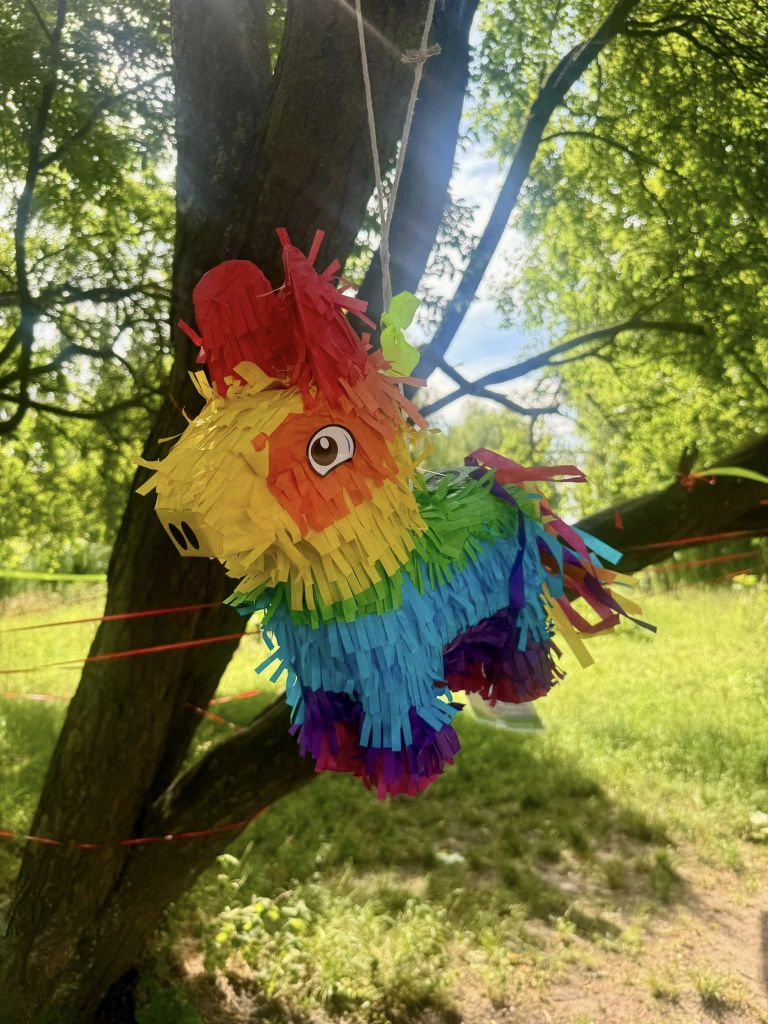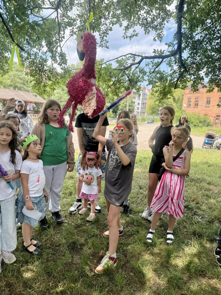 . Zadanie nie było łatwe, potrzeba było wielu uderzeń dzieci, aby móc się cieszyć słodkościami ukrytymi w ich wnętrzu, ale ostatecznie każdy poszedł do domu z mnóstwem cukierków.