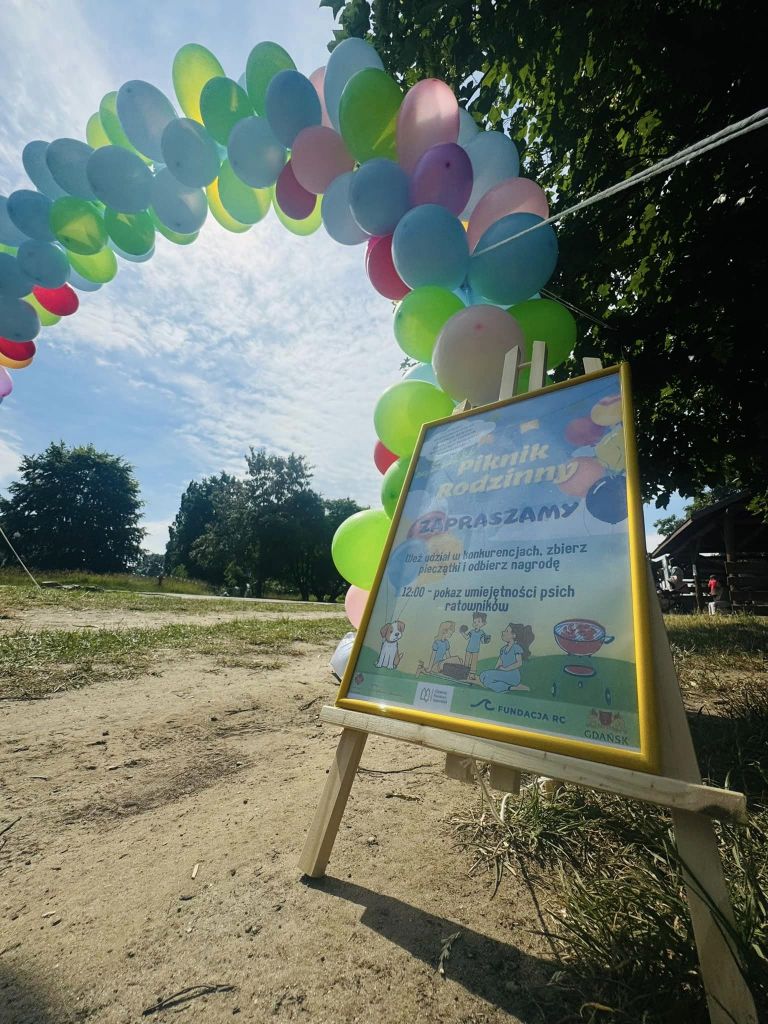 Spotkaliśmy się na terenie przy kamiennej śluzie – ozdobionym kolorowymi chorągiewkami i wejściem z łuku z balonami.