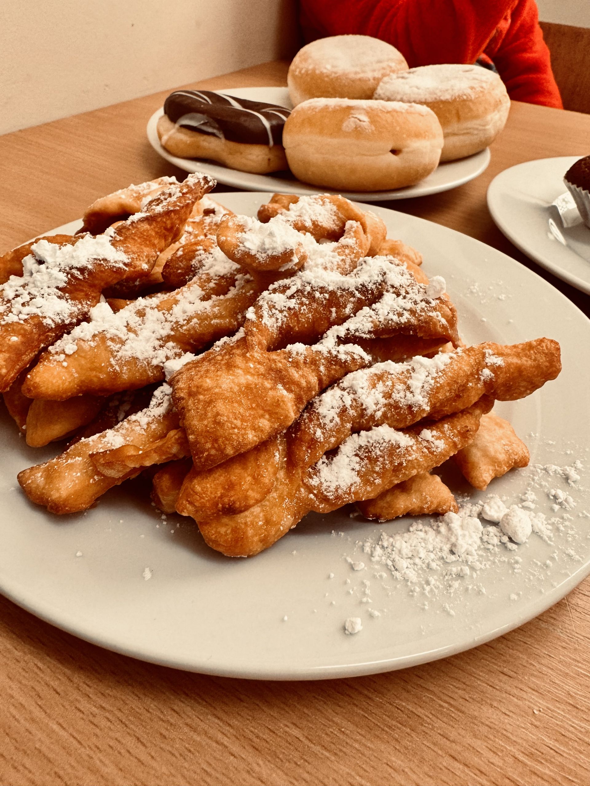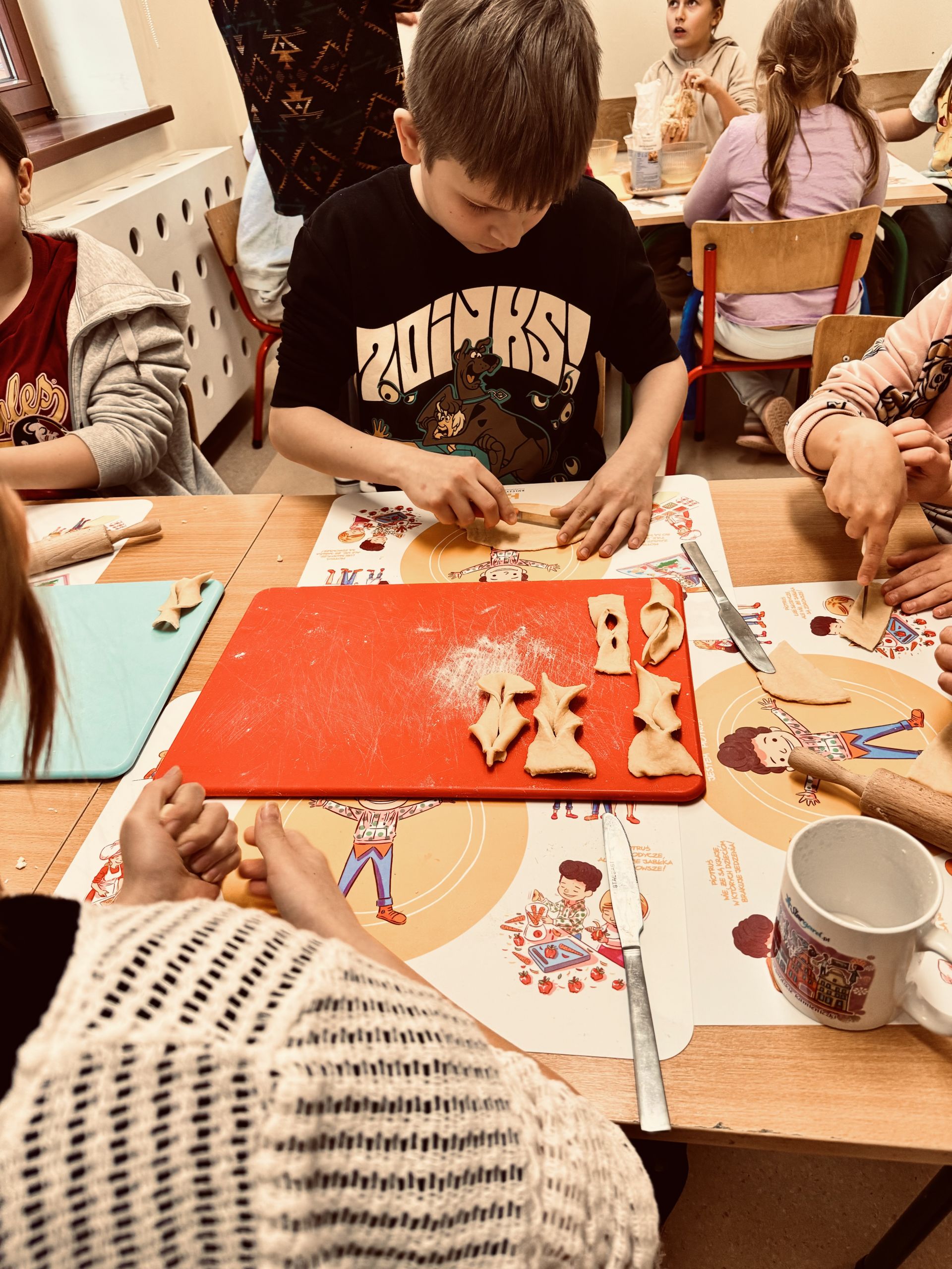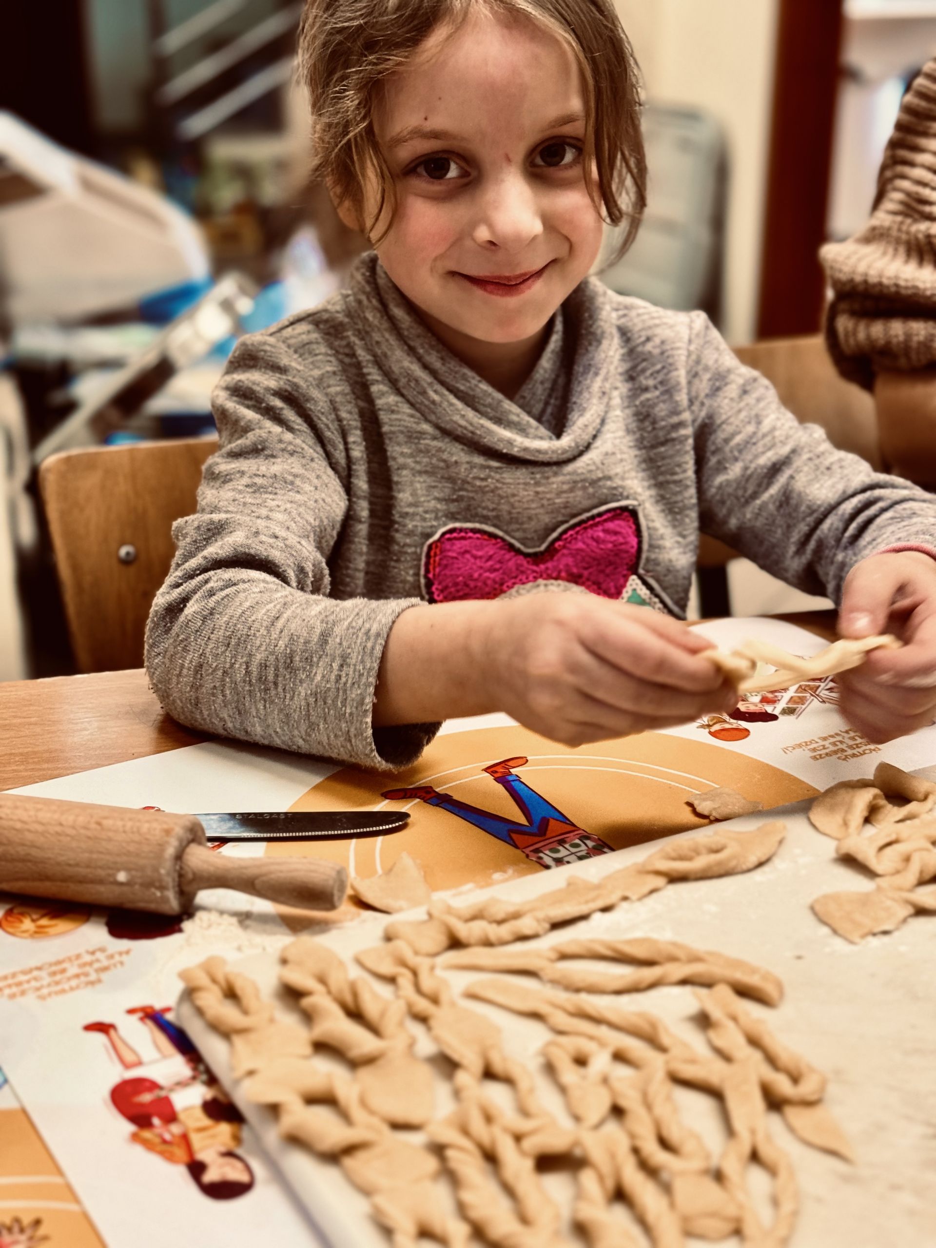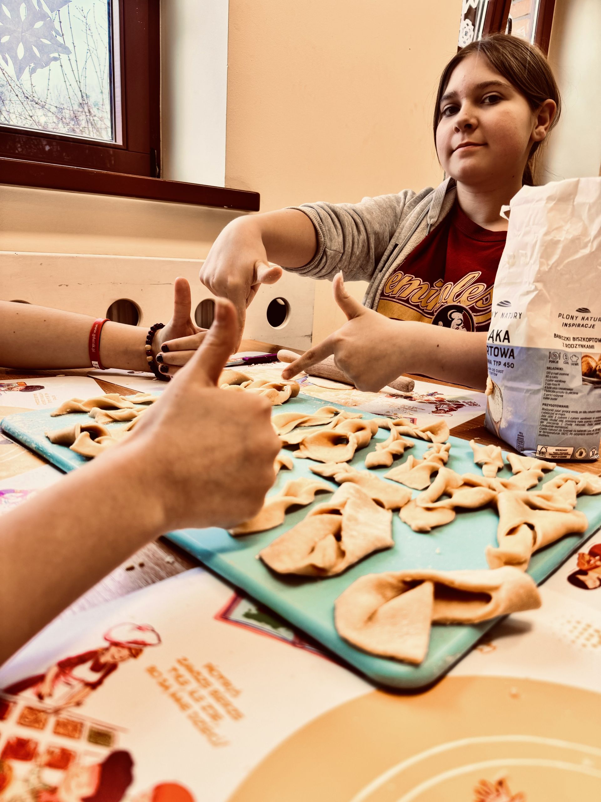My nie poszliśmy na łatwiznę. Dzień wcześniej przygotowaliśmy faworki/chruściki/kreple. Wyrabianie ciasta, wałkowanie, krojenie na paski i przewlekanie ich sprawiło nam mnóstwo frajdy. Smakowały najlepiej!