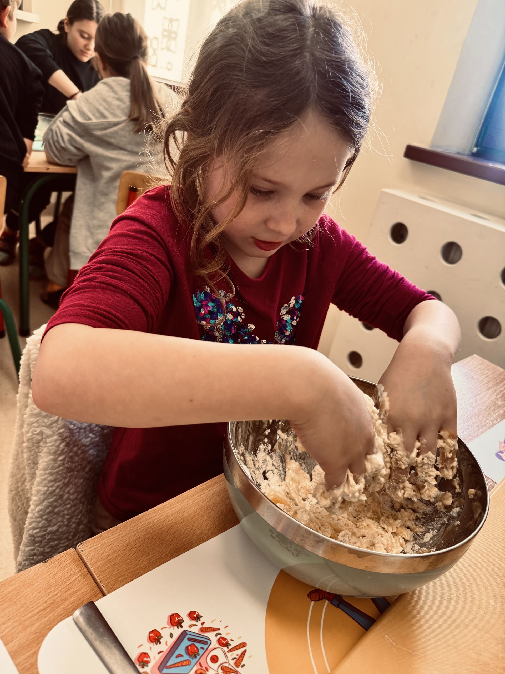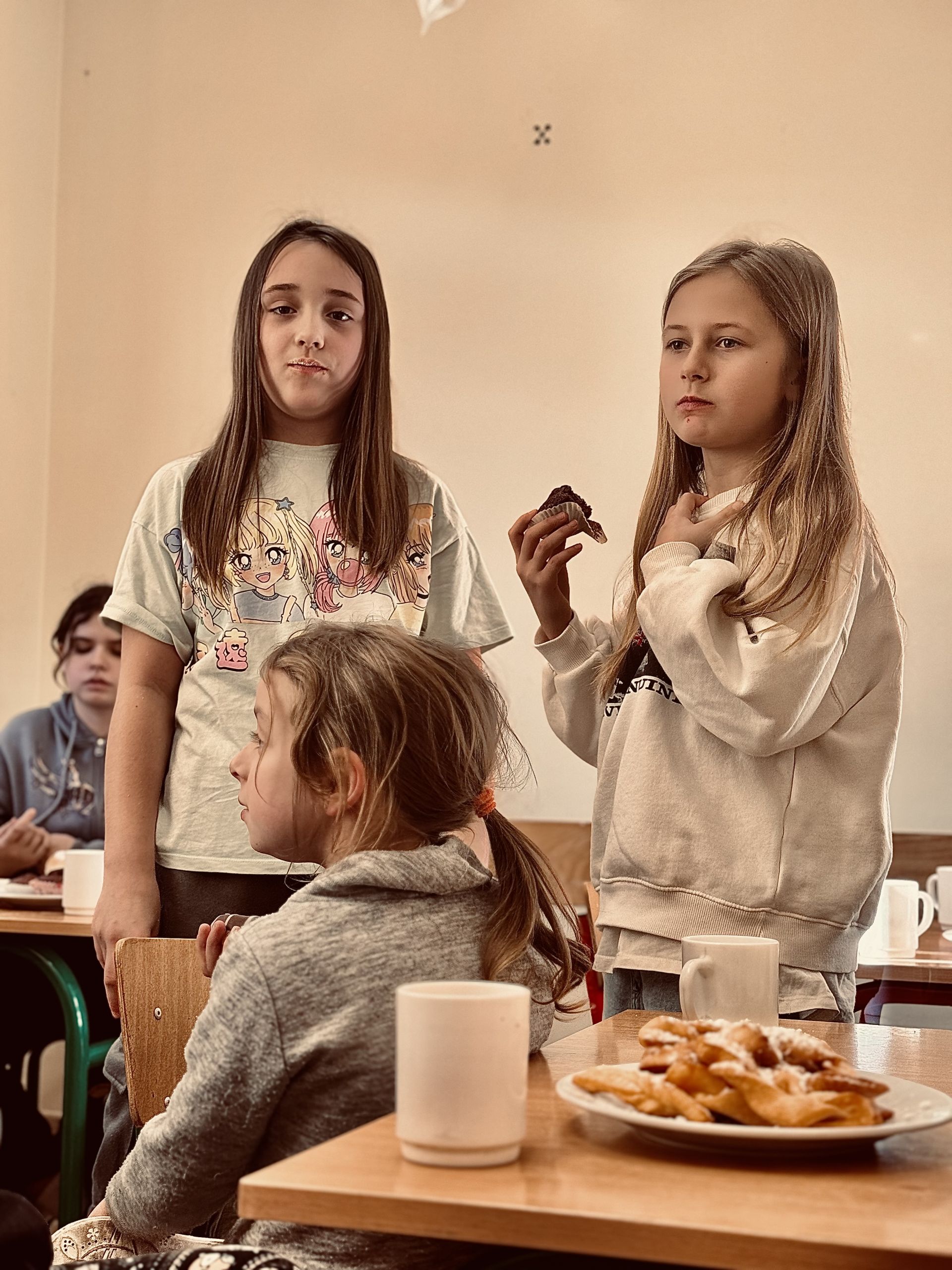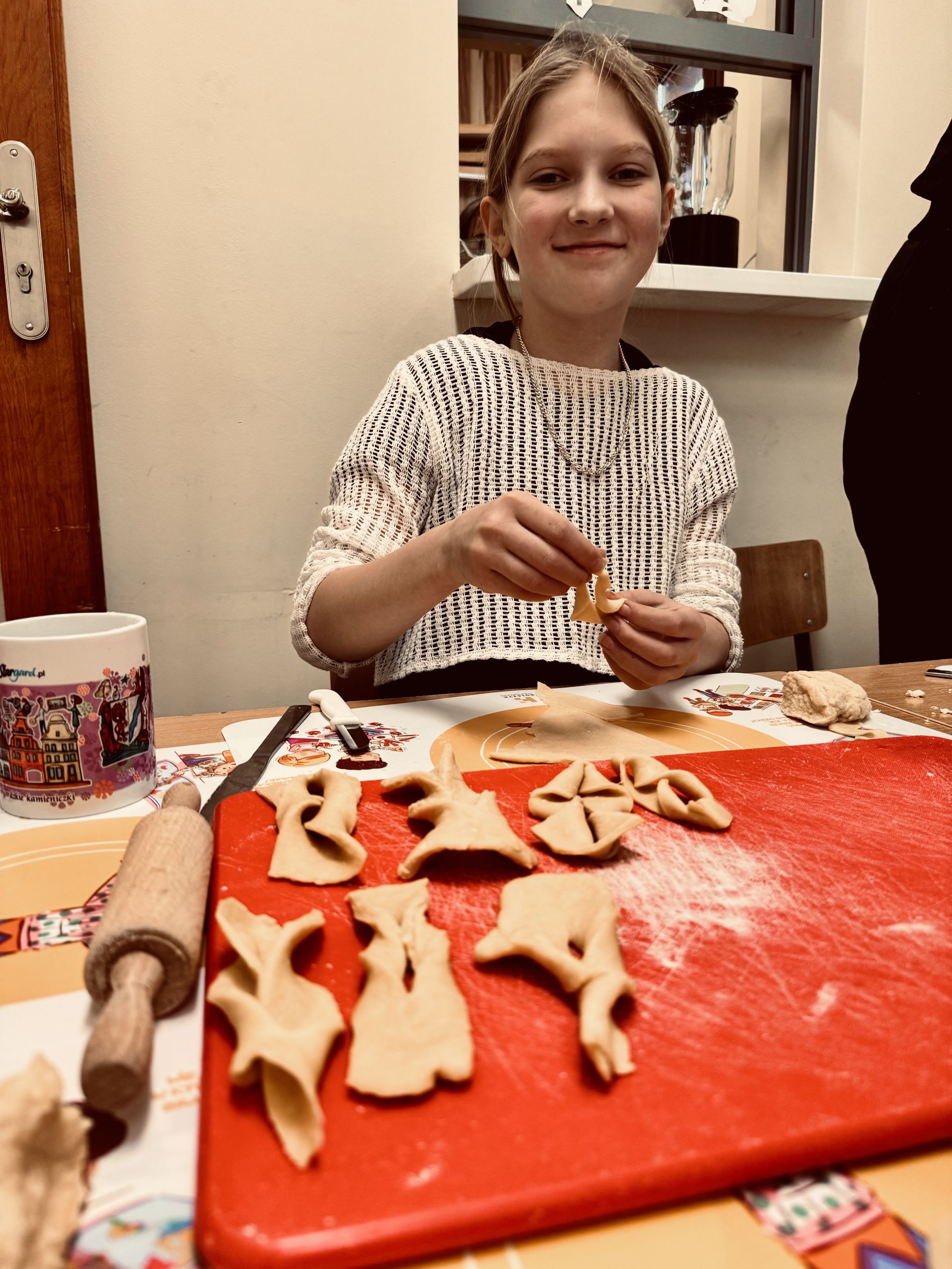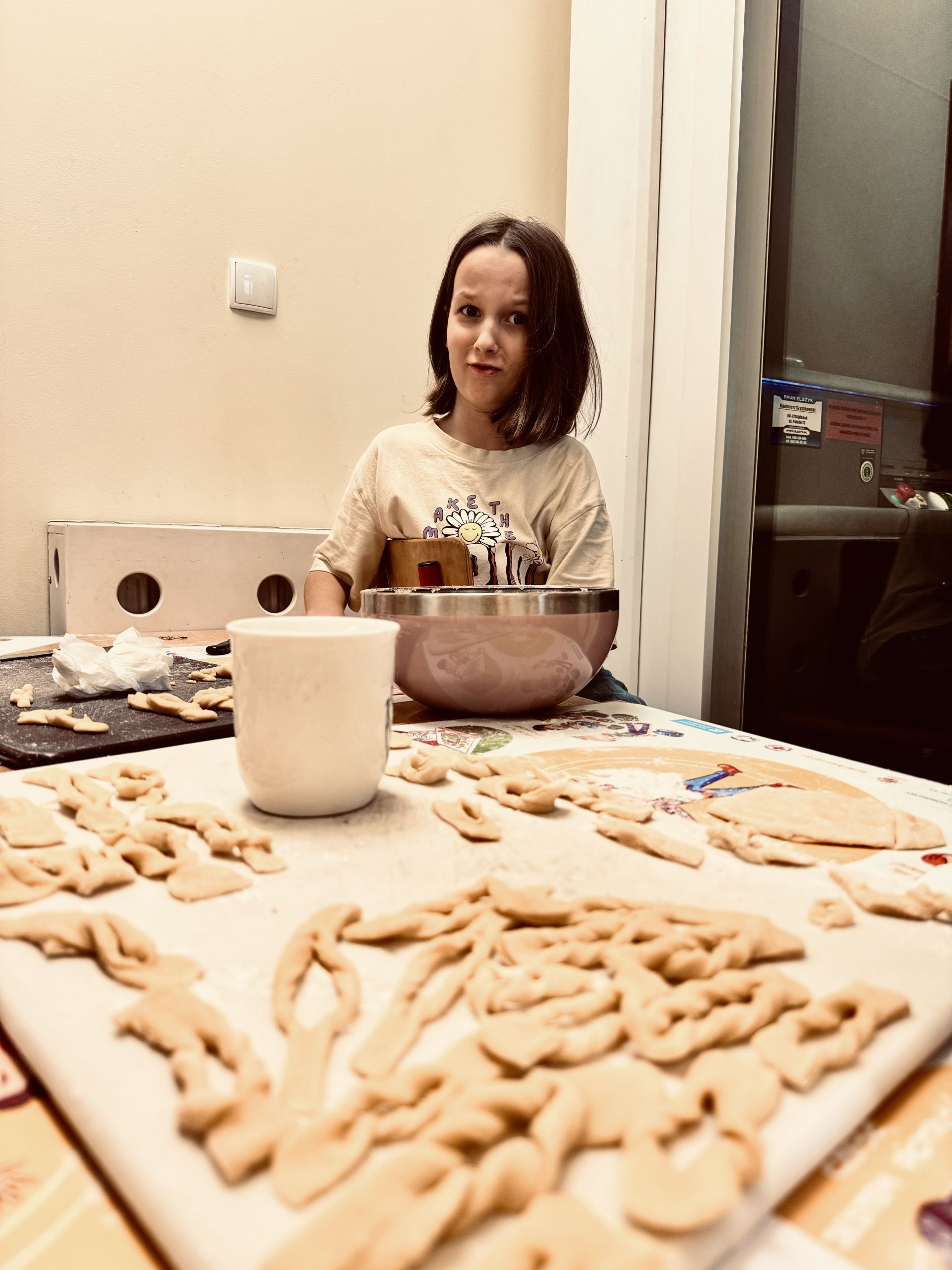 My nie poszliśmy na łatwiznę. Dzień wcześniej przygotowaliśmy faworki/chruściki/kreple. Wyrabianie ciasta, wałkowanie, krojenie na paski i przewlekanie ich sprawiło nam mnóstwo frajdy. Smakowały najlepiej!