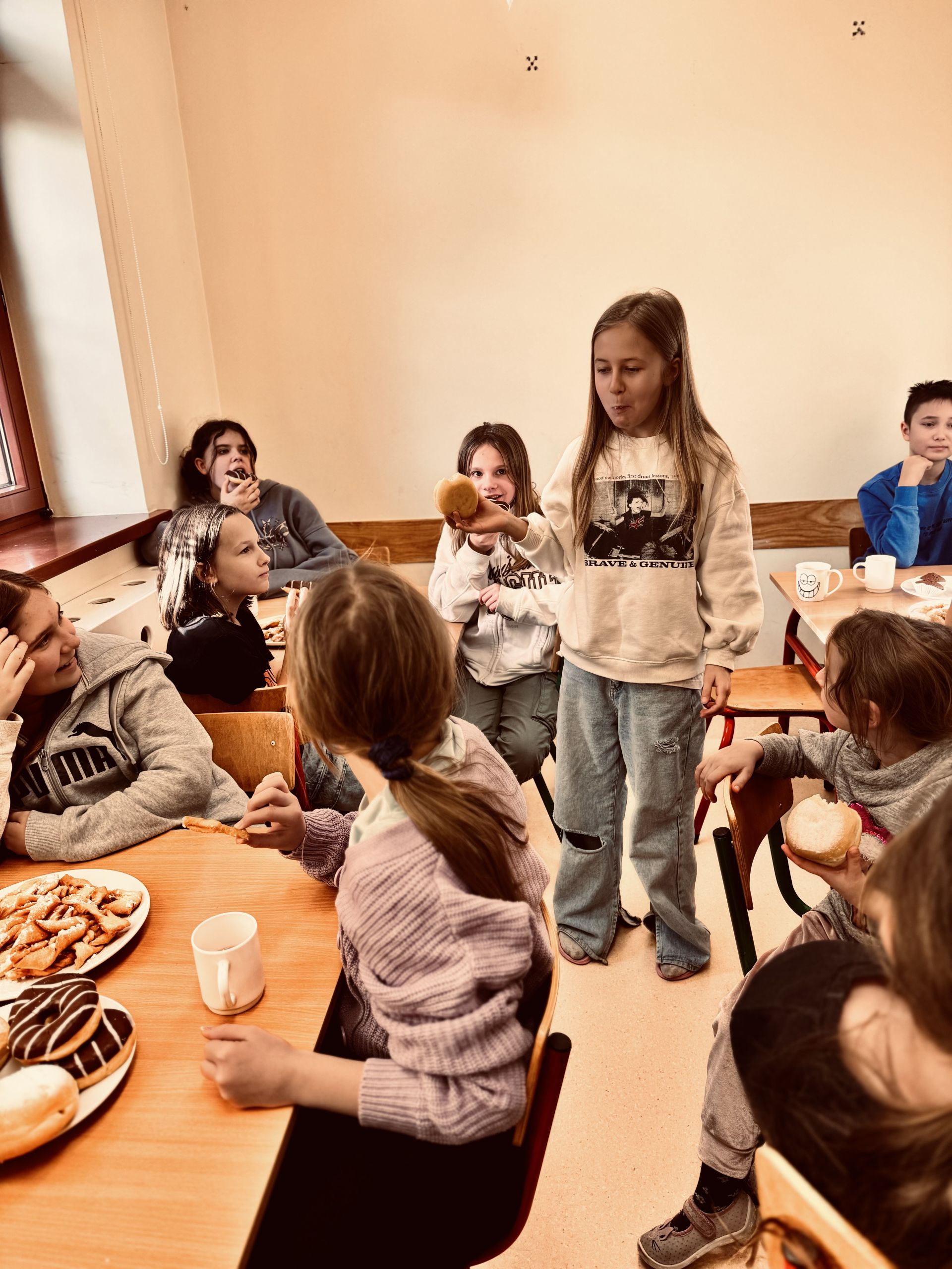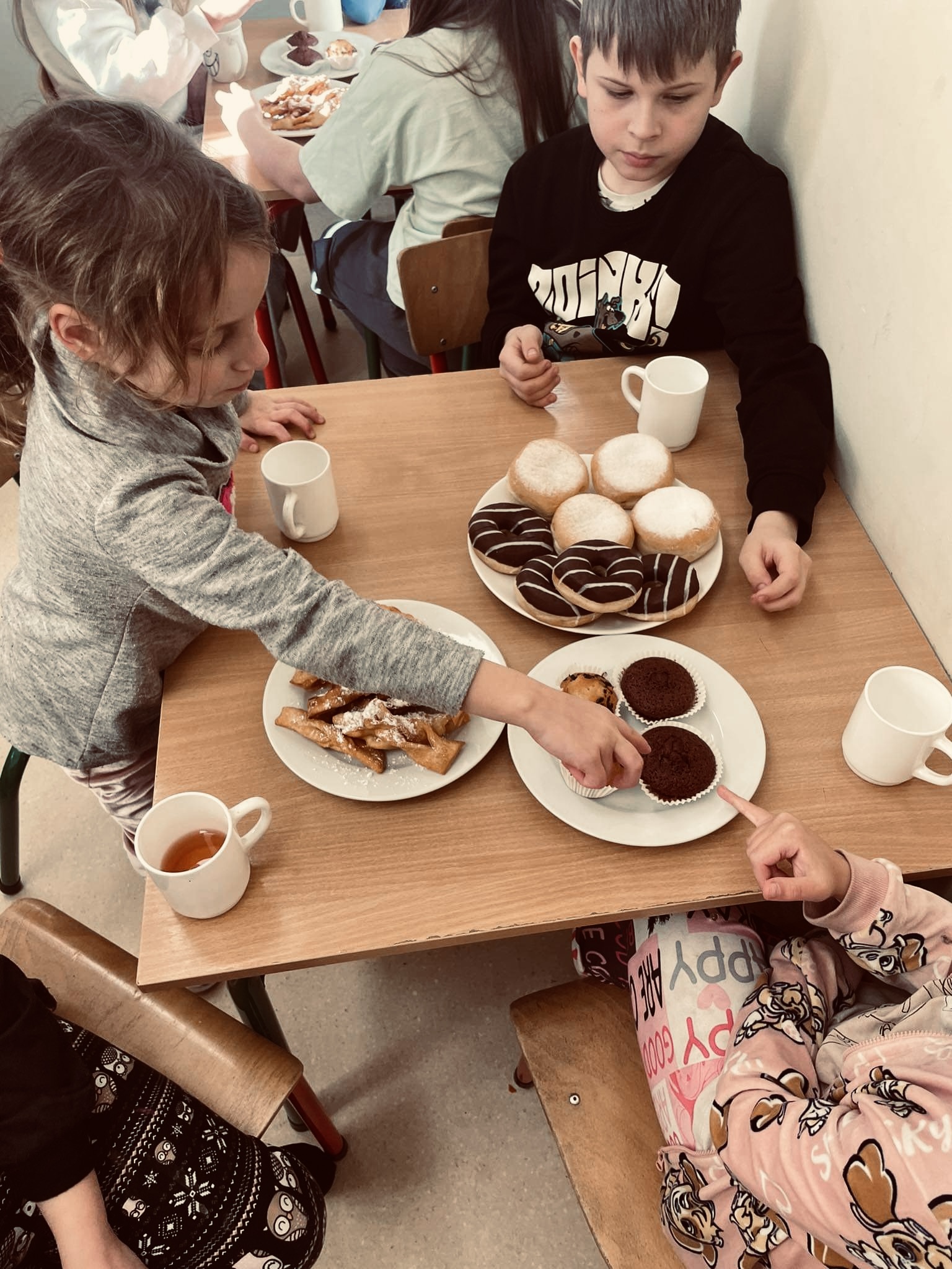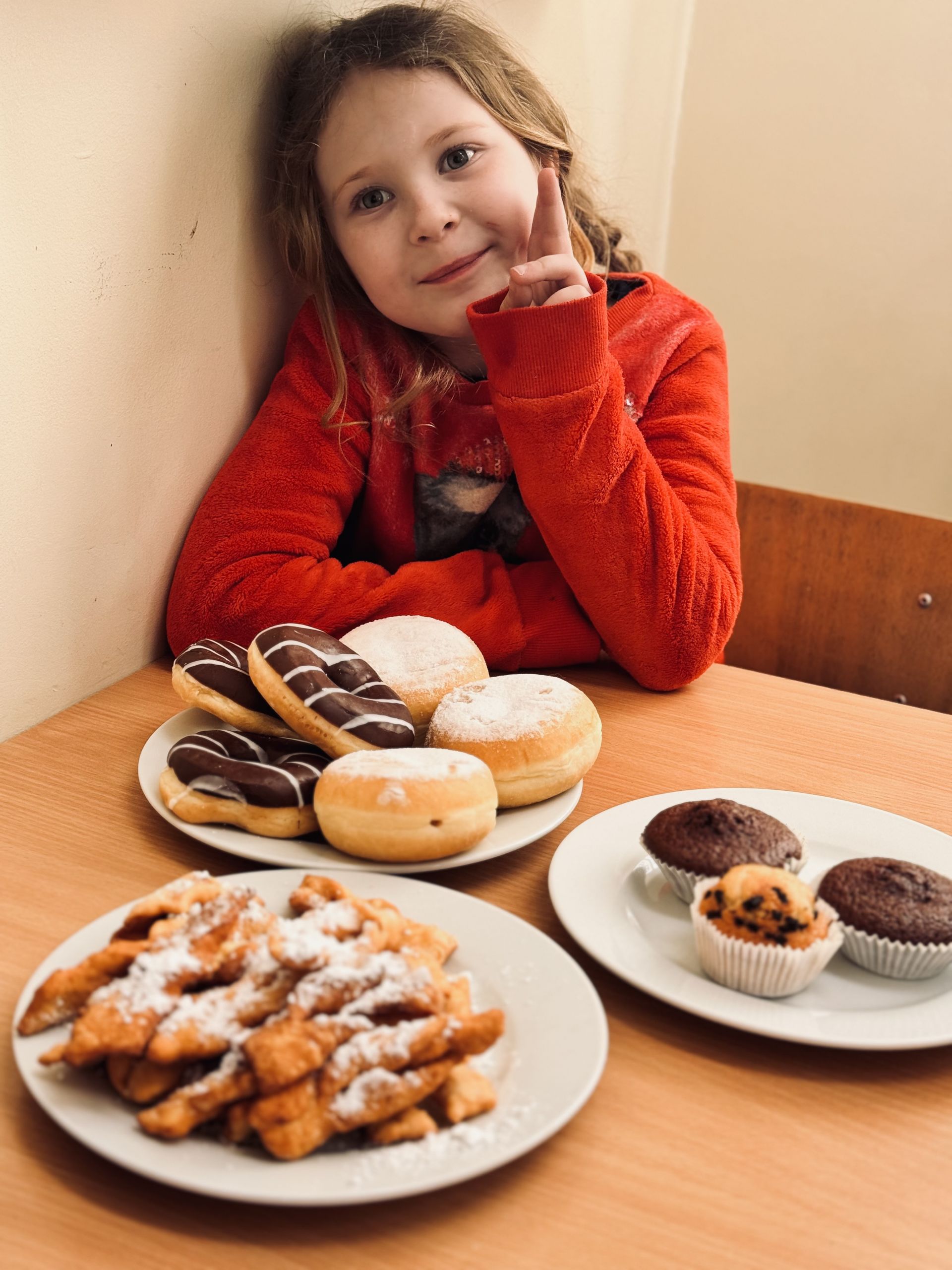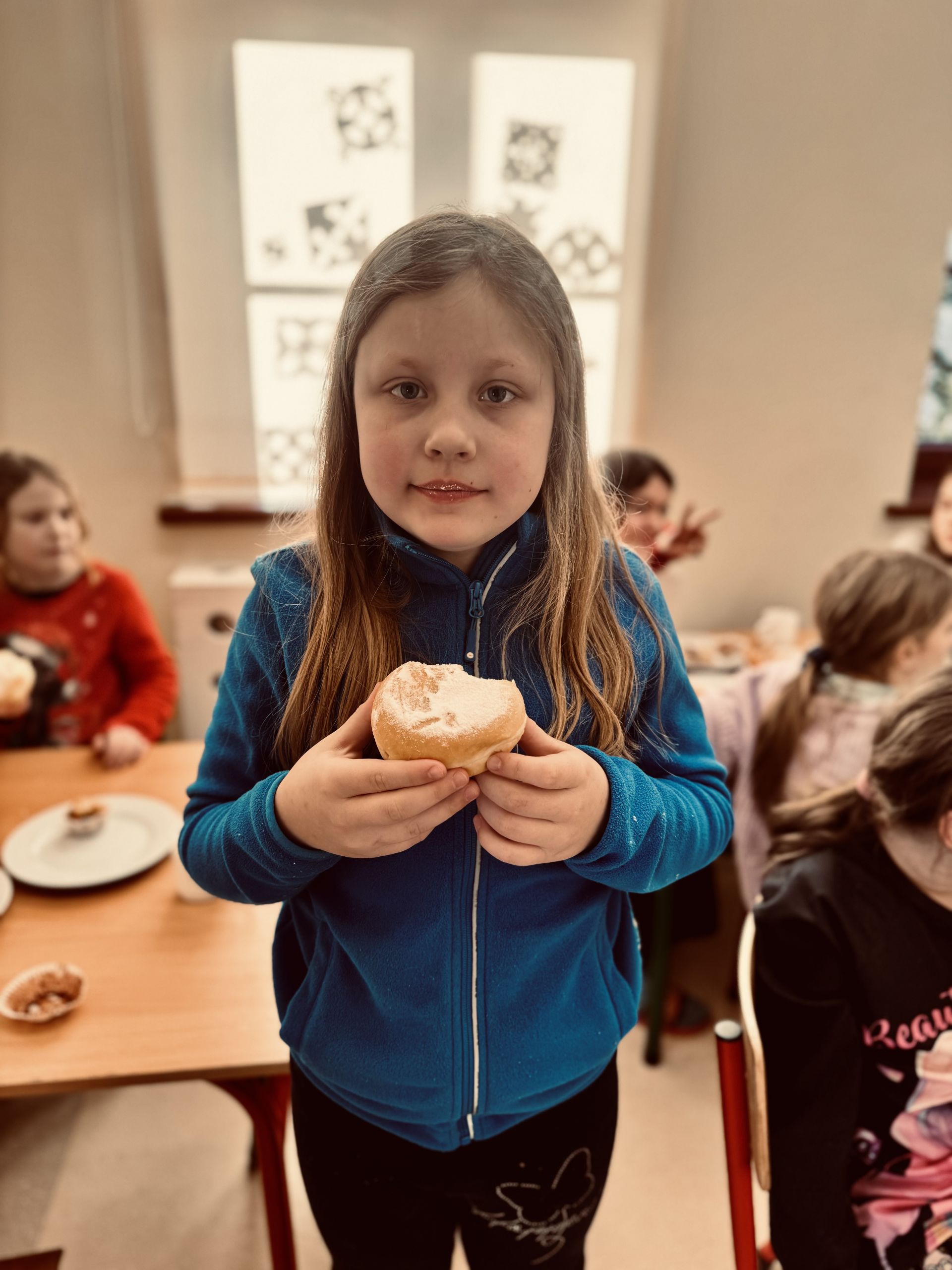 Pączki i donaty też były, o co zadbały ciocie. Najlepszy był konkurs na zjedzenie pączka bez oblizywania się.