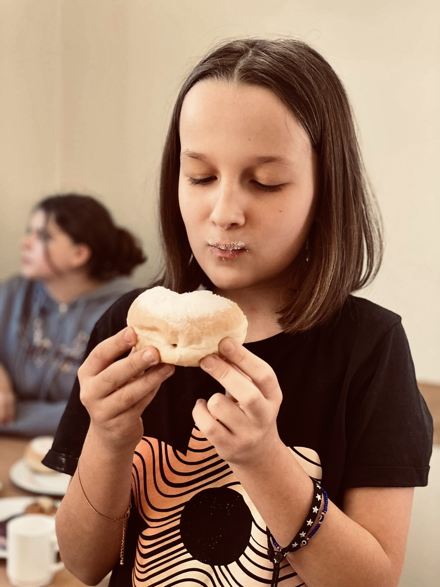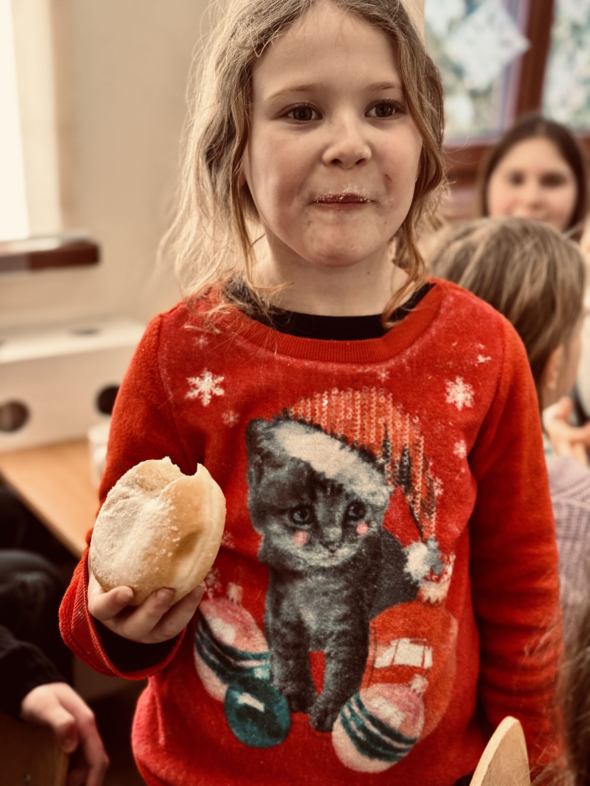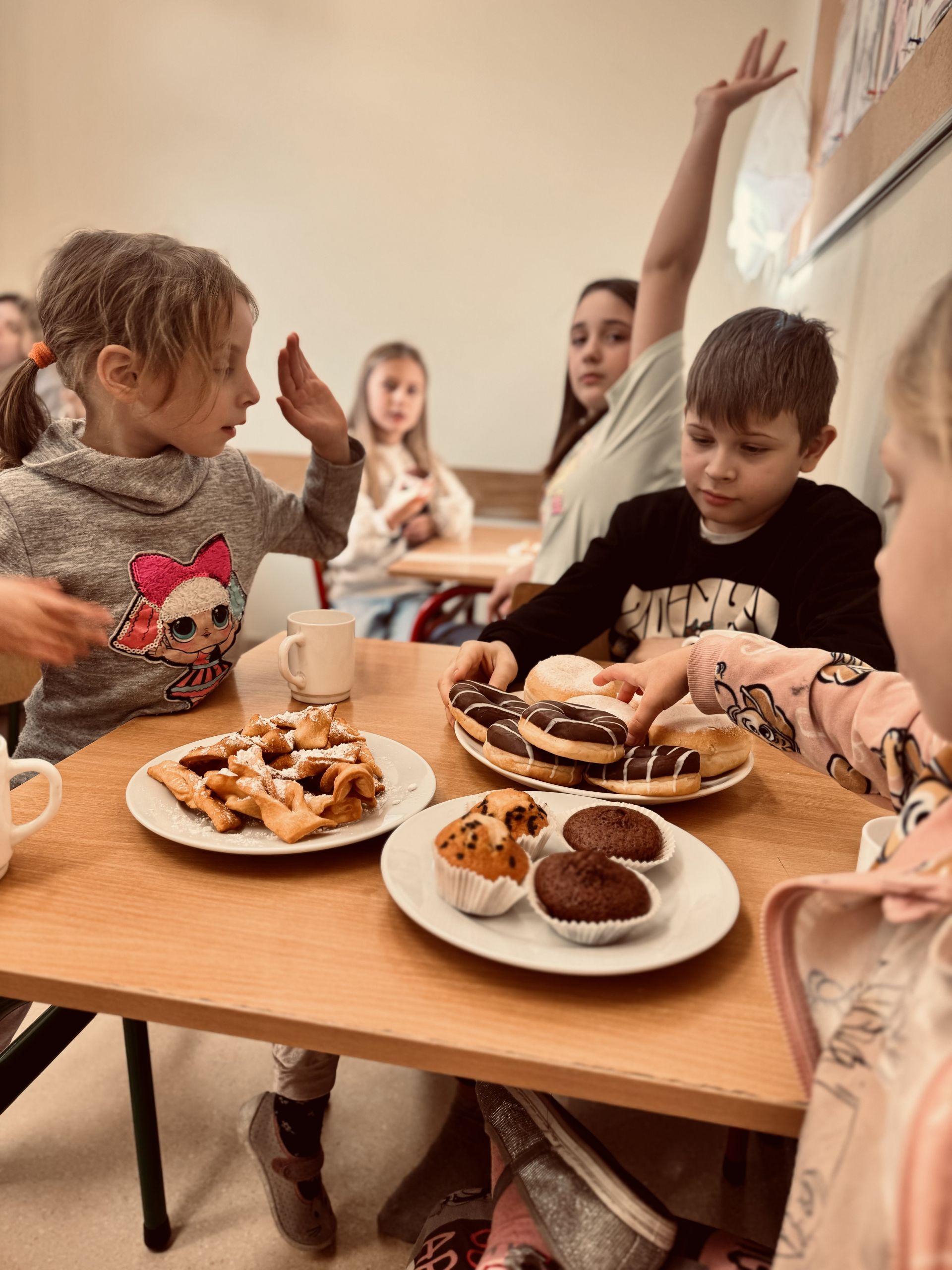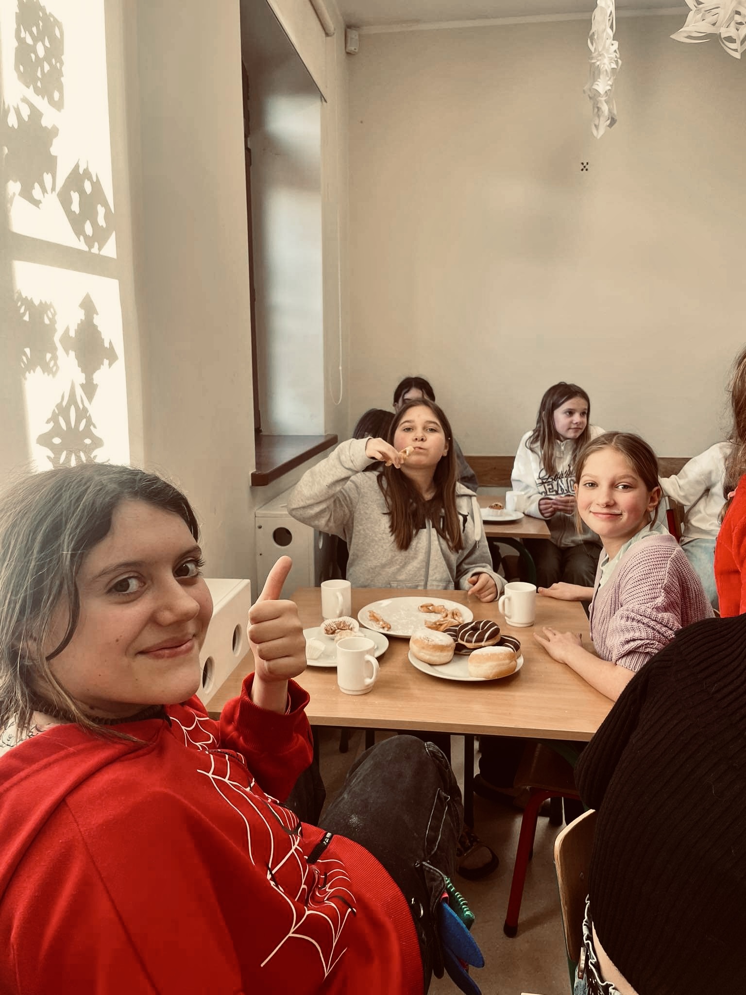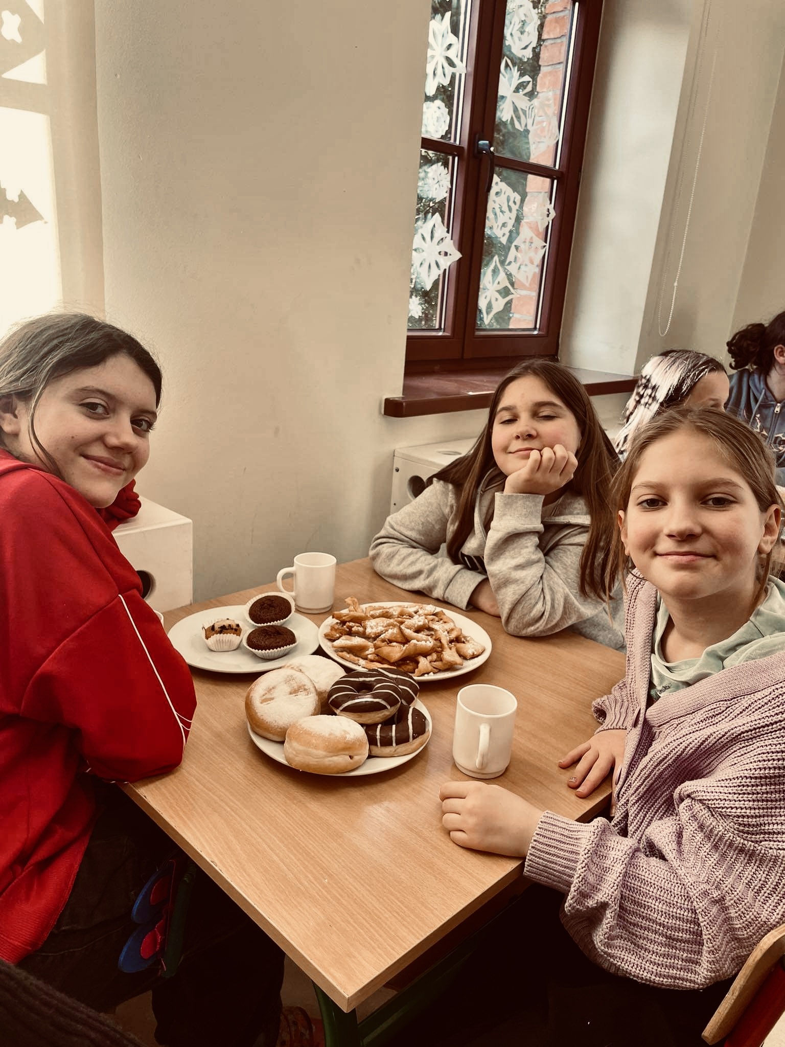 Pączki i donaty też były, o co zadbały ciocie. Najlepszy był konkurs na zjedzenie pączka bez oblizywania się.