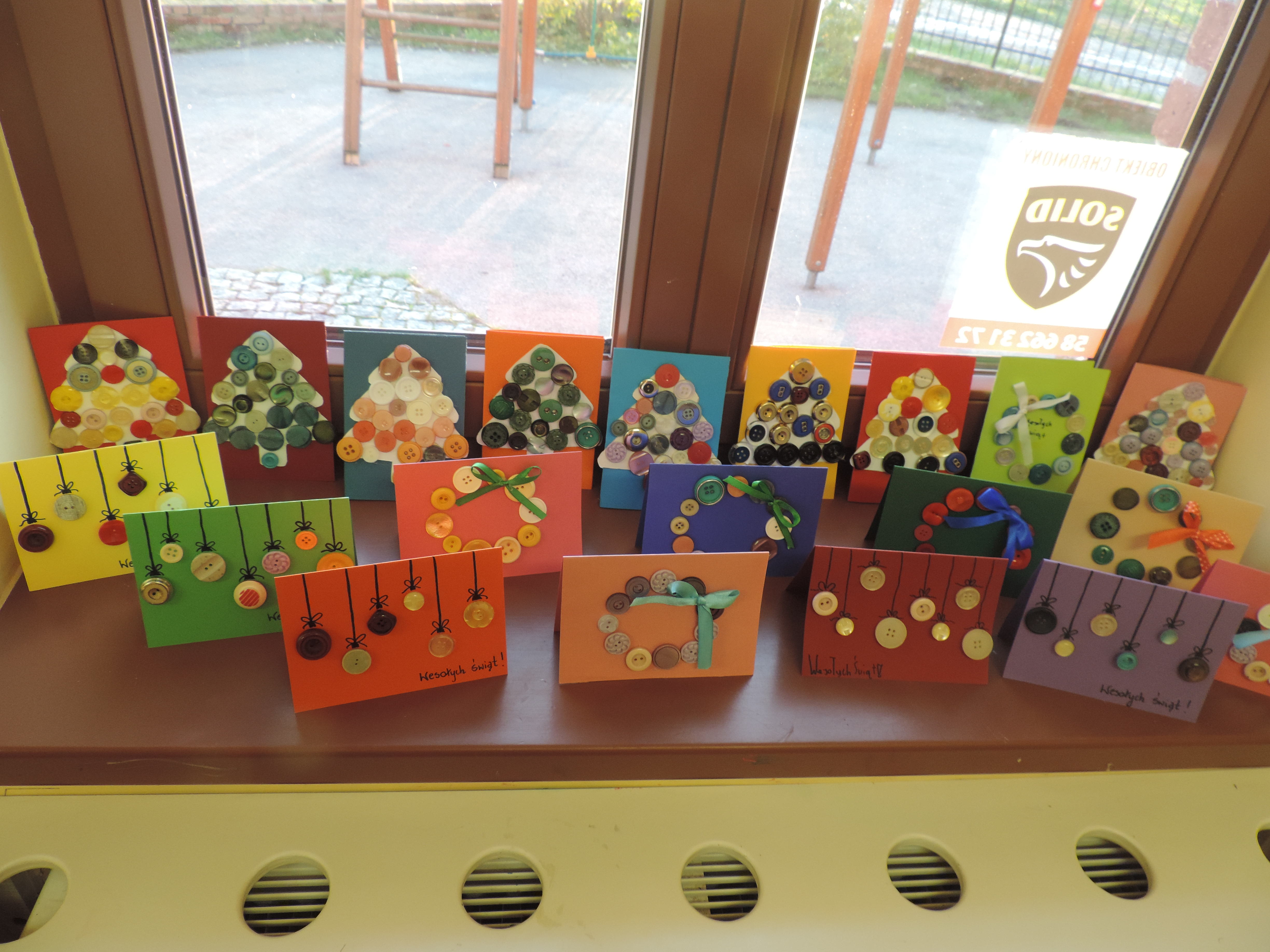 Kiedyś już pisaliśmy, że potrafimy zrobić coś z niczego, że potrafimy wykorzystać prawie wszystko, co nam się podsunie – tutki po papierze toaletowym, płyty CD, kolorowe gazety, opakowania po jajkach i wiele innych. Dzisiaj zabraliśmy się za guziki. Powstały z nich piękne, pomysłowe kartki, które wypełnione życzeniami na pewno będą miłym dodatkiem do świątecznych prezentów.