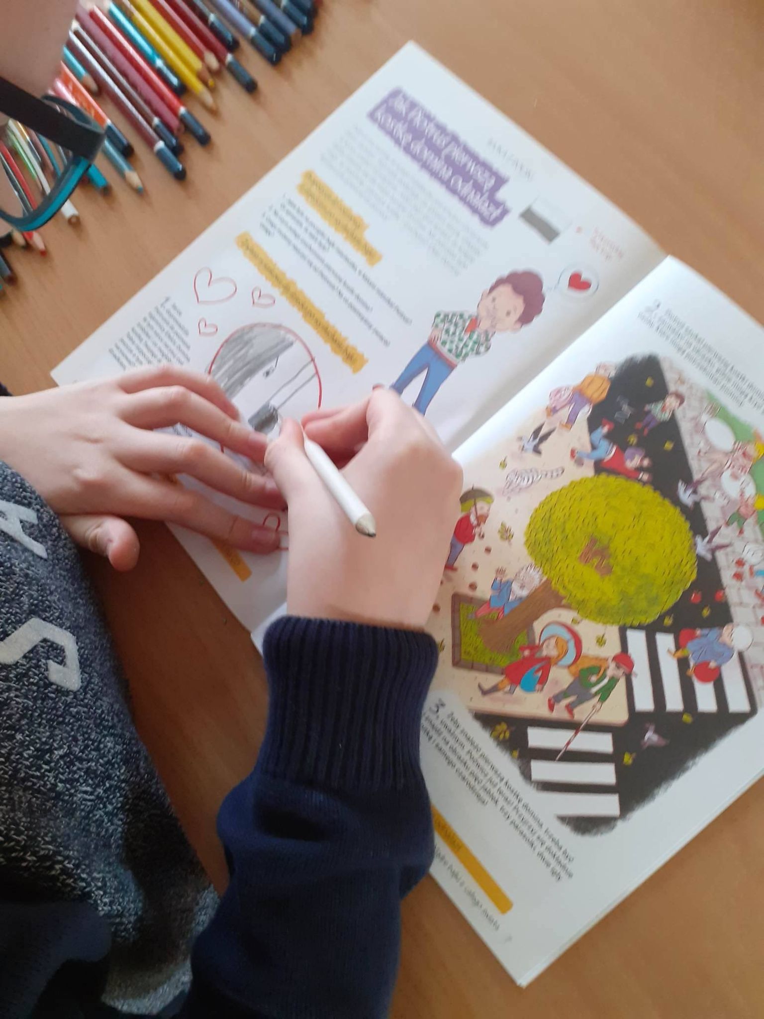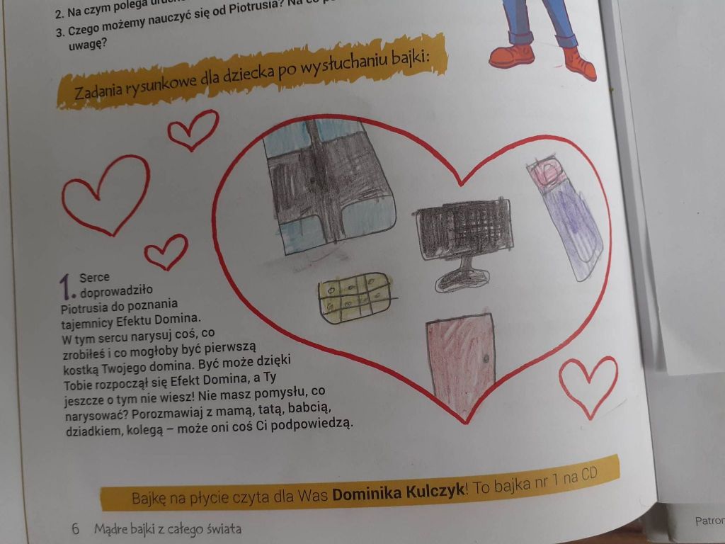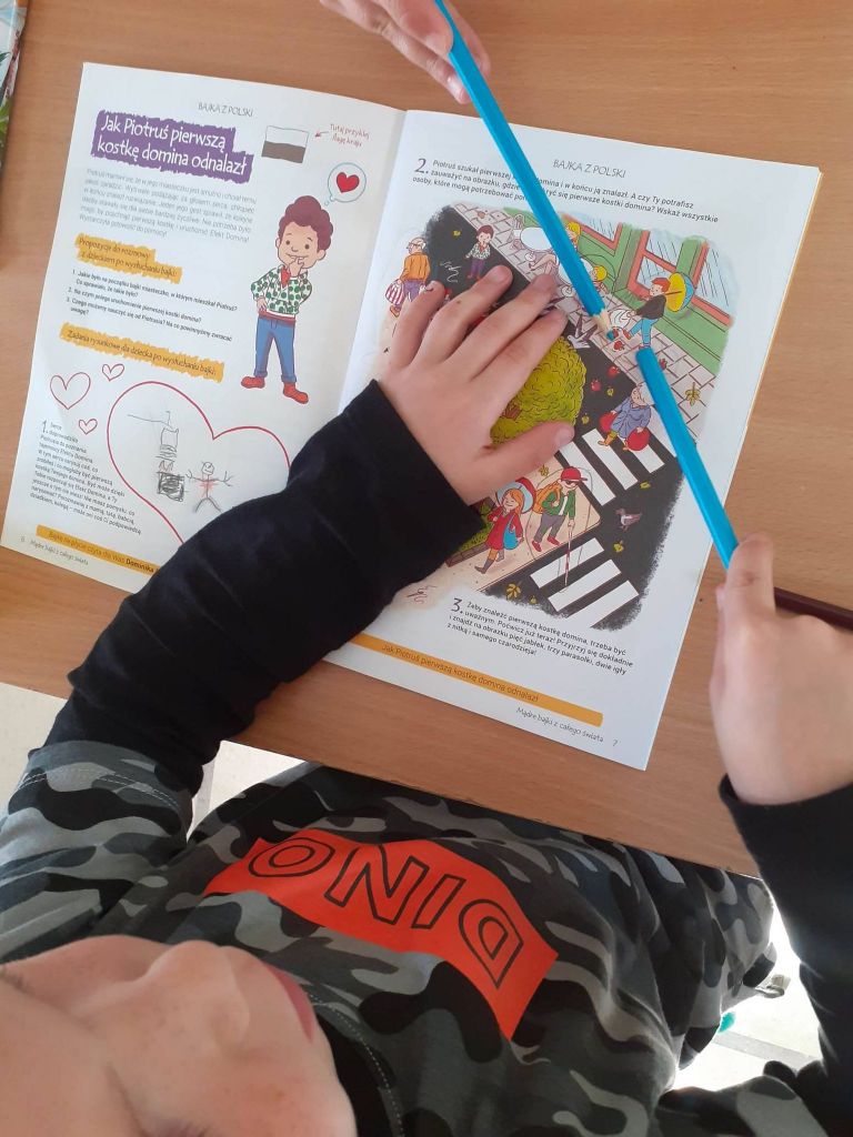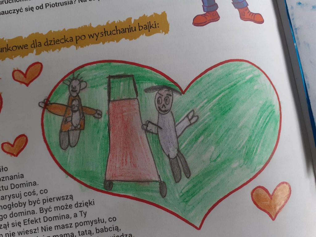Przygodę z Mądrymi bajkami z całego świata rozpoczęliśmy od spotkania z Piotrusiem. Chłopiec szukał kostki domina – pierwszego dobrego uczynku, za sprawą którego zaczęły się dziać kolejne i kolejne. Zastanawialiśmy się co my sami moglibyśmy zrobić, aby rozpocząć taki efekt domina. Okazało się, że nie trzeba wiele. Czasami wystarczy zwykła ludzka uprzejmość, pomocna dłoń, dobre słowo.