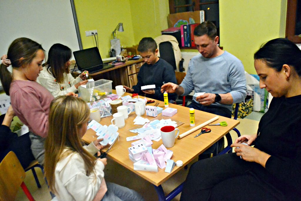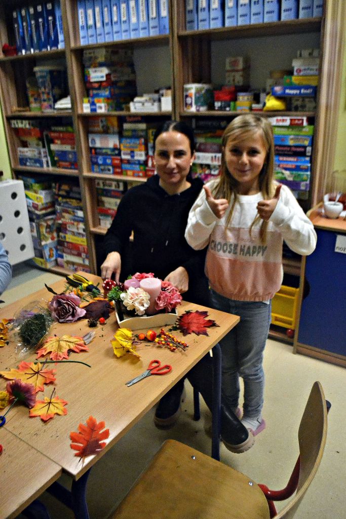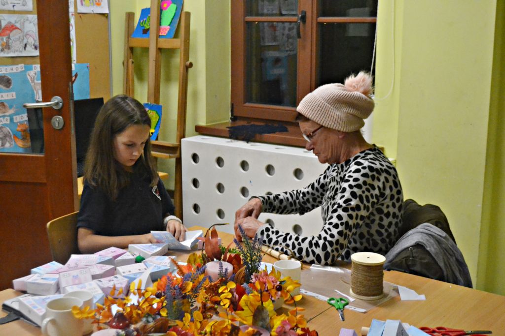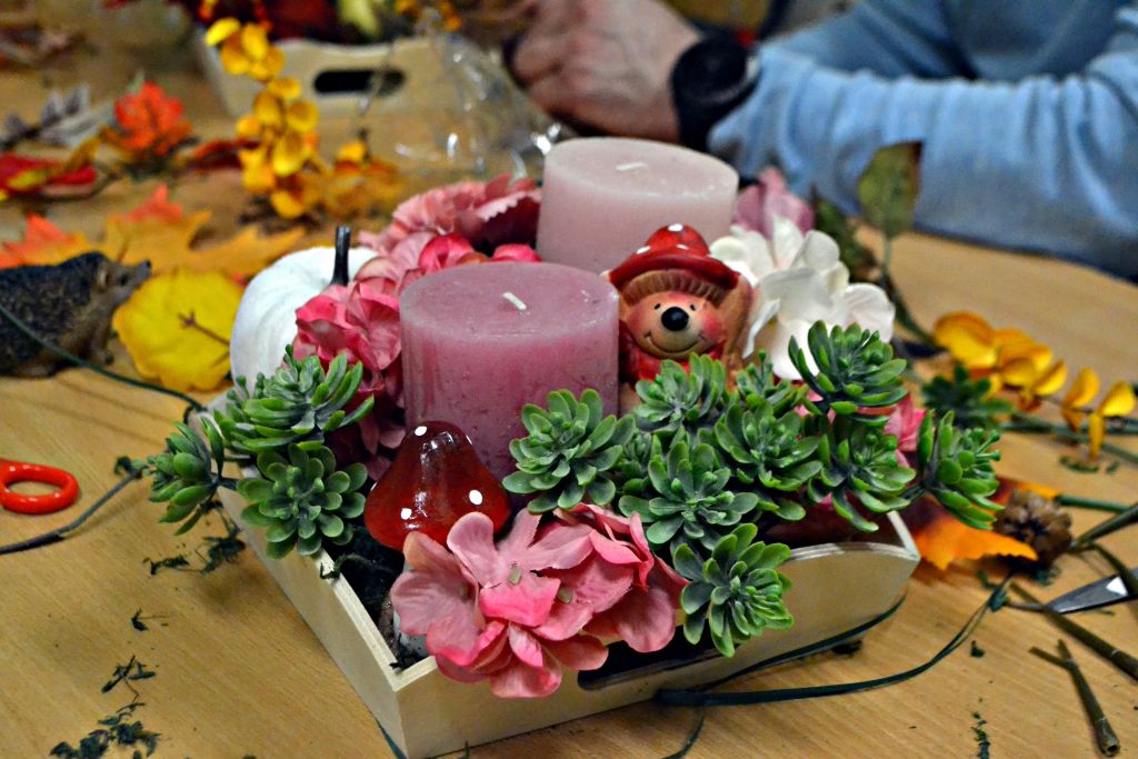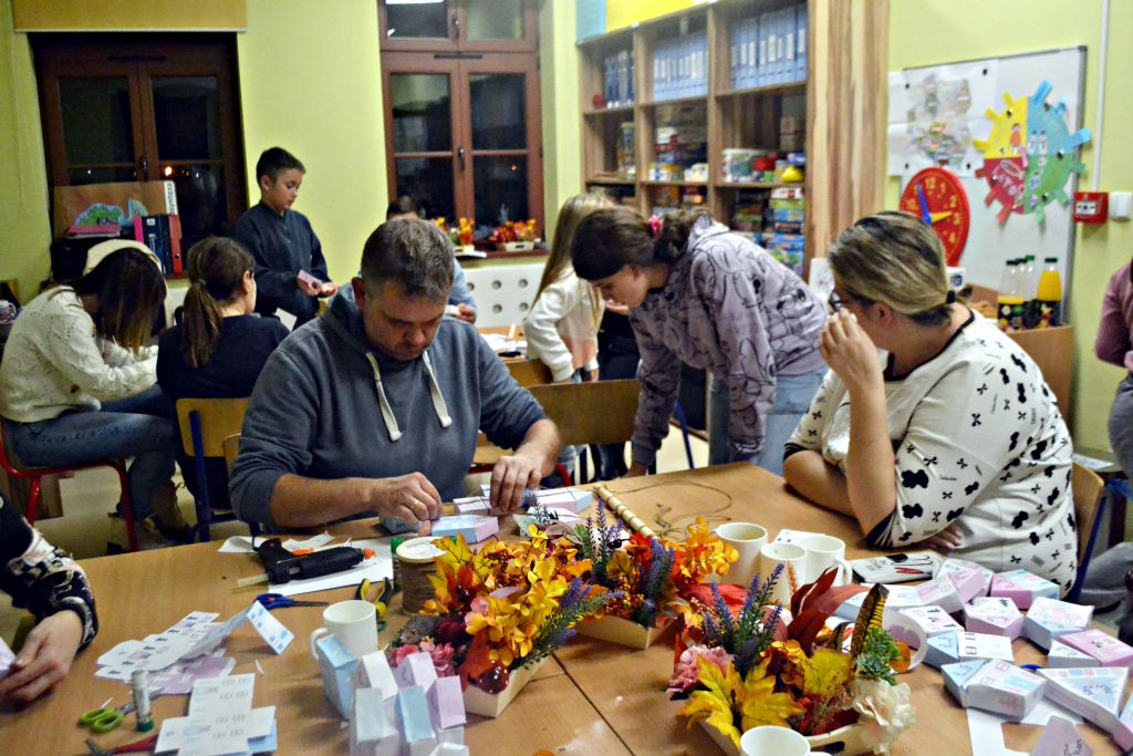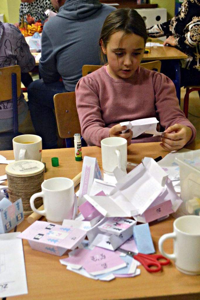 piątek zorganizowaliśmy kolejne warsztaty pt.: Jesień w moim domu. Chyba troszkę sprowokowaliśmy pogodę i postanowiła zrobić nam psikusa, zaskakując w weekend zimową aurą. Ale byliśmy i na to przygotowani, bo podczas naszego spotkania z rodzicami nie tylko przygotowaliśmy jesienne stroiki na nasze stoły, ale także powstały piękne i kolorowe kalendarze adwentowe. Było przy nich sporo pracy – wycinania, sklejania, zawieszania na sznureczkach, ale jako że w rodzinie siła, każdy wyszedł od nas przygotowany na nadchodzący adwent. Pięknie jest móc obserwować taką współpracę i wspólne działania!