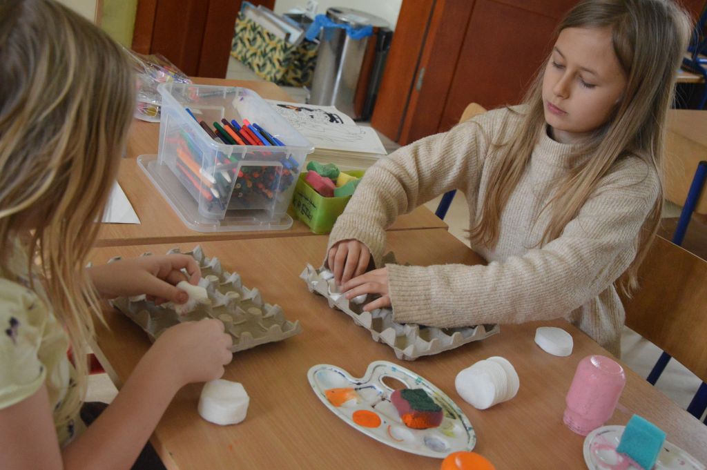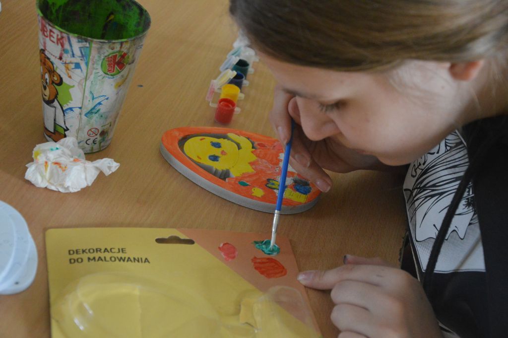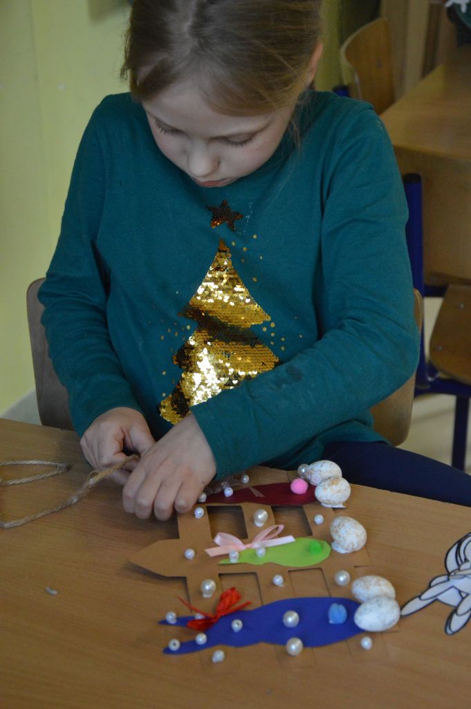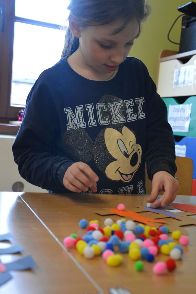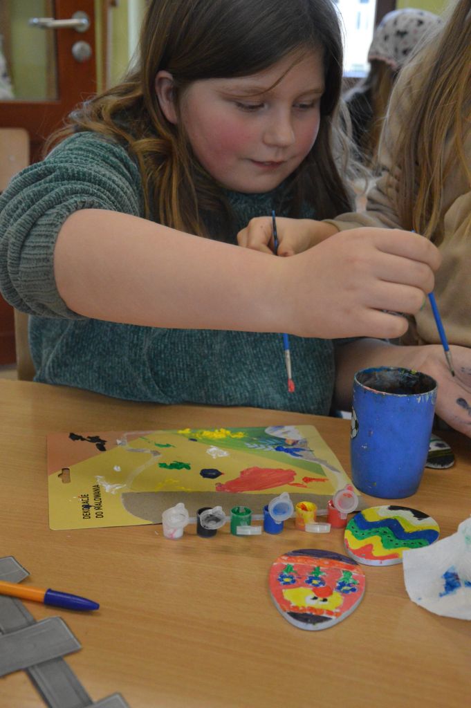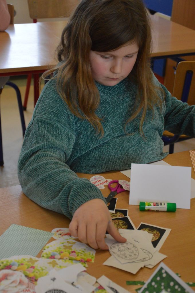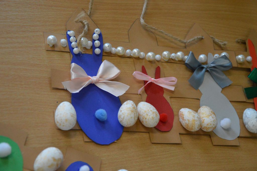 Po pierwsze i najważniejsze – kartki świąteczne! Przygotowaliśmy je używając kolorowych papierów, aplikacji, naklejek i kolorowanek. Gotowe zabraliśmy do domów, aby wspólnie z rodzicami wypełnić wielkanocnymi życzeniami i wysłać do naszych bliskich. Uwielbiamy tę tradycyjną formę składania życzeń. Jest wyrazem naszych myśli, indywidualnego podejścia do odbiorcy. O aspekcie artystycznym już nawet nie wspominając! 😉