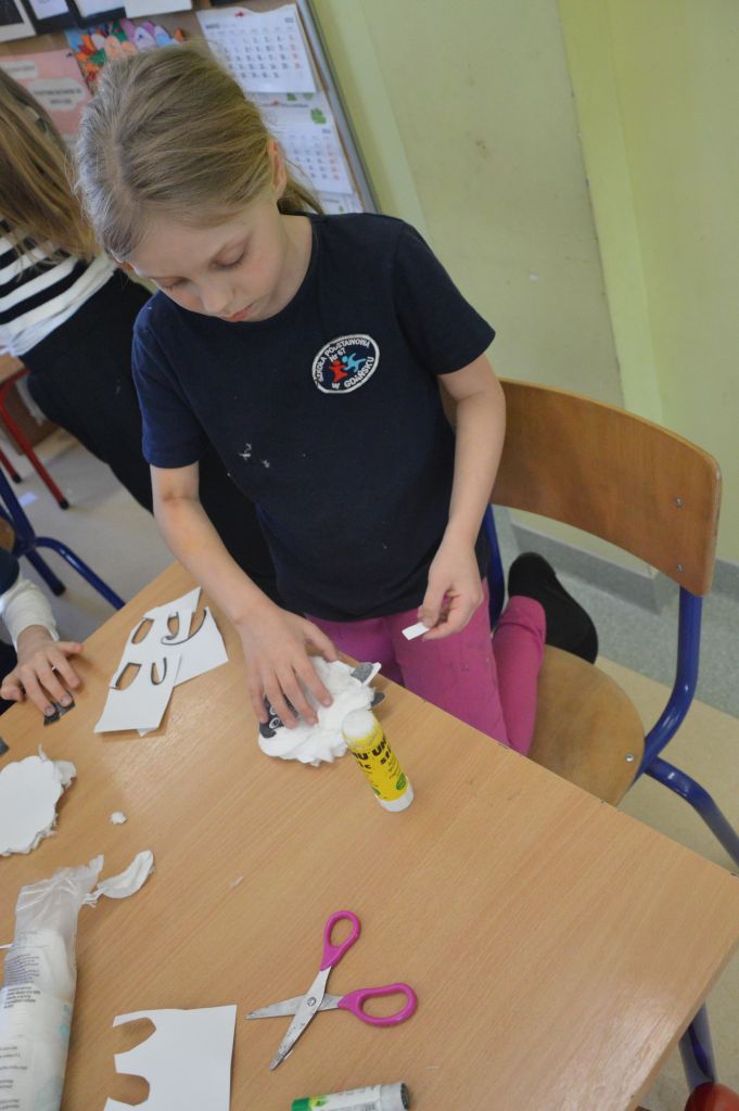 Mniej niecierpliwie były baranki – w wersji 3D, obklejone watą, już niespokojnie przebierają nóżkami chcąc witać wielkanocny poranek.