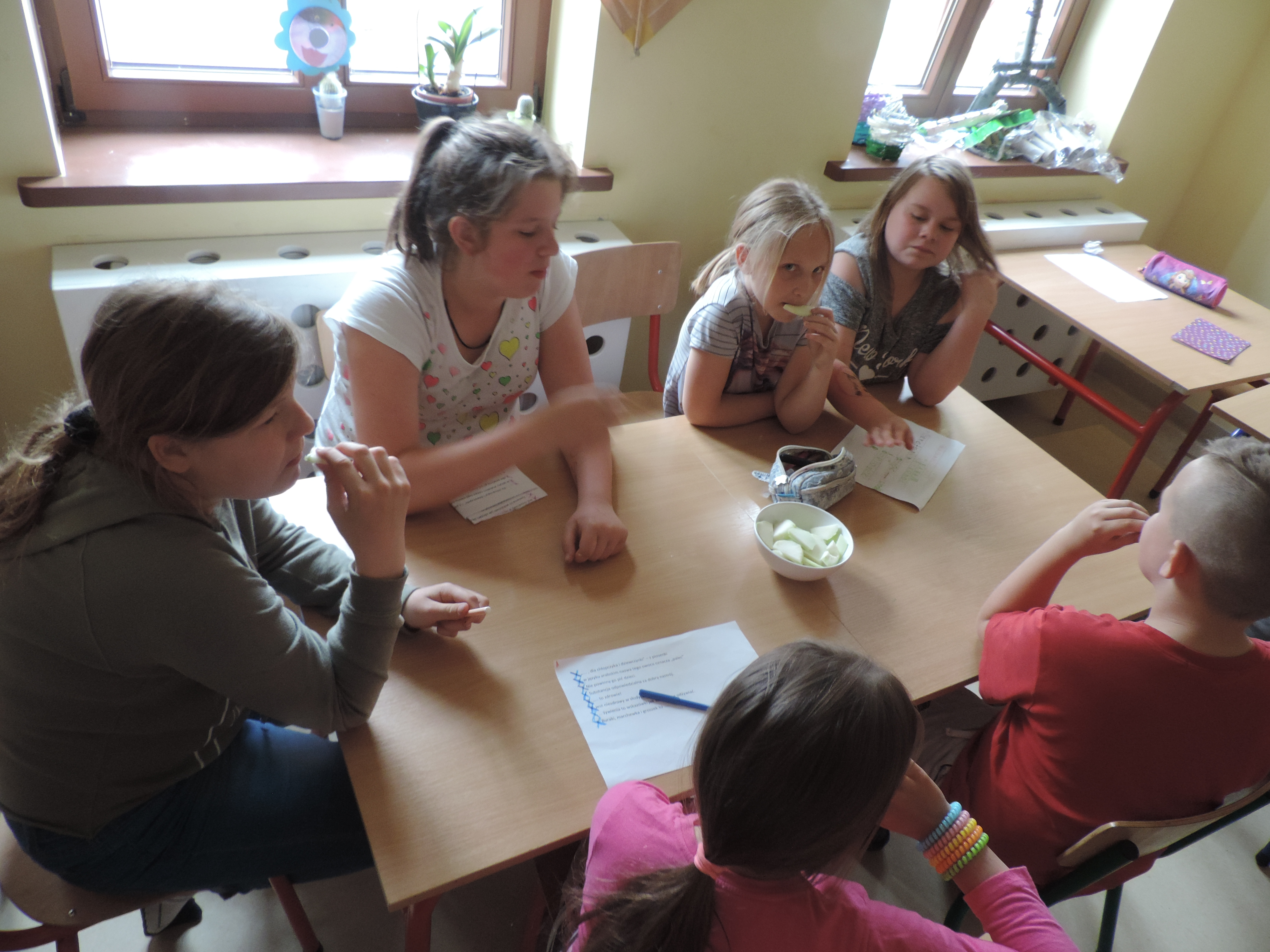 Poznaliśmy kolejne pyszne warzywo – kalarepę. Jak się okazało, większość z nas nie miała okazji sprawdzić jak ona smakuje. Dlatego tym bardziej się cieszymy, że udało nam się to nadrobić na ostatnich zajęciach. Na początek musieliśmy z puzzli ułożyć obrazek, aby w ogóle dowiedzieć się o czym będziemy tego dnia rozmawiać. Jako że nie znaliśmy nazwy warzywa ze zdjęcia, dostaliśmy do uzupełnienia krzyżówkę, której hasło podpowiedziało nam rozwiązanie tej zagadki. Na koniec pozostało nam tylko skosztować jak to tajemnicze warzywo smakuje. Byliśmy mile zaskoczeni, że jest aż tak dobre!