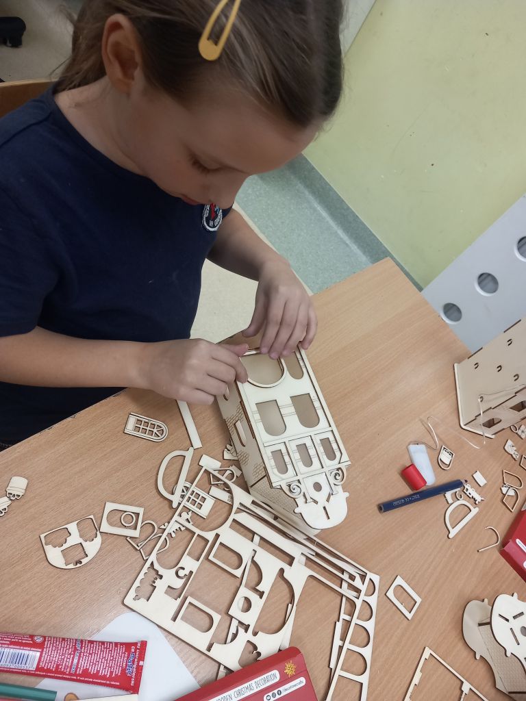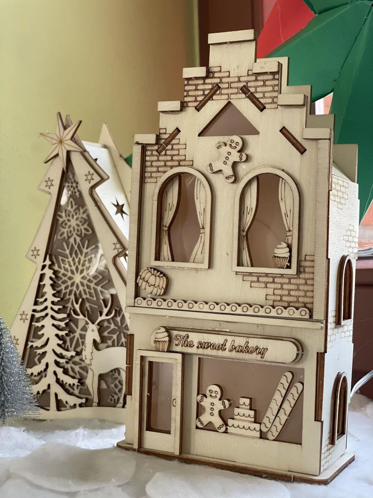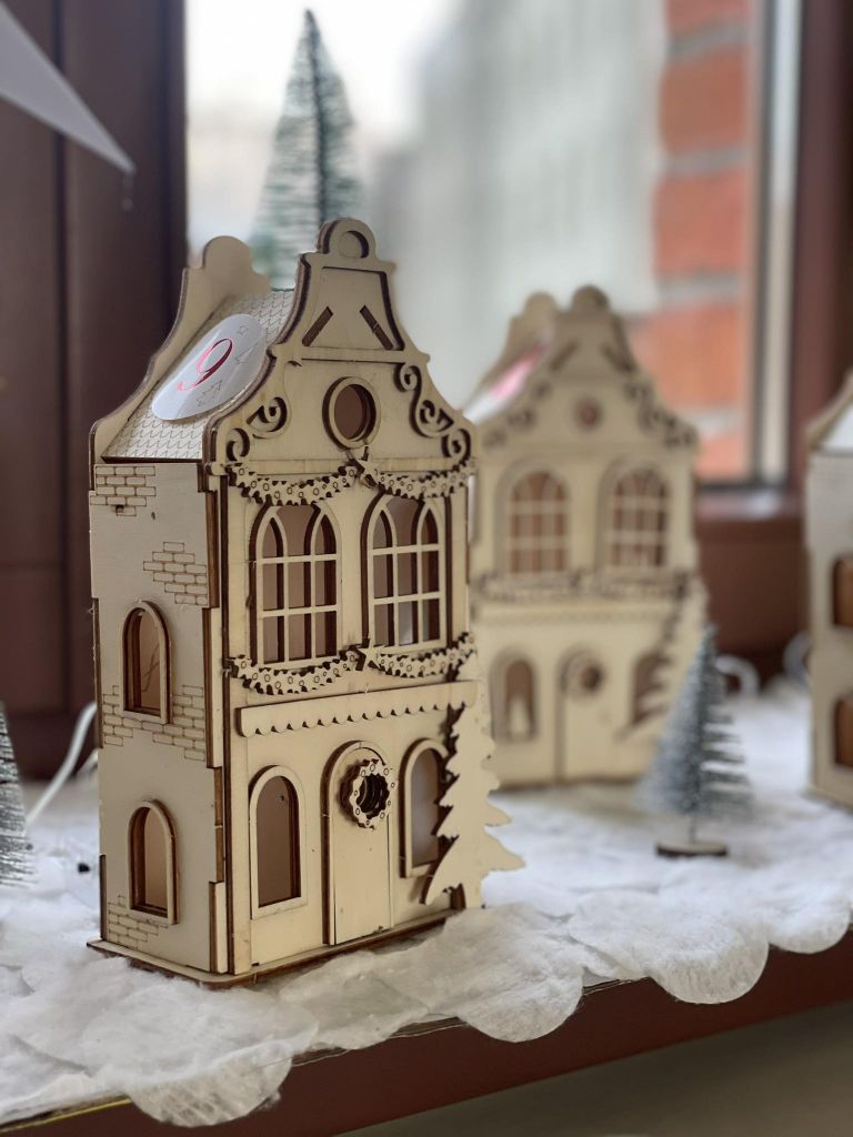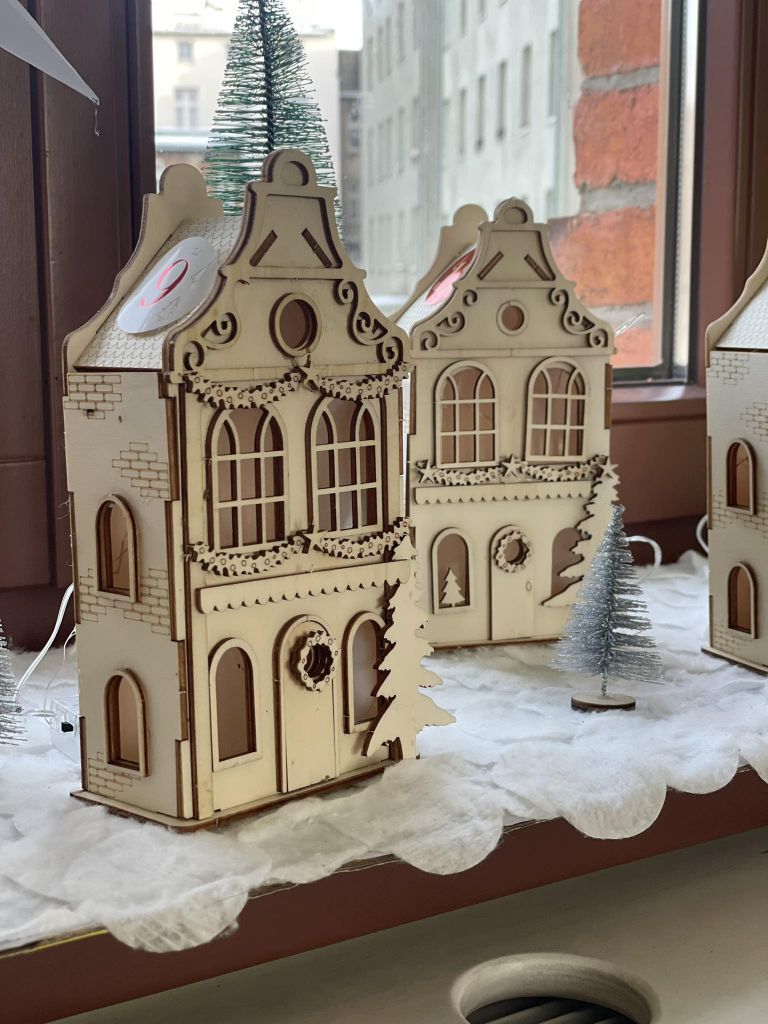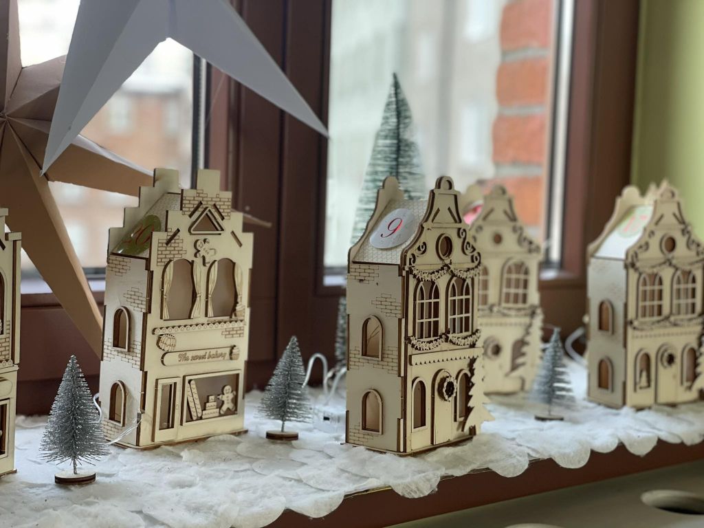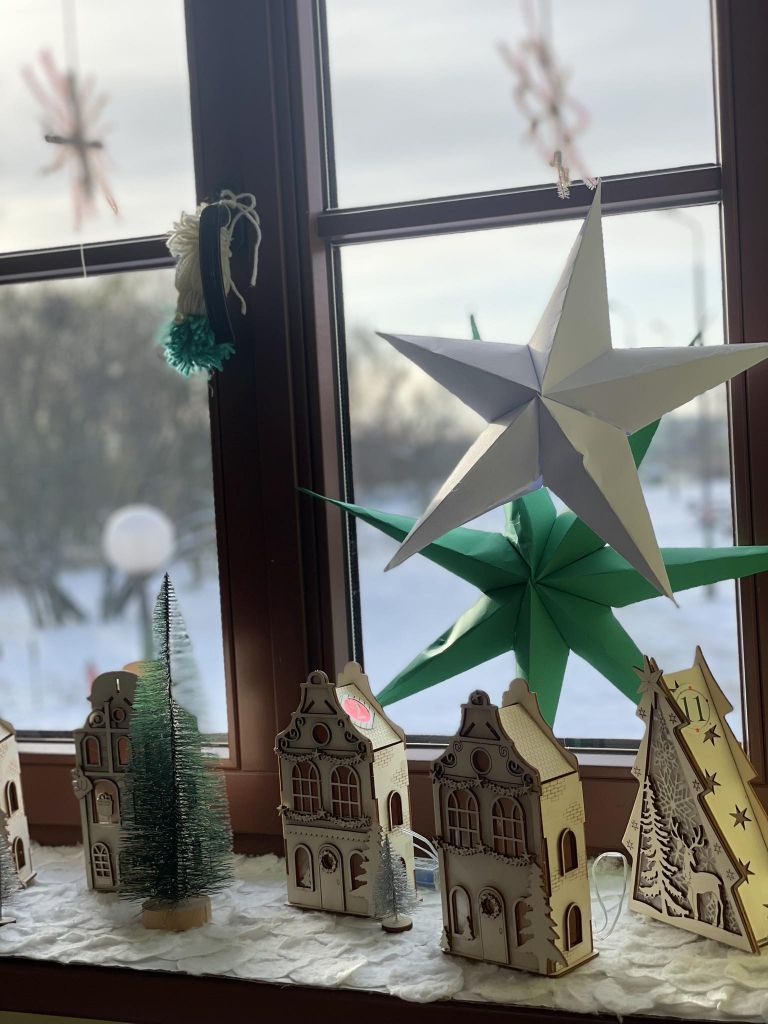 Zrobiliśmy zimowe miasteczko, składające się z domków i choinek podświetlanych lampkami led. Są też mikołaje, drzewka świąteczne i renifery w ich otoczeniu.