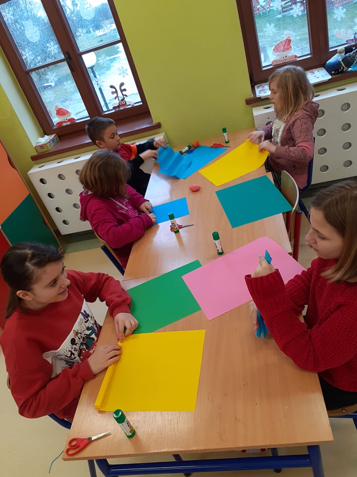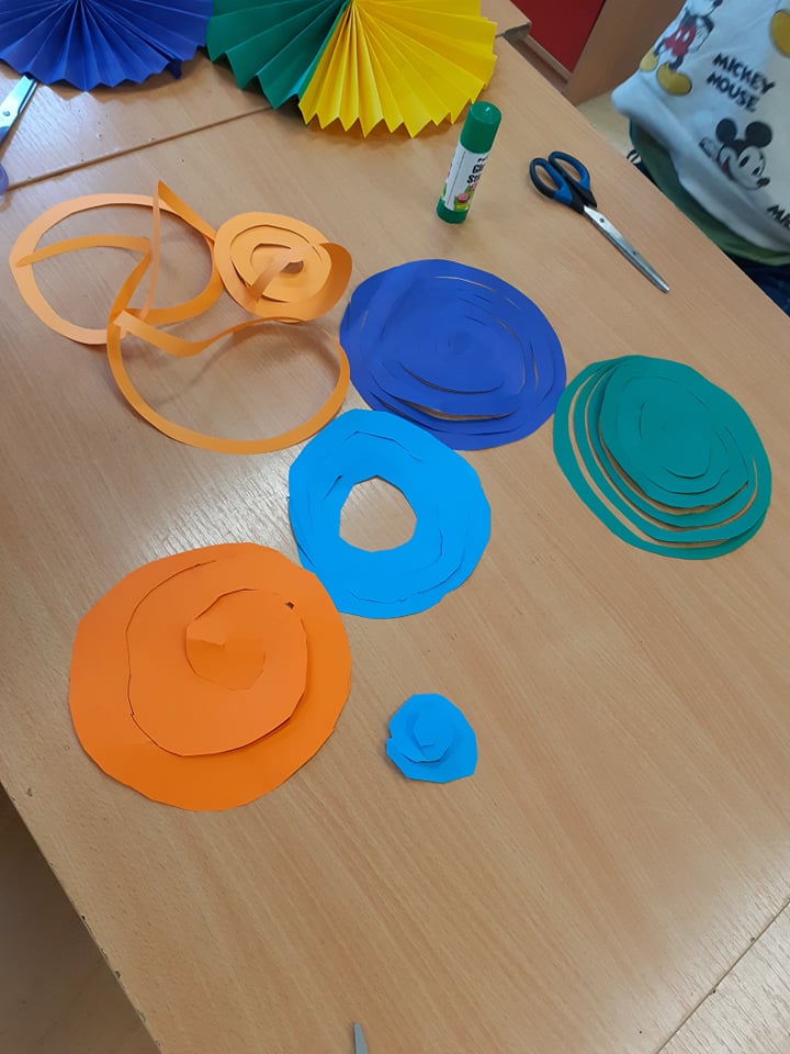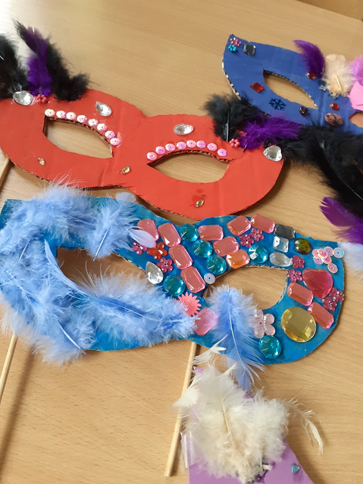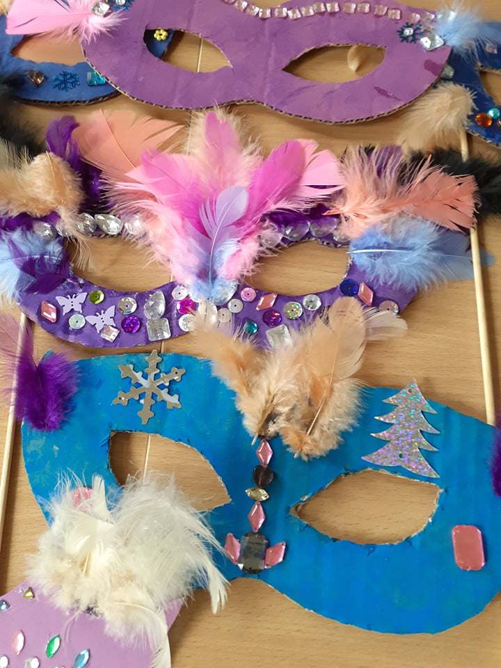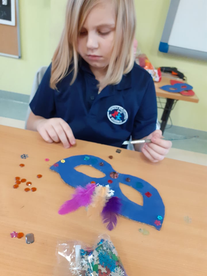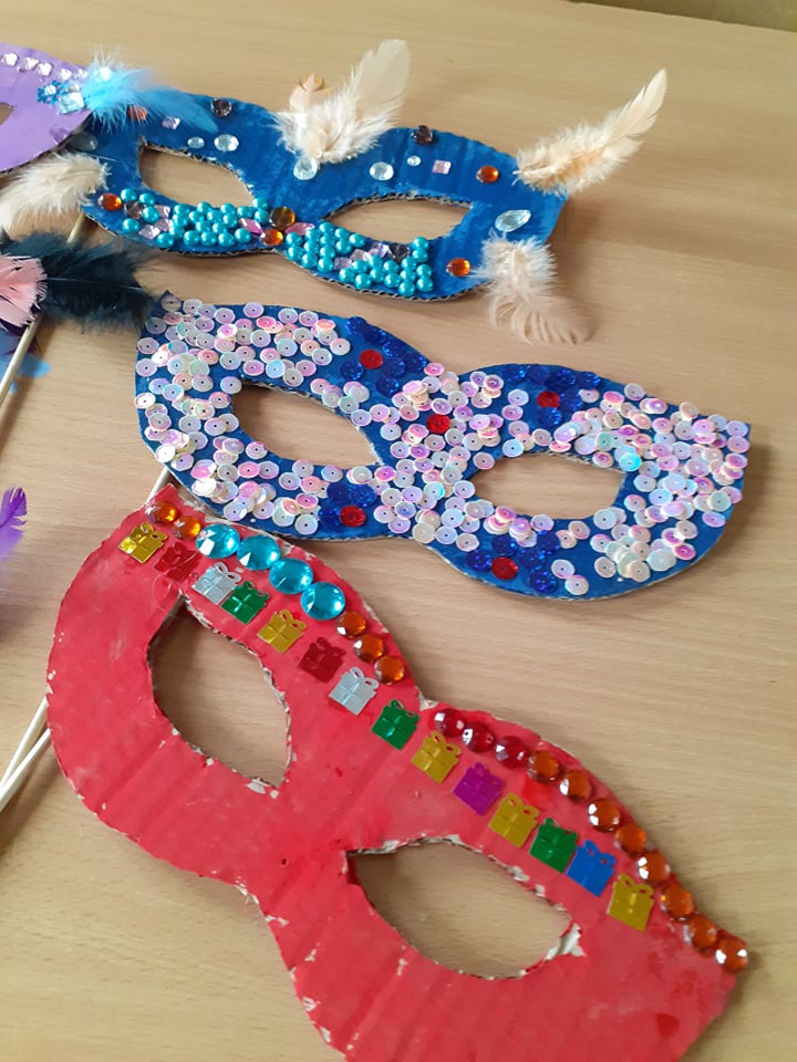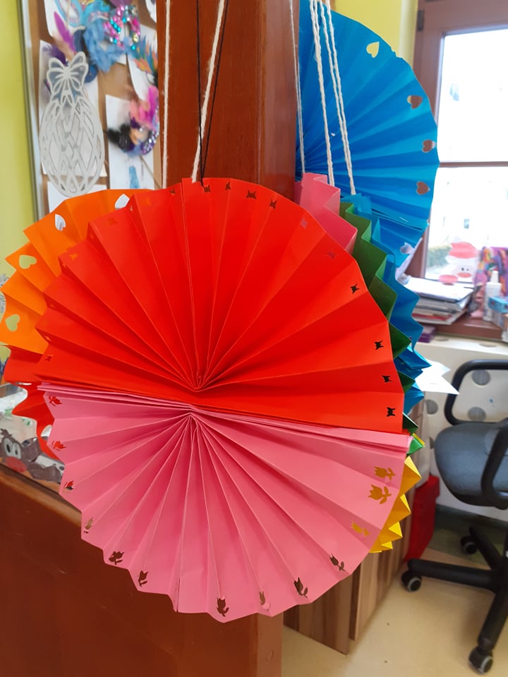 Obecnie żyjemy karnawałową atmosferą: powstały maski na patyku, projekty i wyobrażenia na temat naszych strojów i kostiumów na bal. Ostatnią prostą okazało się przygotowanie ozdób do sali: papierowych rozet i spirali. Efektu dopełniły balony. Jesteśmy zadowoleni z efektu, a jak bawiliśmy się na balu, opowiemy Wam w następnym poście po weekendzie. Czekajcie na fotorelację!