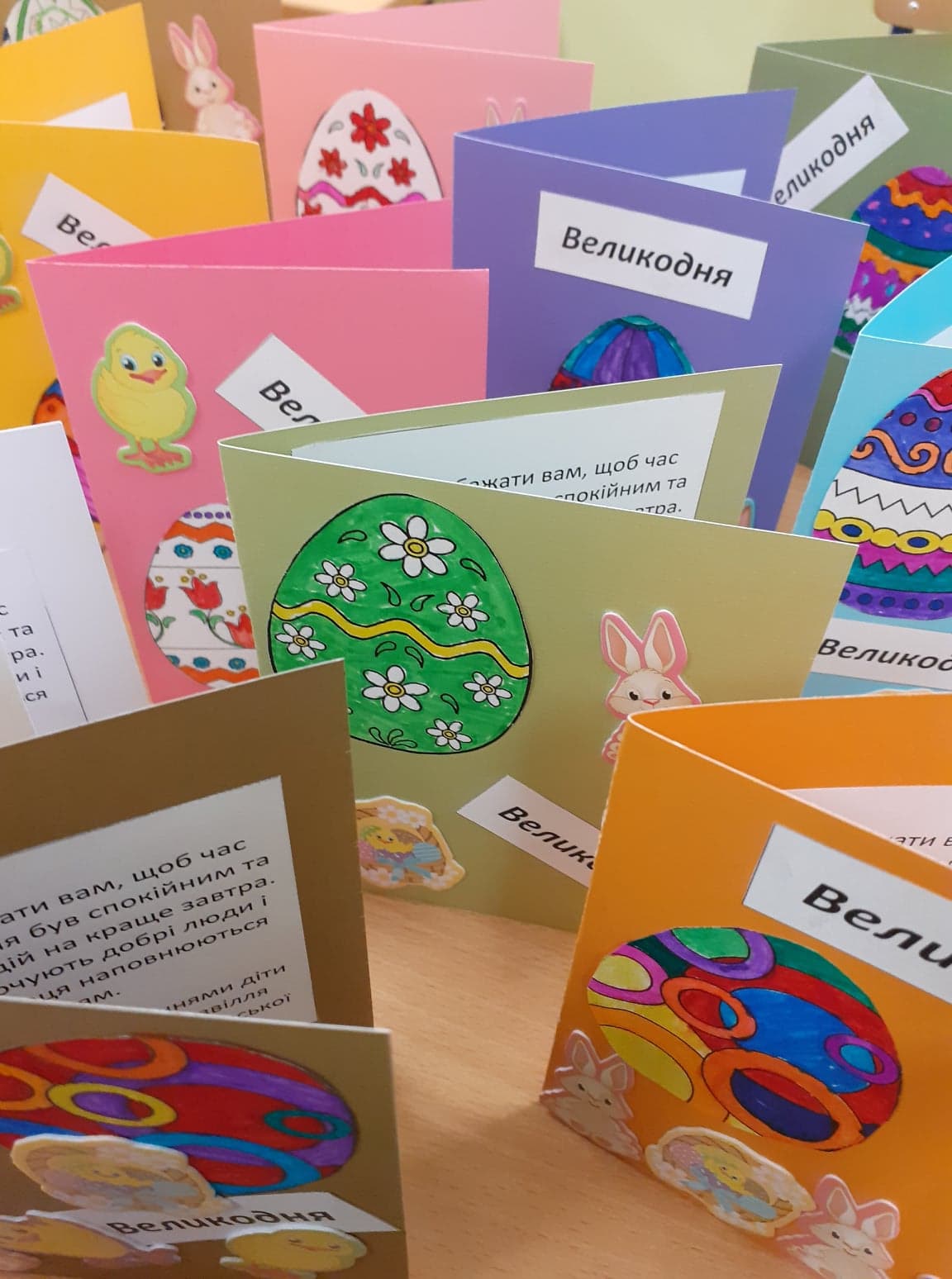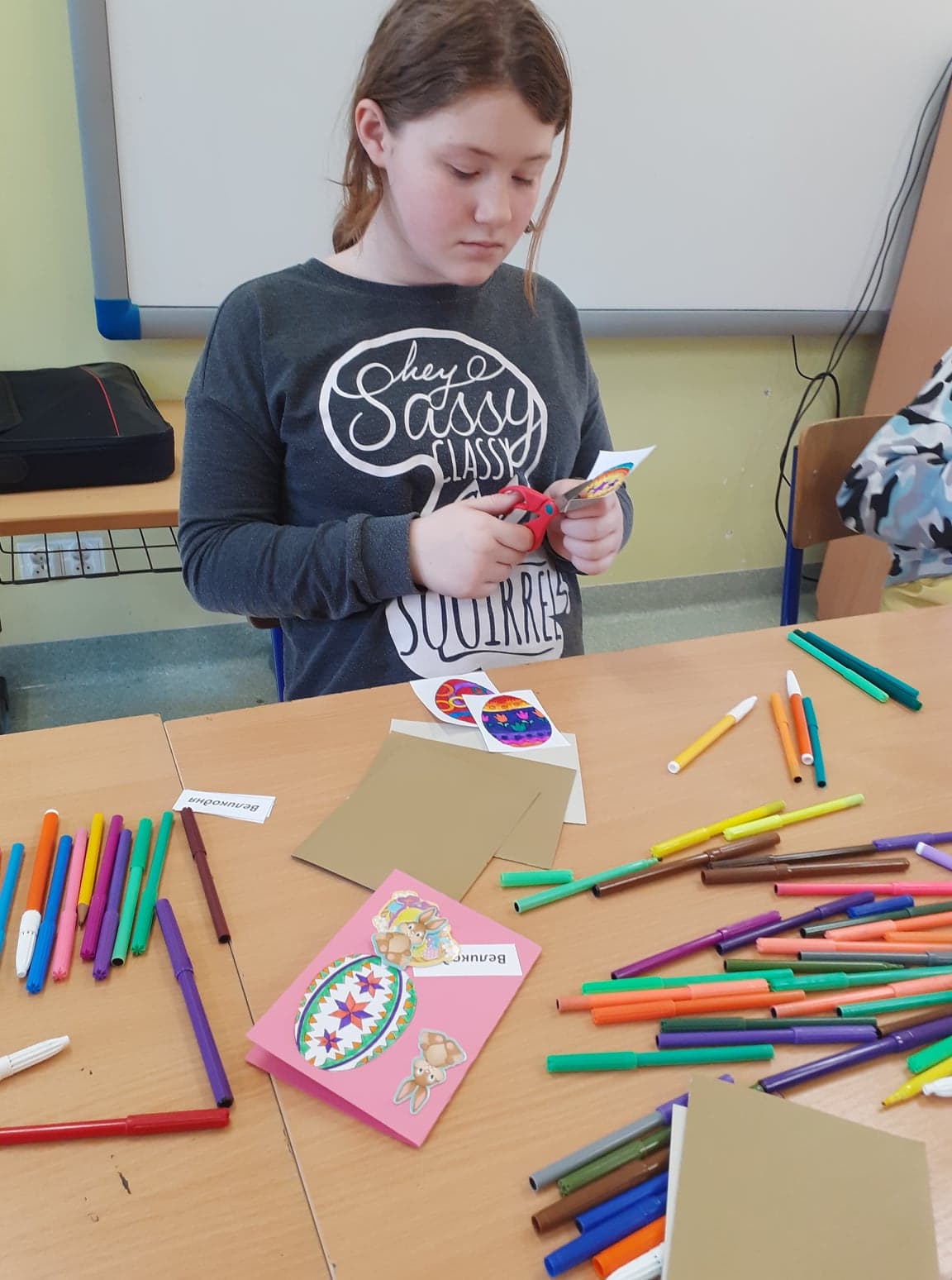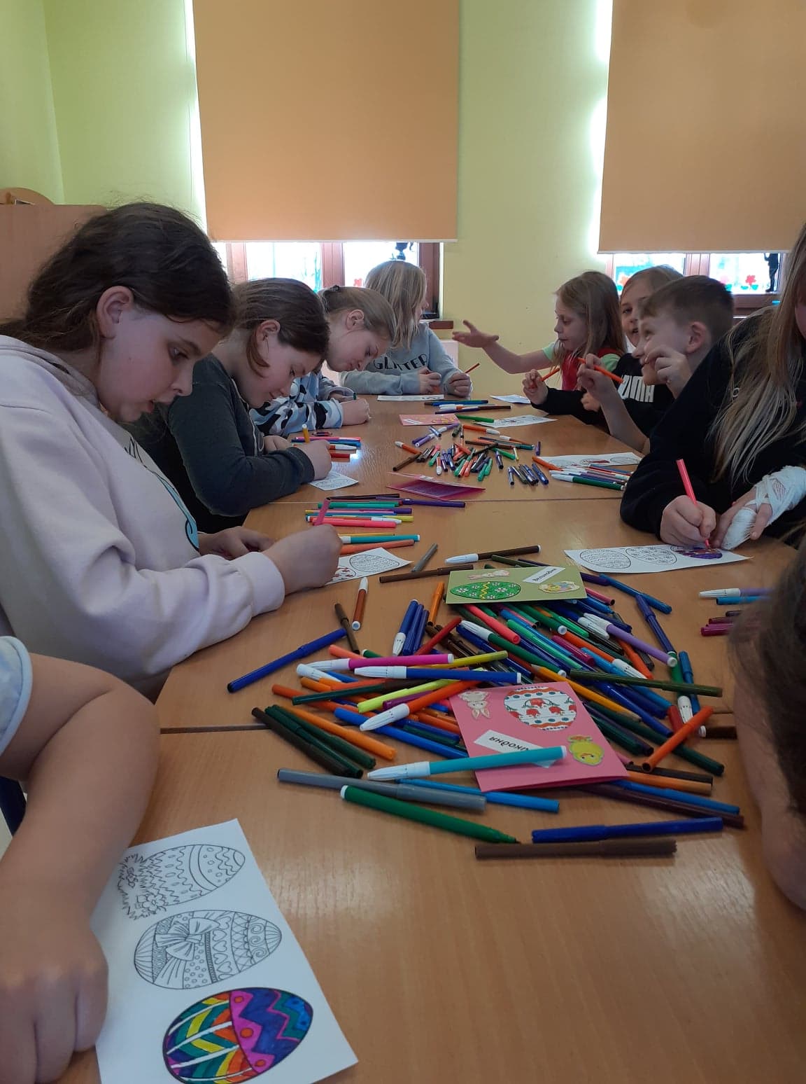 Postanowiliśmy włączyć się w akcję Szkolnych Kół Caritas i zrobiliśmy kartki dla osób z Ukrainy, które nadchodzące święta Wielkanocne będą spędzać w Polsce. Kartek wyszło sporo, mamy nadzieję, że każdy potrzebujący otrzyma nasze życzenia.