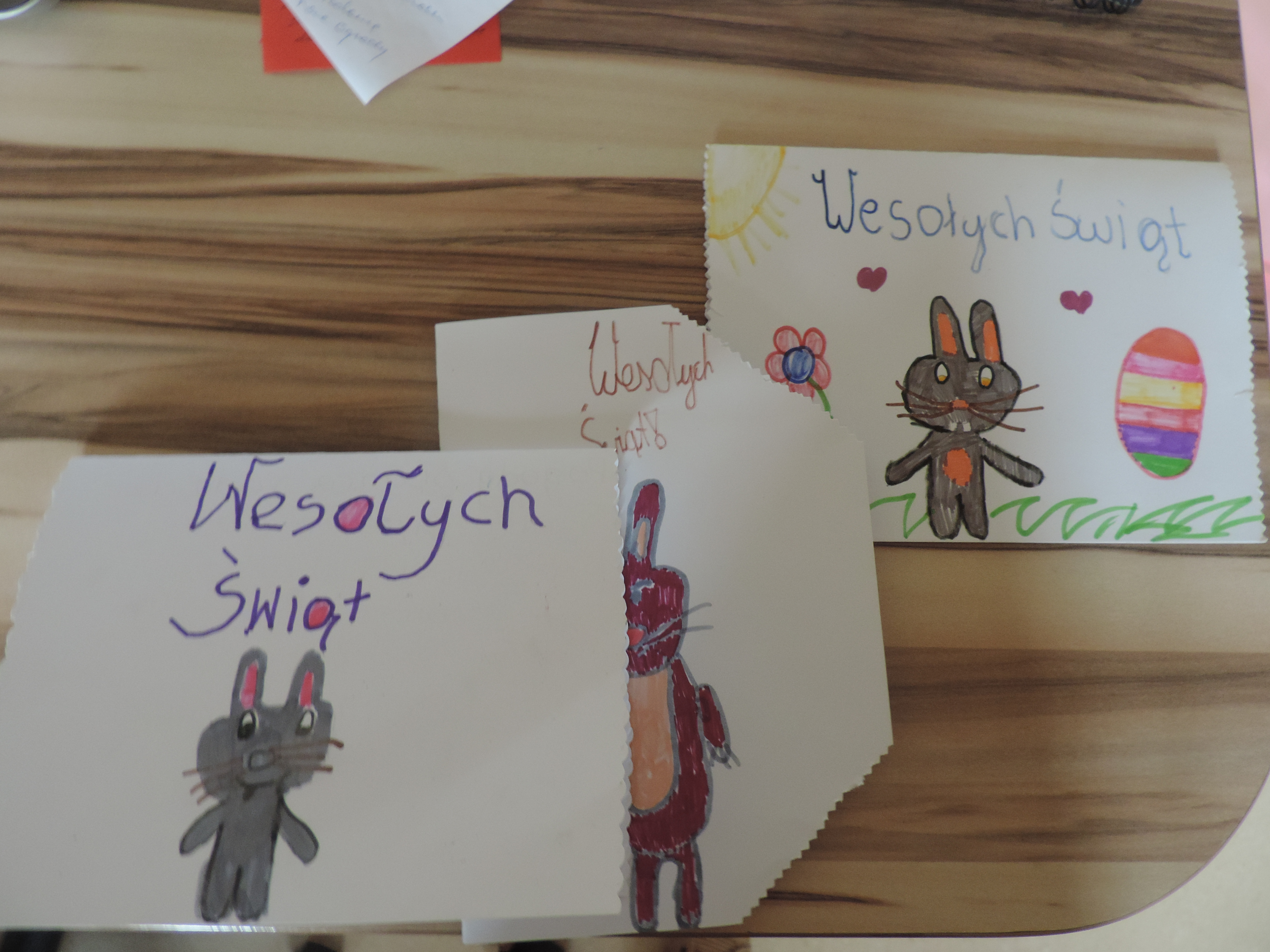 Dzisiaj bardzo pracowity dzień za nami. Dużo gier i wspólnej zabawy, potem przygotowanie kartek wielkanocnych, a na sam koniec zajęcia z p. Anią, podczas których ćwiczyliśmy porozumiewanie się ze sobą przy pomocy komunikacji niewerbalnej.