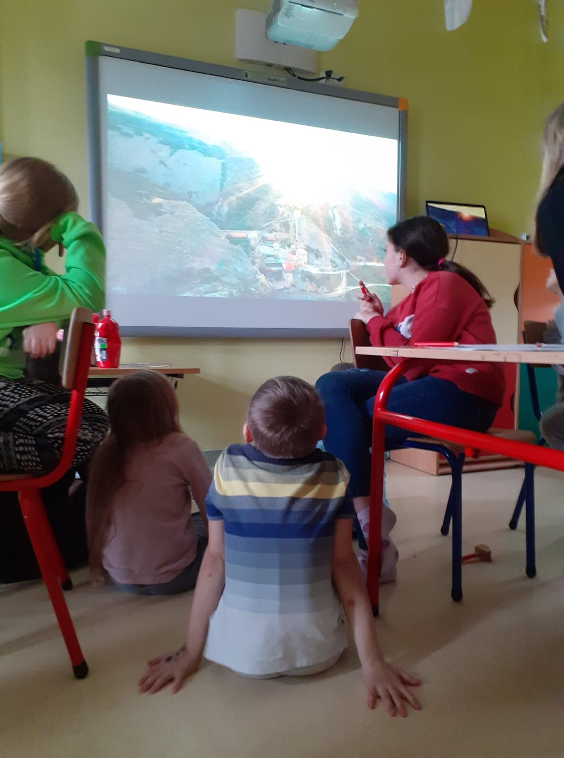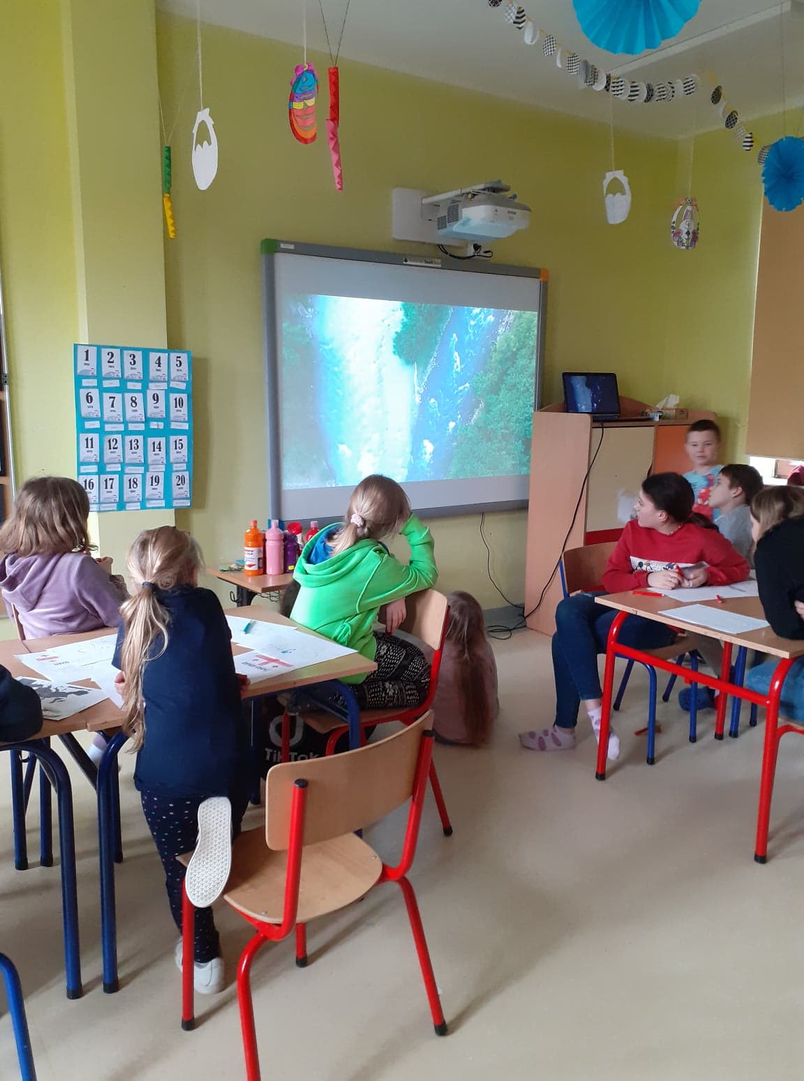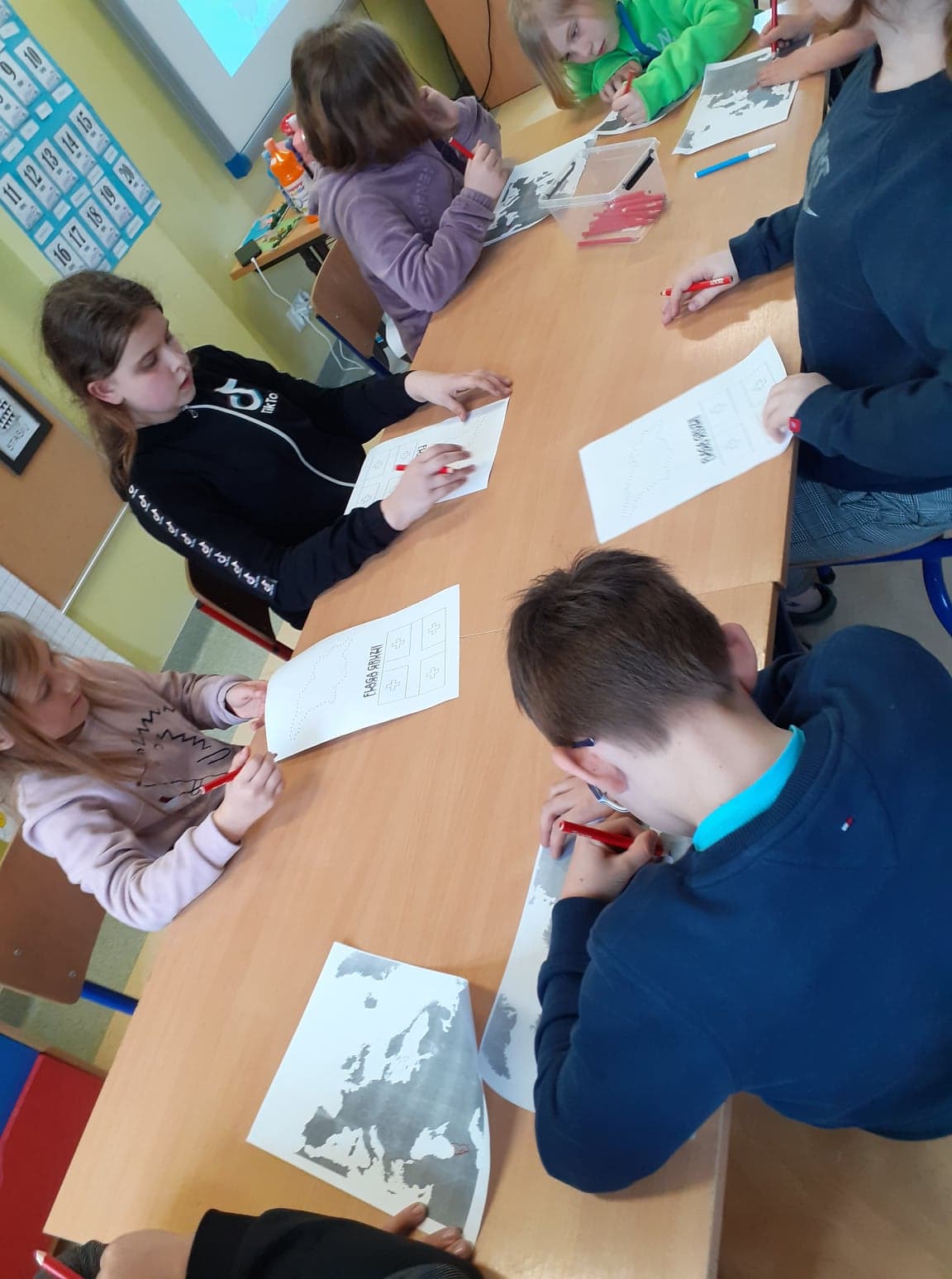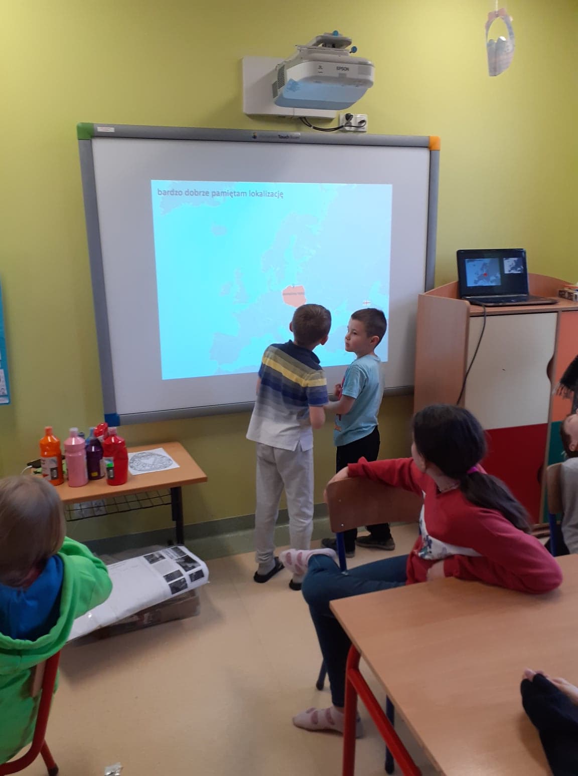 Ostatnie dwa dni to zajęcia z naszymi wolontariuszami z Gruzji – Irina Kiladze i Shota Shapakidze. Przygotowali dla nas prezentację o swojej ojczyźnie – zobaczyliśmy najpiękniejsze miejsca Gruzji, poznaliśmy ich alfabet, a nawet uczyliśmy się pisać za pomocą tych liter swoje imiona. Potrafimy już zlokalizować Gruzję na mapie, wiemy co jest jej stolicą i w jaki sposób jest podzielona. Kolorowaliśmy flagę, co nie było trudne, bo jest w takich samych barwach jak nasza, czyli biała i czerwona, ale za to z 5 krzyżami.