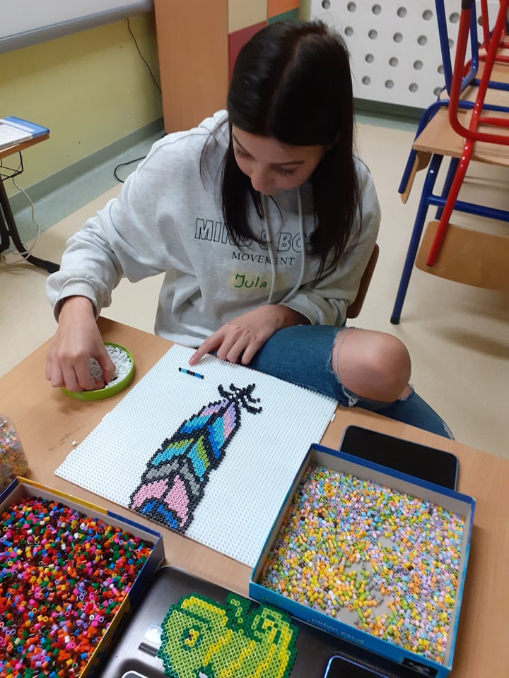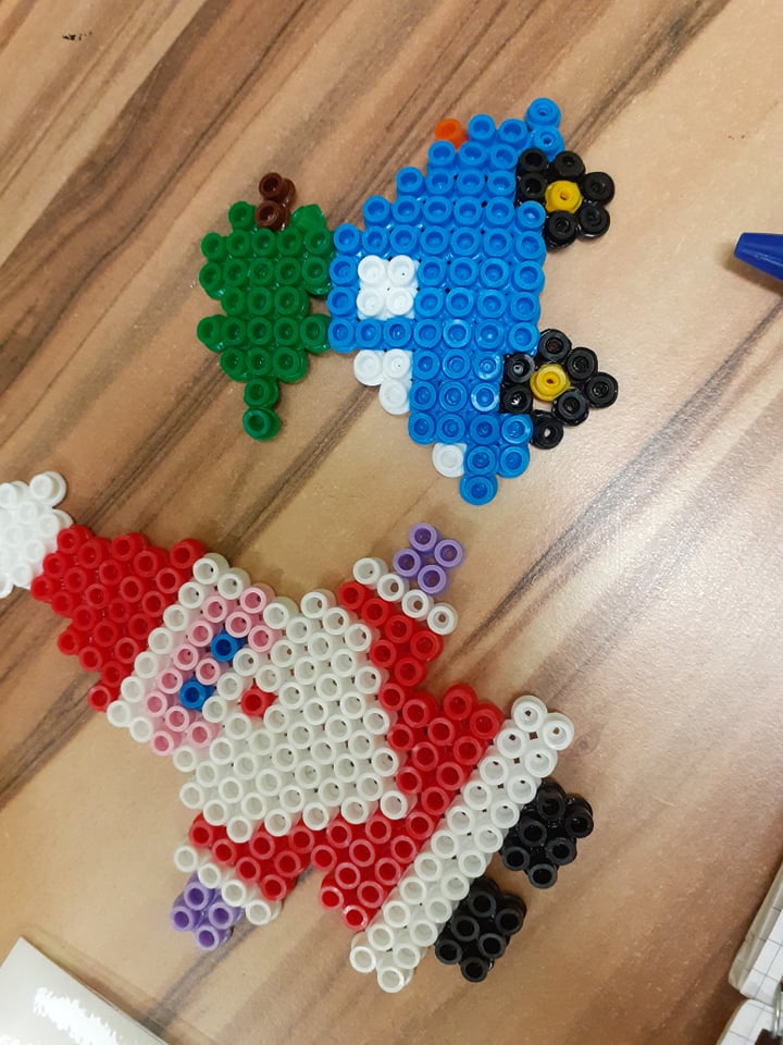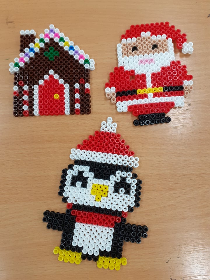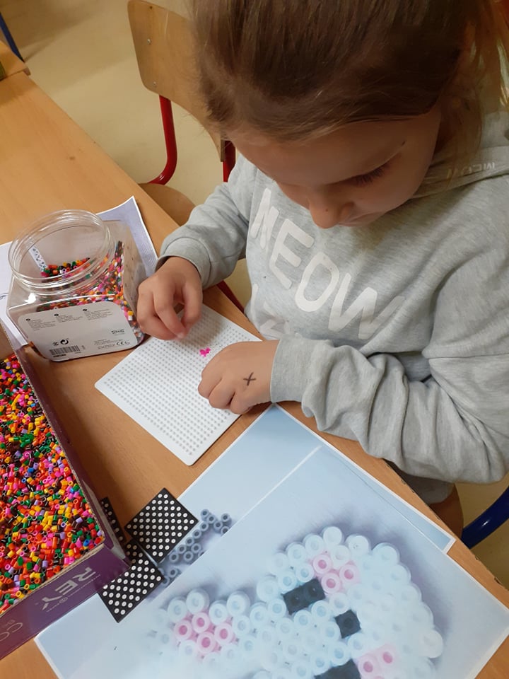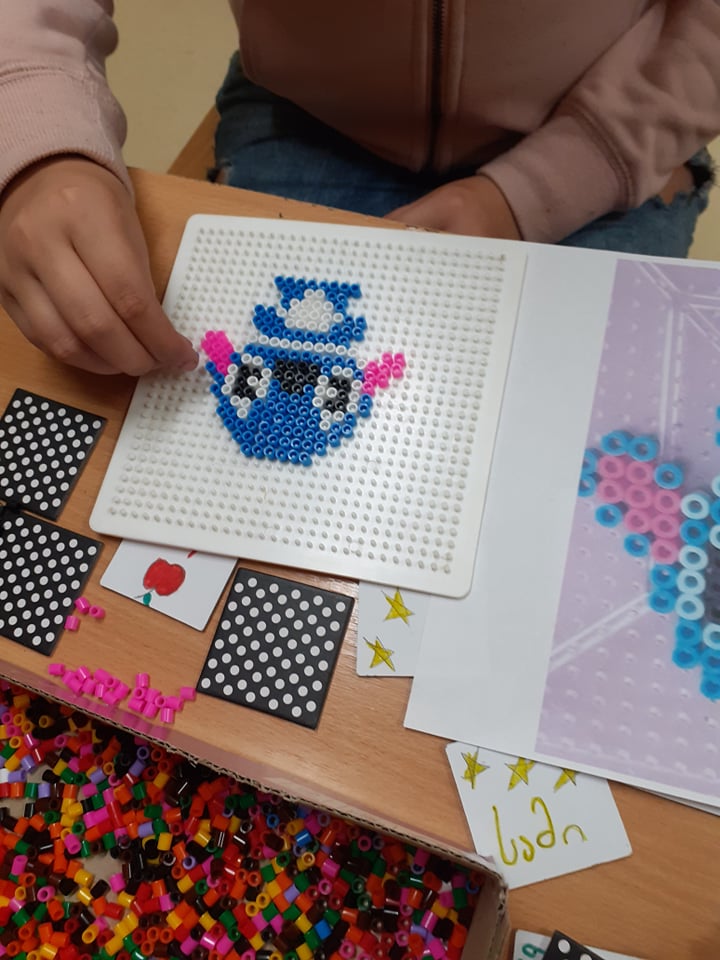 Koraliki pyssla to okazja do ćwiczenia precyzji i cierpliwości. Zaczęliśmy od robienia postaci z bajek, zwierzątek, zakładek do książek. Kiedy okazało się, że idzie nam całkiem nieźle, zabraliśmy się za wzory świąteczno-zimowe. Mikołaje, pingwinki, bałwanki, skrzaty i domki z piernika wyszły cudnie!