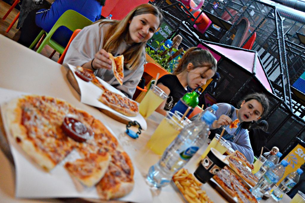 Wyszaleliśmy się na zjeżdżalniach, skakaliśmy jak małpeczki, wspinaliśmy się i korzystaliśmy ze wszystkich atrakcji, aby potem zmęczeni zregenerować się przy lemoniadzie i pizzy. Kiedy nabraliśmy sił, pobiegliśmy dalej świetnie się bawić. Niestety wszystko co dobre szybko się kończy, tak było i tym razem. Wróciliśmy do domu zmęczeni, ale niezmiernie zadowoleni z przebiegu dzisiejszego dnia.
