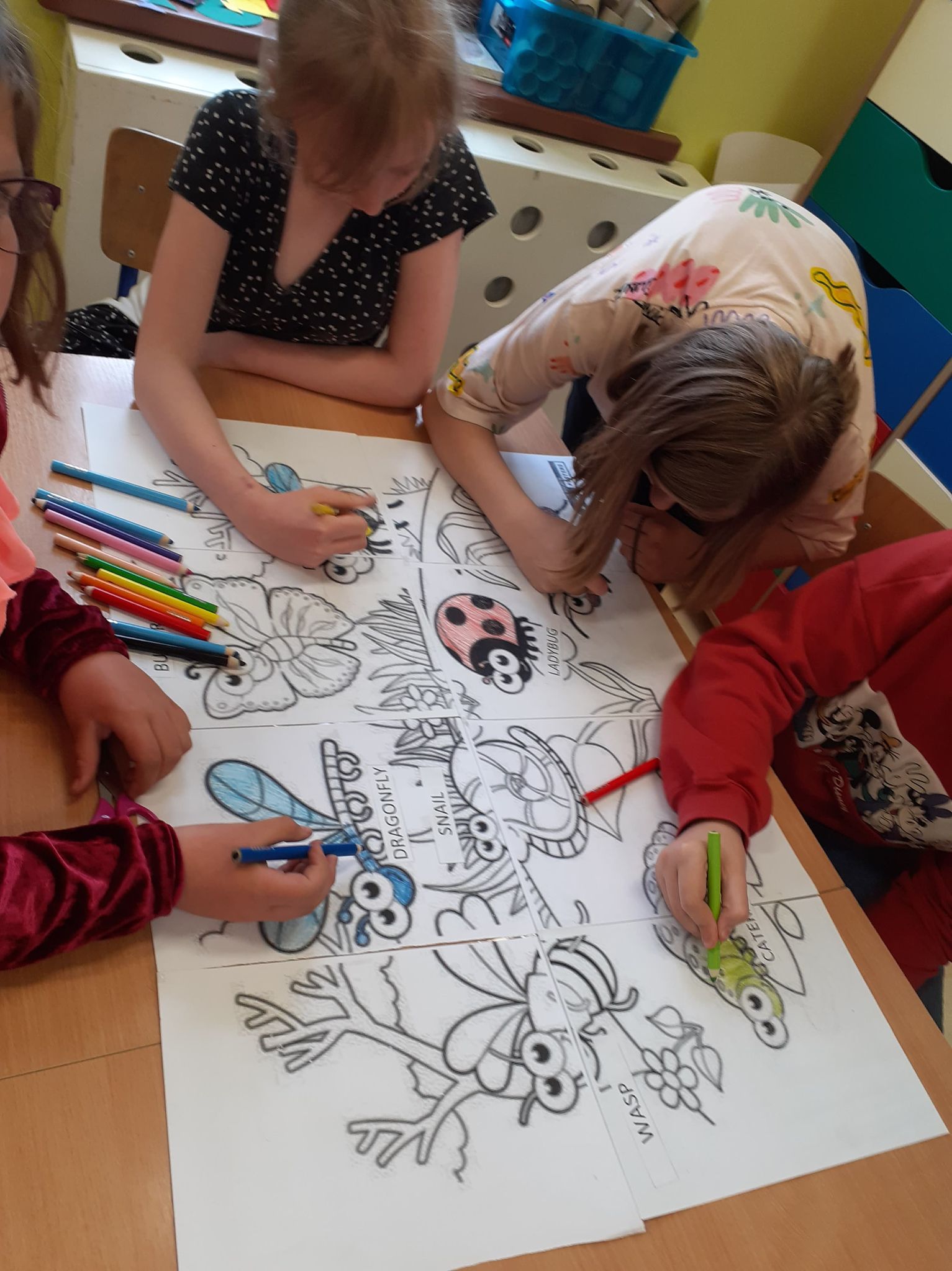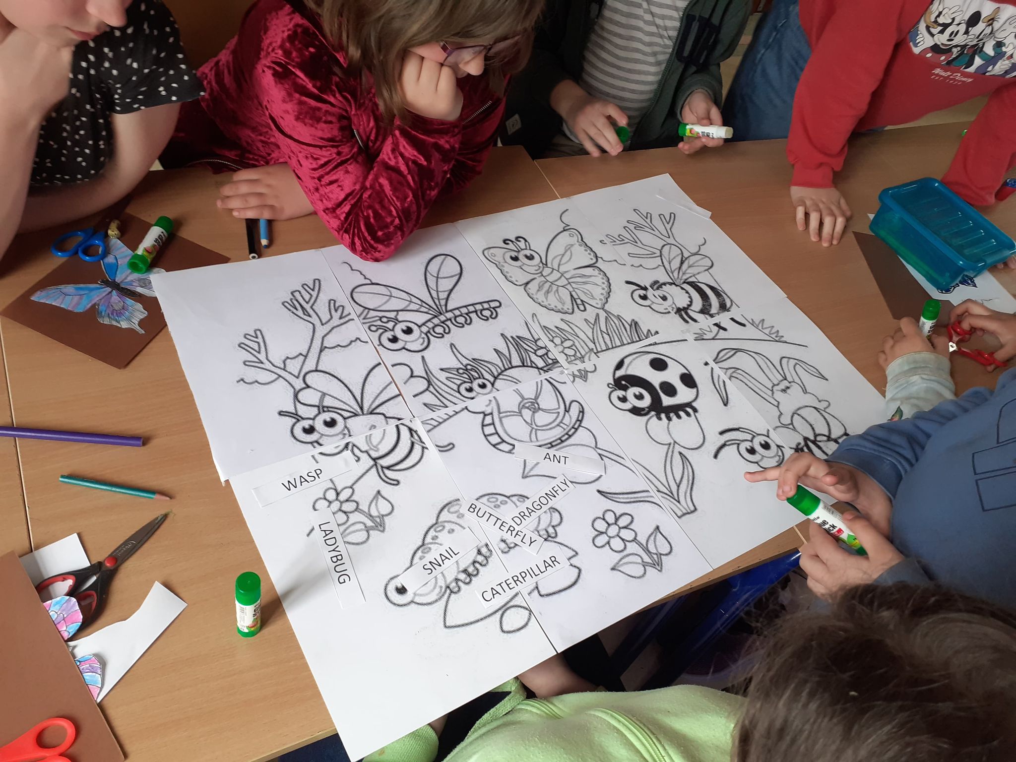 W maju ciągle poszerzaliśmy swoje angielskie słownictwo. Wybraliśmy się na łąkę i sprawdziliśmy co w trawie piszczy. Spotkaliśmy pszczoły, biedronki, motyle, ważki, dżdżownice i inne. Poza nazwami w języku angielskim poznaliśmy bliżej mieszkańców łąki i rozwiązywaliśmy quiz z wiedzy o owadach. To były ciekawe i pouczające zajęcia.
