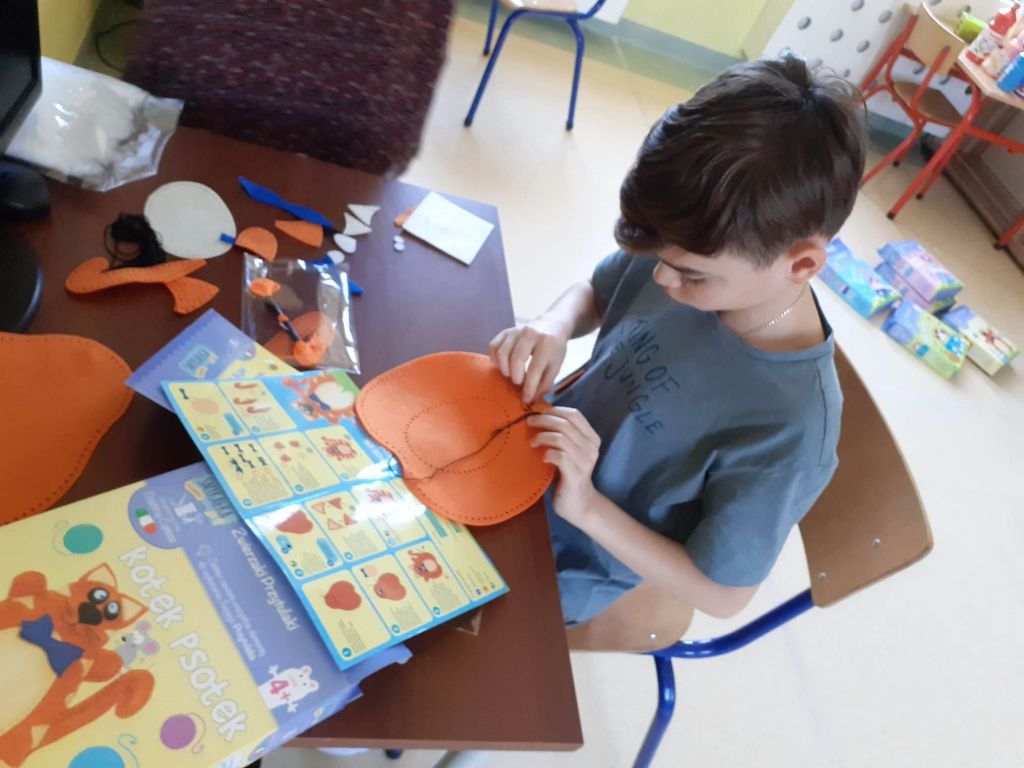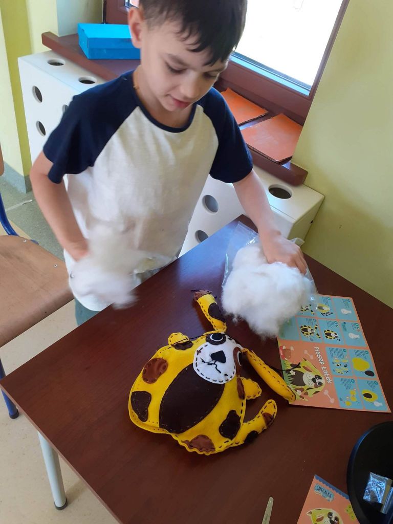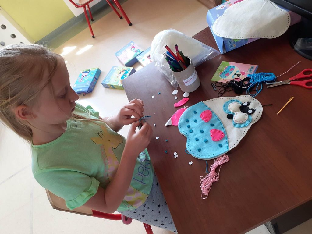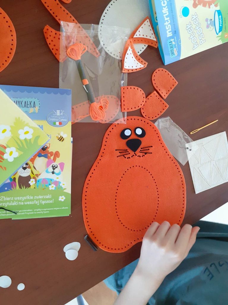Dzisiaj był intensywny dzień – szyliśmy sobie maskotki! Pieski, kotki, zajączki. Wyszło cudnie, ale pracy było sporo. Dla niektórych z nas to była pierwsze przygoda z igłą i nitką. Ale na pewno nie ostatnia, w planie mamy jeszcze podobne projekty. To była tylko rozgrzewka przed bardziej skomplikowanymi zadaniami. Fotorelacja jest dowodem na to, że nie było dzisiaj łatwo. Ale udało się!