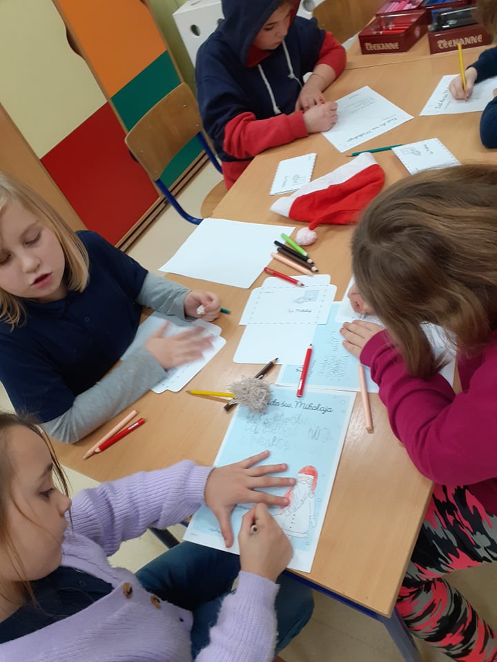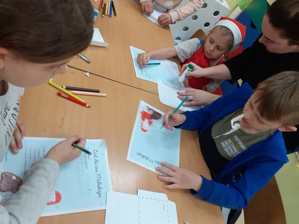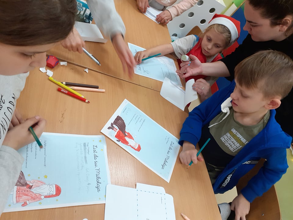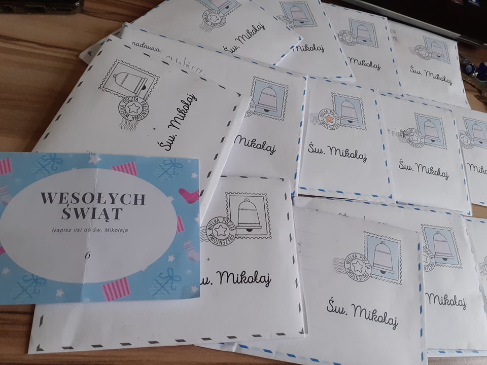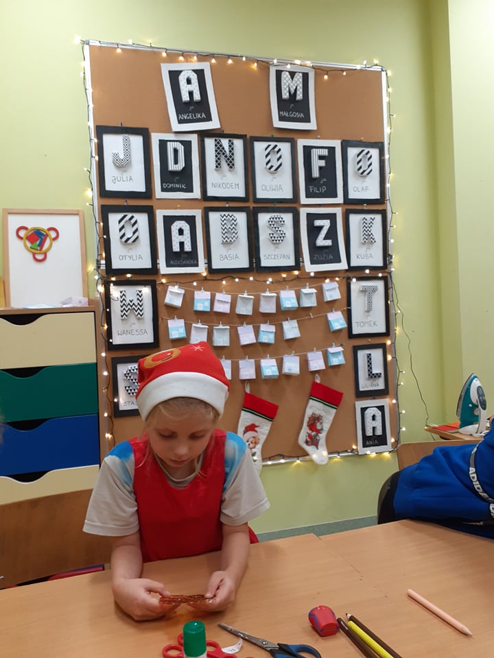 Mikołajki świętowaliśmy przez 2 dni. 6 grudnia, kiedy to pisaliśmy listy do św. Mikołaja. W zasadzie to odpowiadaliśmy na jego list do nas. Tego dnia nie zabrakło upominków – ślicznych świątecznych kubków i słodkości – na zachętę, aby wytrwać w byciu grzecznym do samych Świąt Bożego Narodzenia.