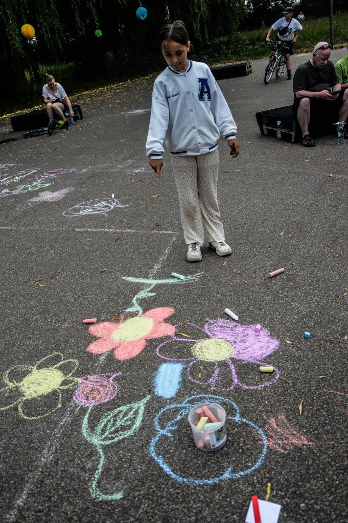 Pierwszego dnia lata wzięliśmy udział w wydarzeniu, które działo się tuż za oknami naszej świetlicy. Mowa o NOC ŚWIĘTOJAŃSKA POD WIERZBAMI, które było kolorowe za sprawą obrazków malowanych kredą na boisku, wianków z kwiatów plecionych przez dużych i małych oraz obrazu w rozmiarze XXXXXL, tworzonego przez najmłodszych uczestników wydarzenia.