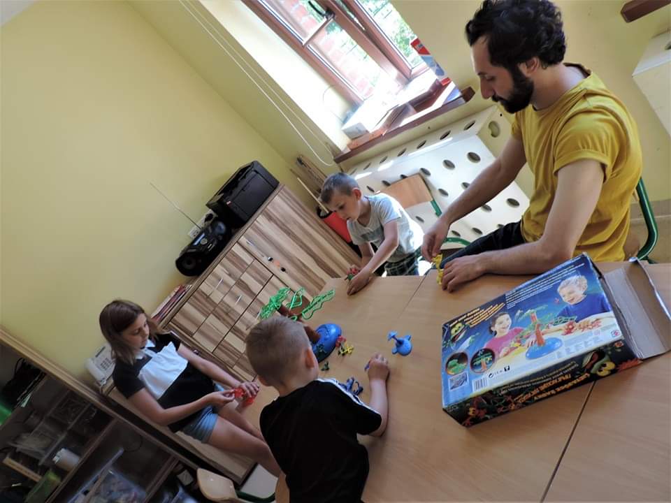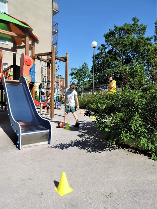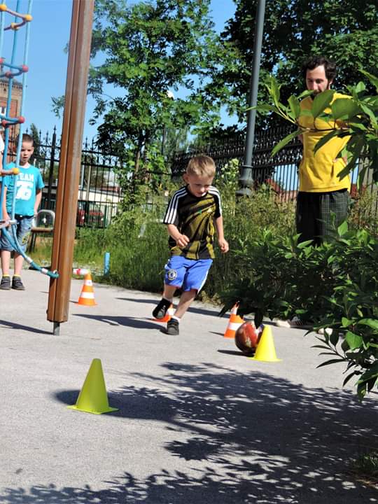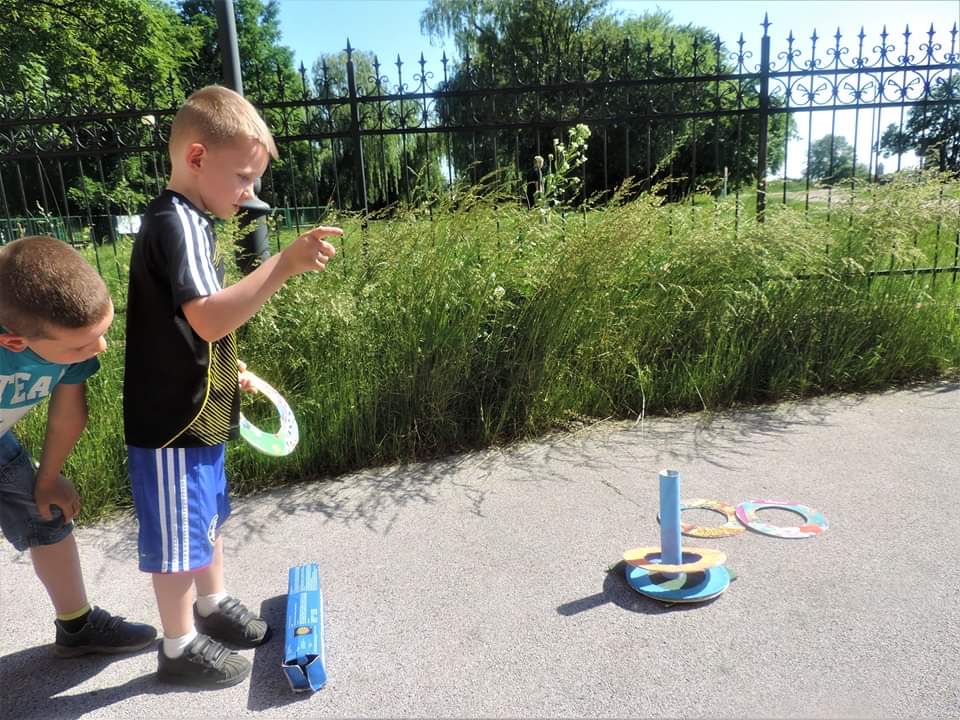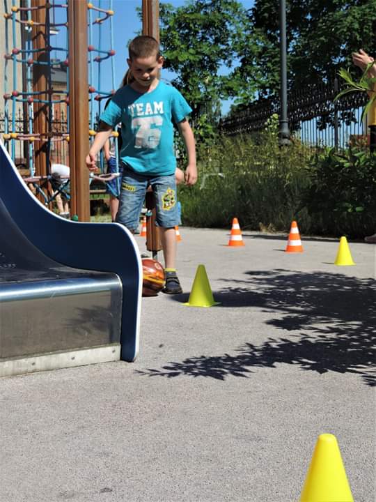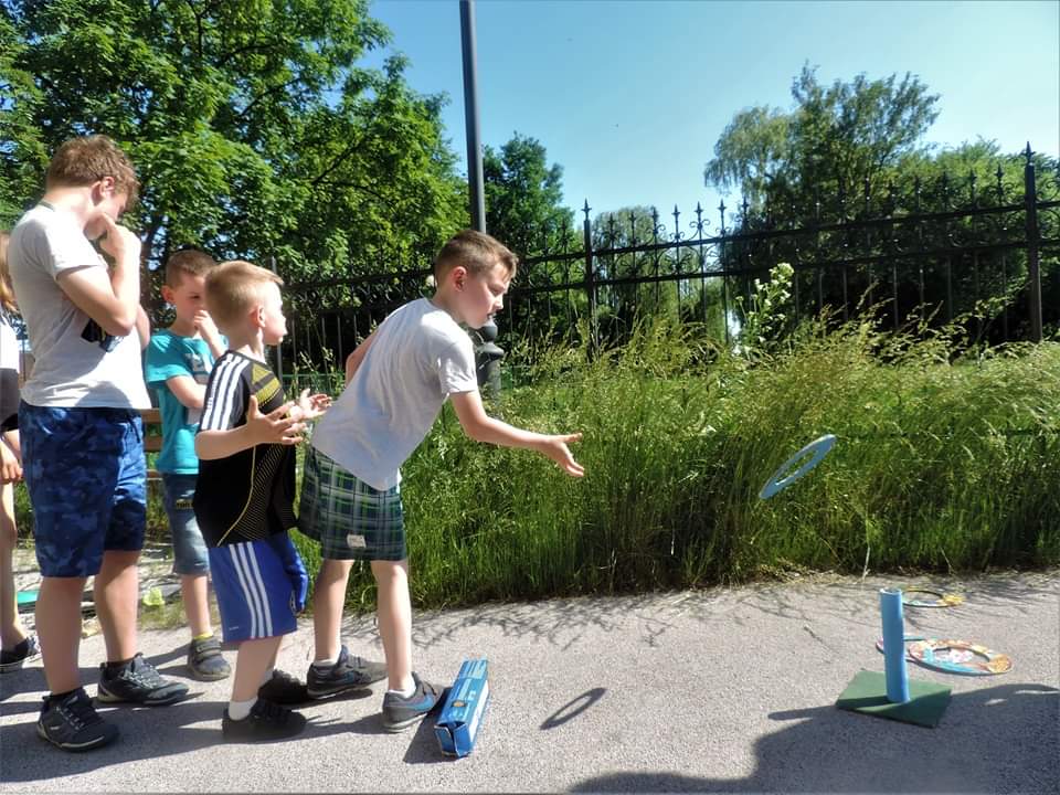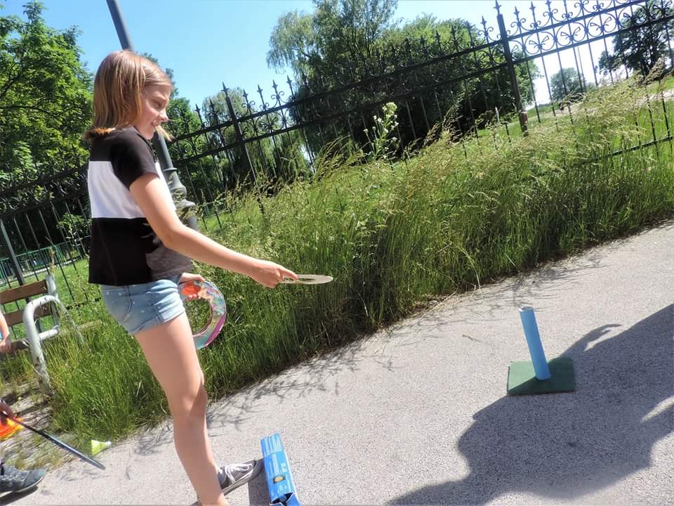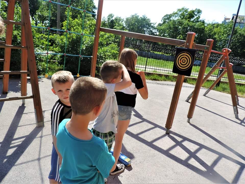 Po zakończeniu akcji „Rowerowy maj” nie ustajemy w wysiłkach. Taka piękna pogoda to i szkoda siedzieć w murach świetlicy. Co prawda na rozgrzanie było Bystre oczko i skaczące żaby, ale potem my się trochę poruszaliśmy. Rzut do celu, gra w badmintona i slalom z piłką tak na dobry początek. Na naszym placu zawsze bawimy się świetnie!