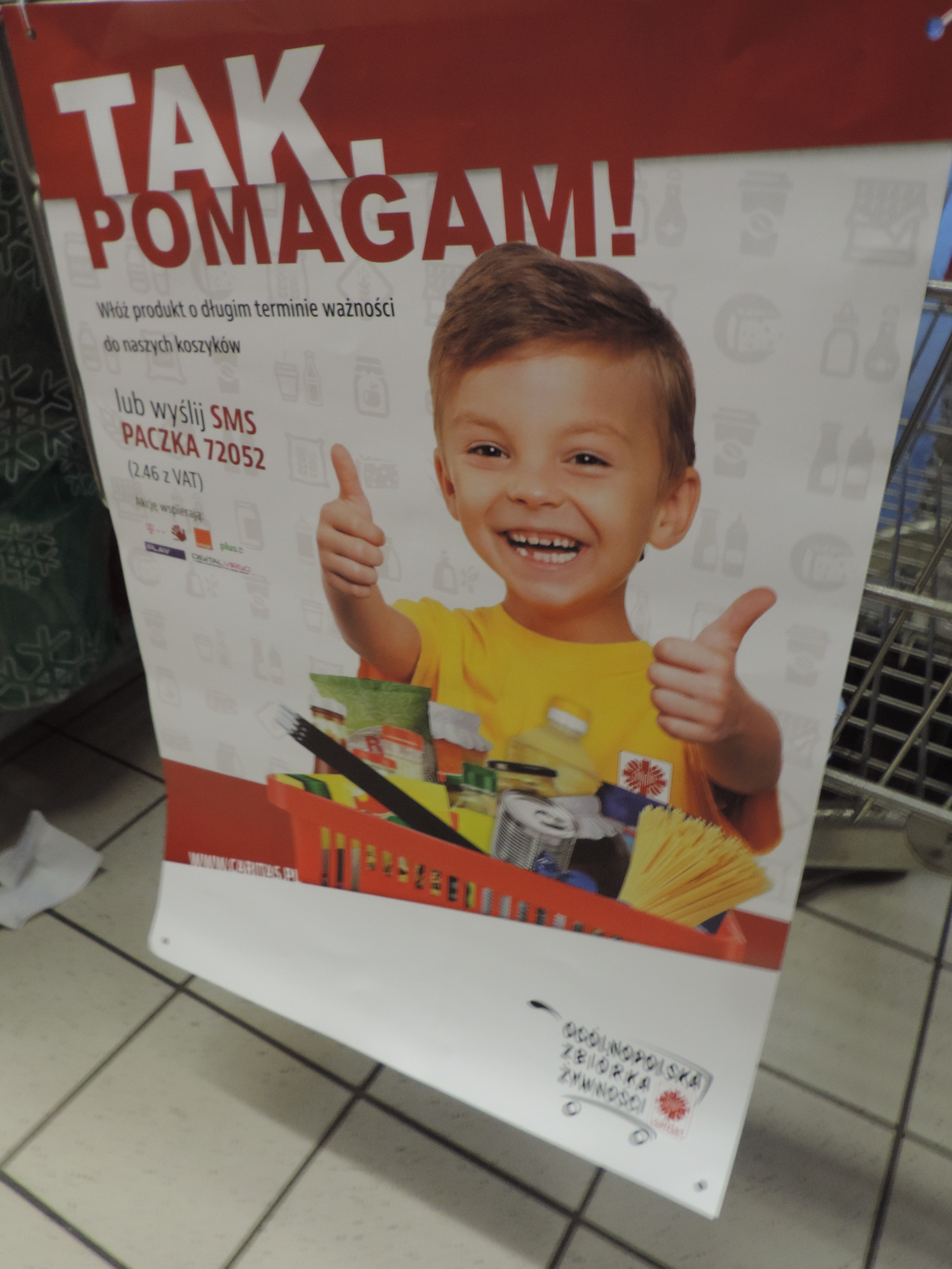 Świetlica Dobra również włączyła się w tegoroczną ogólnopolską akcję „Tak, Pomagam!”. Przez dwa dni – piątek i sobotę, staliśmy w sklepie i zbieraliśmy żywność dla rodzin potrzebujących. Udało nam się zebrać sporo artykułów spożywczych z długim terminem ważności, które trafą w postaci świątecznych paczek do najbardziej potrzebujących.