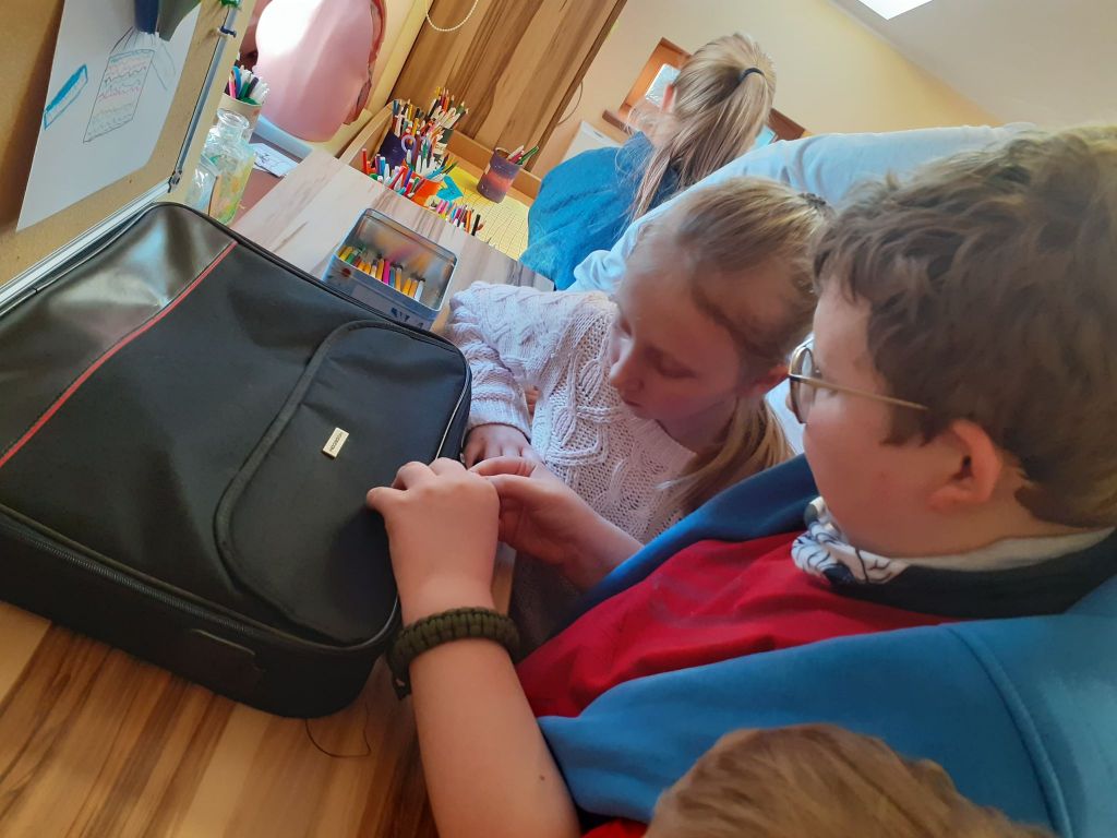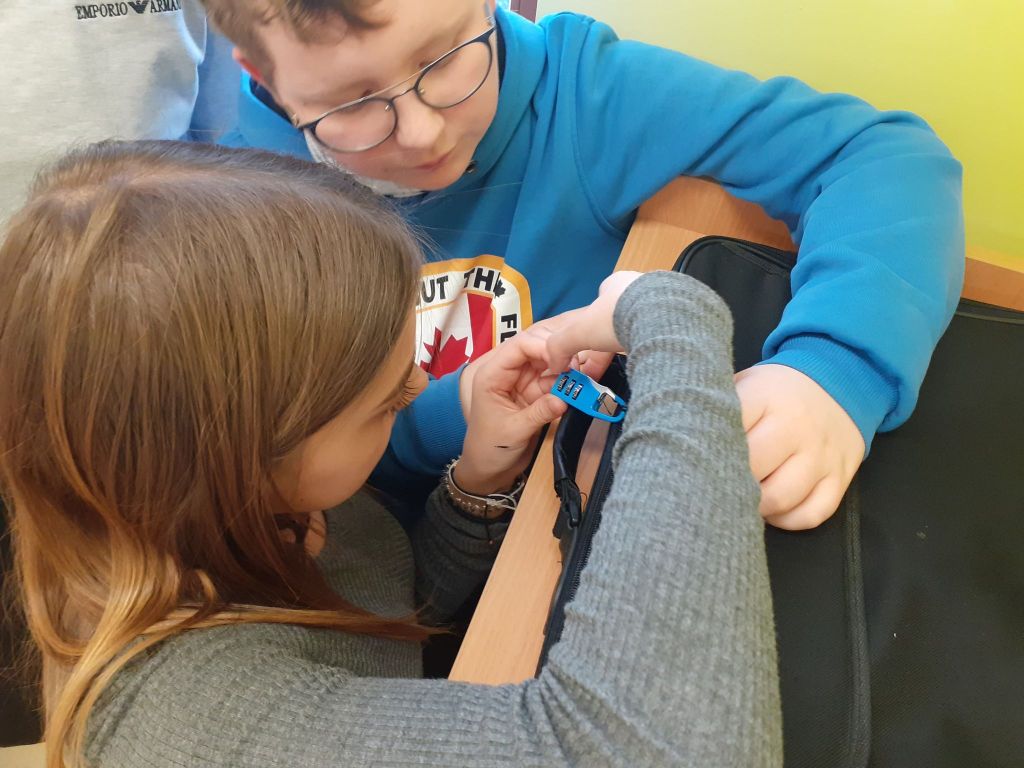 Cóż to było za popołudnie i jakie ważne zadanie! Musieliśmy odnaleźć zaginionego Misia Agnieszkę. Misja nie była łatwa i nie mogliśmy do niej przystąpić od razu. Najpierw zostaliśmy sprawdzeni, czy nadajemy się na tajnych agentów. Podczas zadania czekały na nas różne zagadki i łamigłówki i kiedy okazało się, że im podołaliśmy, mogliśmy wyjść z tajemniczego pokoju nr 1 i przejść na kolejny etap. W sekretnym pokoju nr 2 odnaleźliśmy koperty z zadaniami. Ich rozwiązanie prowadziło do jednej z dwóch toreb zamkniętych na szyfr. Po wpisaniu właściwego, naszym oczom ukazały się… kolejne łamigłówki! Okazało się, że zaprowadzą nas one do kolejnej torby i ciągu cyfr, który otwierał drugą kłódkę. Zgadniecie co znaleźliśmy w drugiej torbie, kiedy udało nam się ją otworzyć? Oczywiście! Macie rację! Miś Agnieszka. Ale nie tylko – również słodkości, które stanowiły niespodziankę i nagrodę dla nas za wysiłek i bezbłędne rozwiązanie wszystkich zagadek. Zostaliśmy tajnymi agentami! 😉
