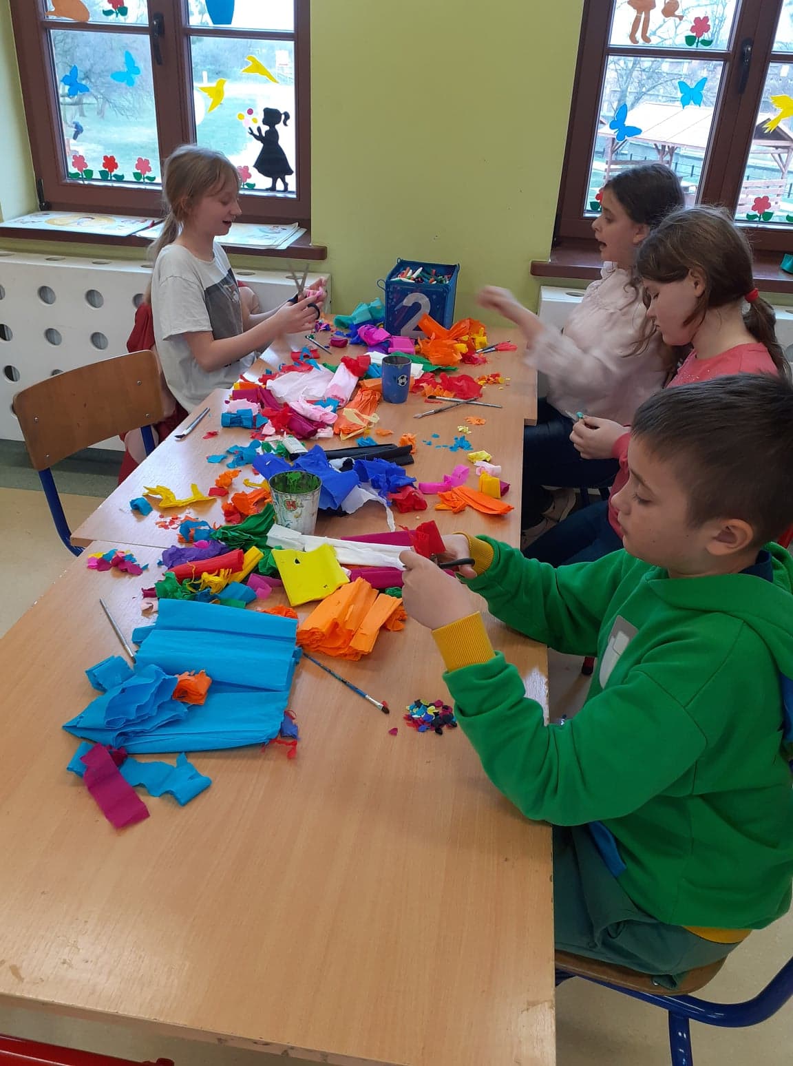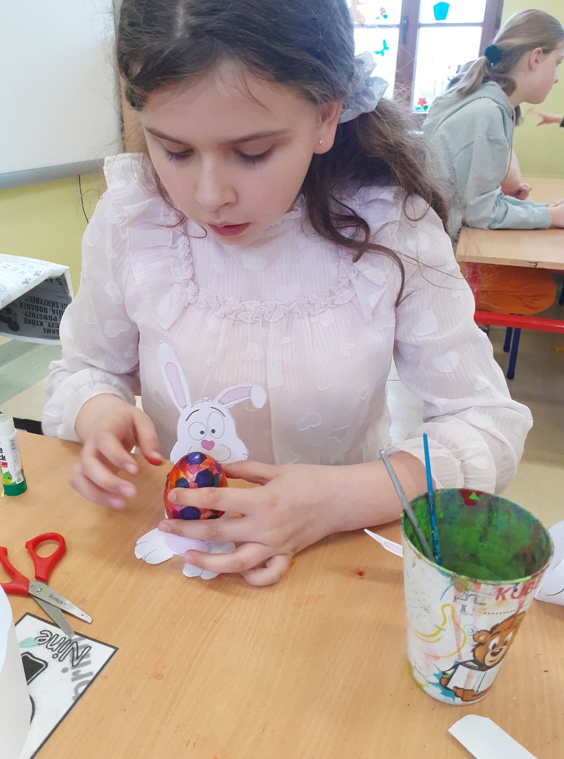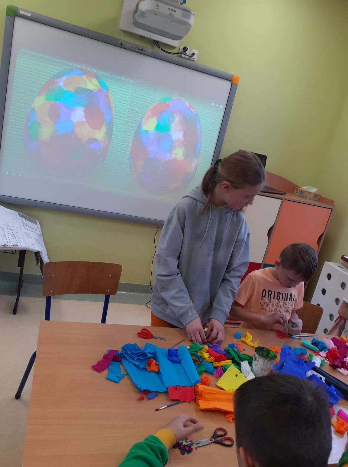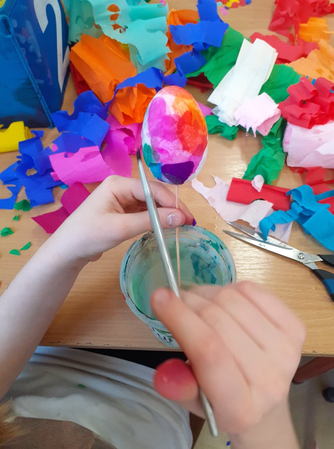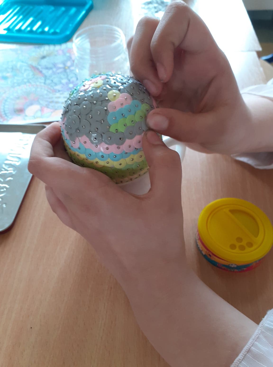 Wielkanoc coraz bliżej. U nas powstały niecodzienne pisanki. Do obu pomysłów wykorzystaliśmy styropianowe jajka, ale technika była zupełnie różna. Pierwsze z nich ozdobiliśmy cekinami. Praca była żmudna, ale efekt zrekompensował ból palców od wbijania szpileczek. Drugie ozdobione zostały kółeczkami kolorowej bibuły. Przyklejaliśmy je rozcieńczonym w wodzie klejem, dzięki czemu barwy przenikały się wzajemnie na powierzchni, tworząc wyjątkowe jajka.