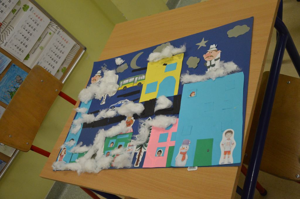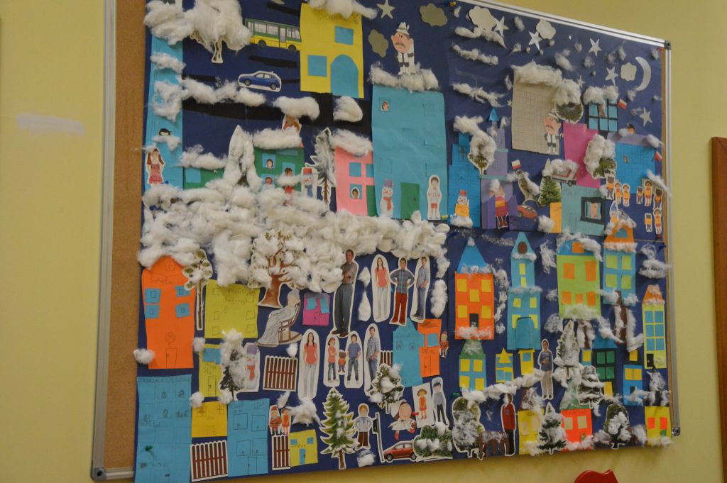 Ostatnie dni w naszej świetlicy opanował padający śnieg, skrzypiący mróz, zaśnieżone ulice i dachy, ciepłe ubrania. Wszystko dlatego, że powstawało „Nasze miasto zimą”.
