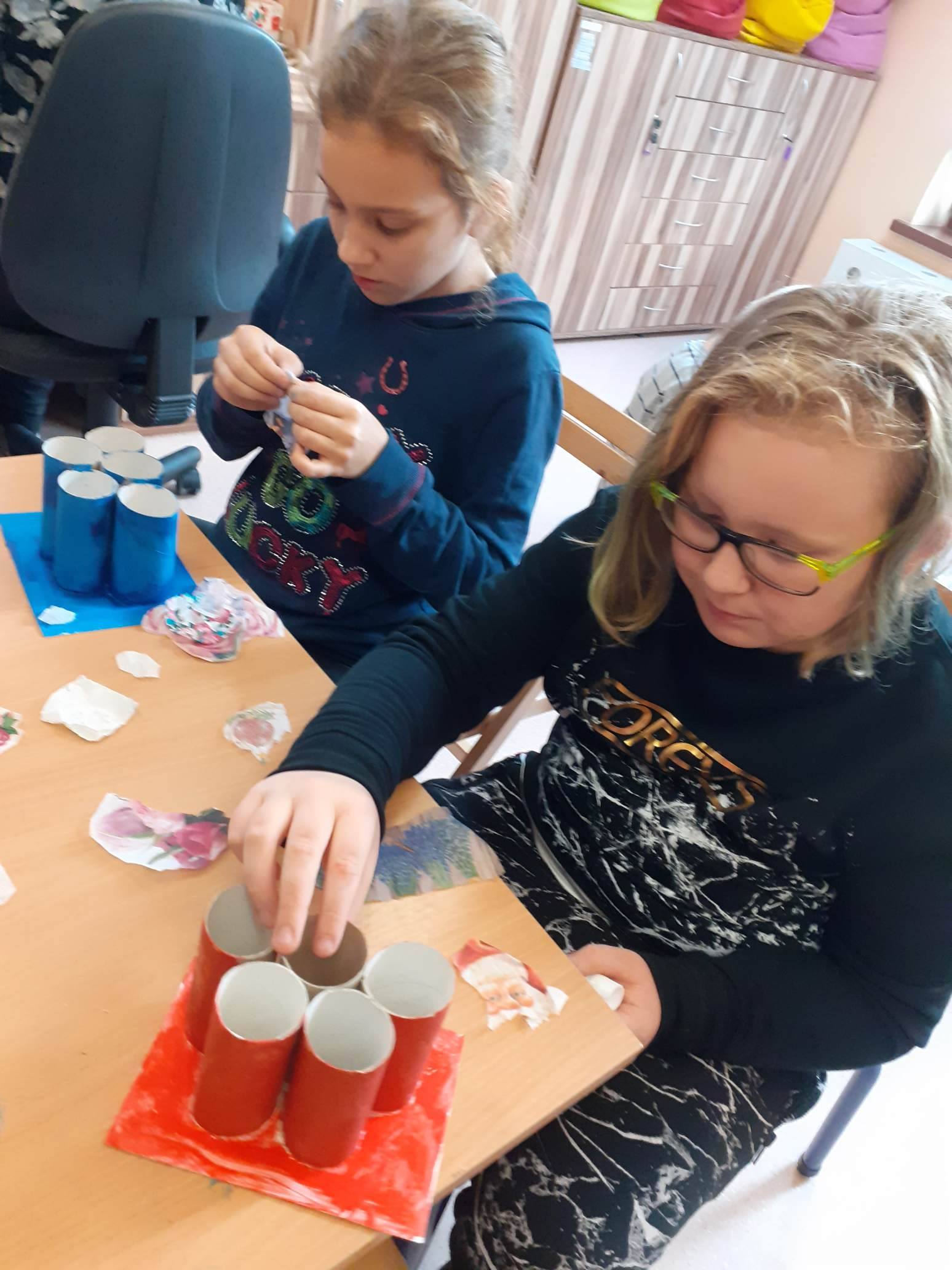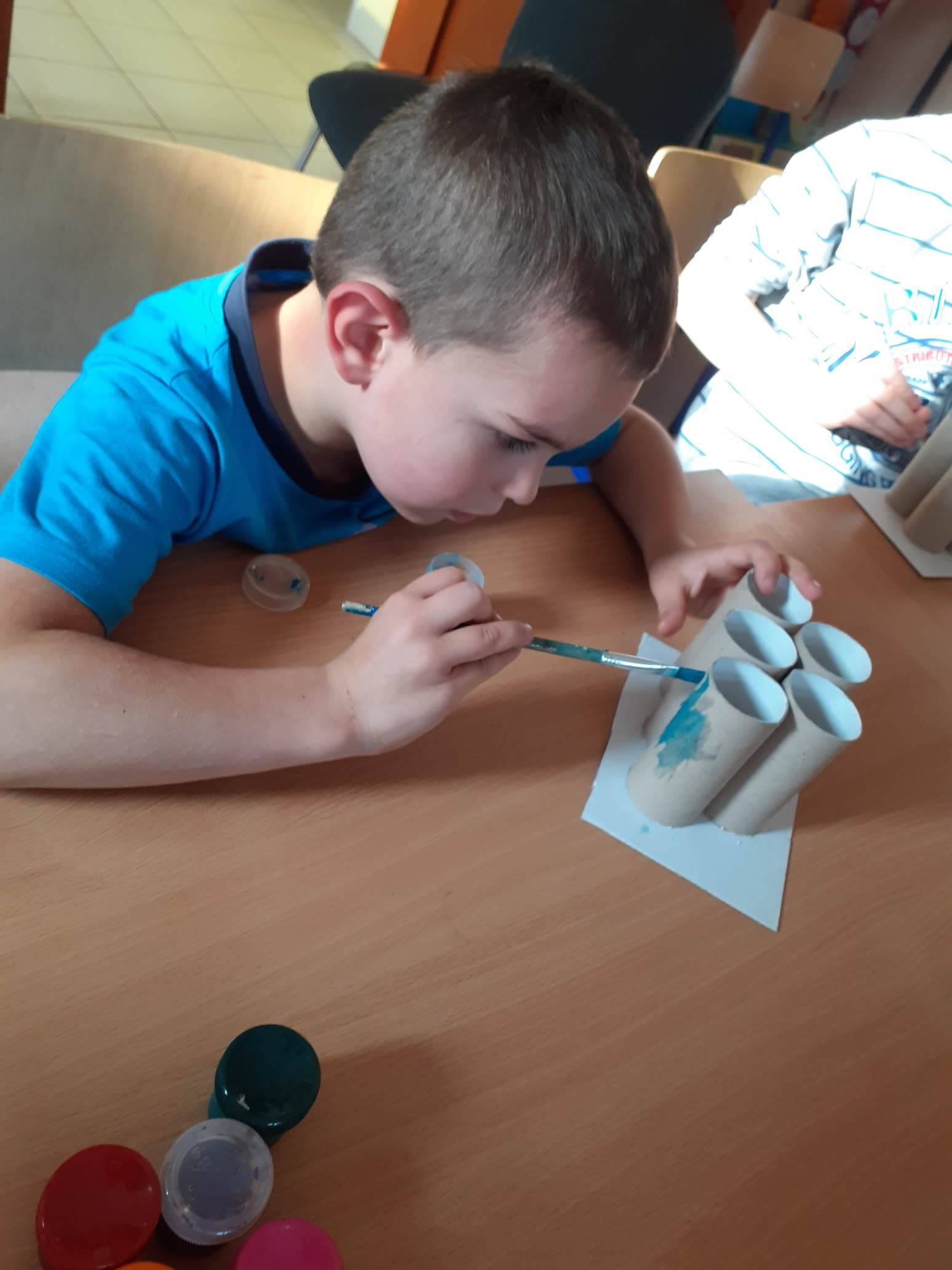 Wiemy, że rok szkolny zaczął się już dawno, jednak na takie zajęcia nigdy nie jest za późno. Dzisiaj powstały oryginalne, bo nasze, organizery na biurko. Nie potrzeba było wiele – tutki po papierze, kawałek tekturki, kolorowe farbki i serwetki, trochę kleju i gotowe! Bardzo nam się podobają i na pewno pomogą w uporządkowaniu naszych długopisów, ołówków, kredek, flamastrów i innych.