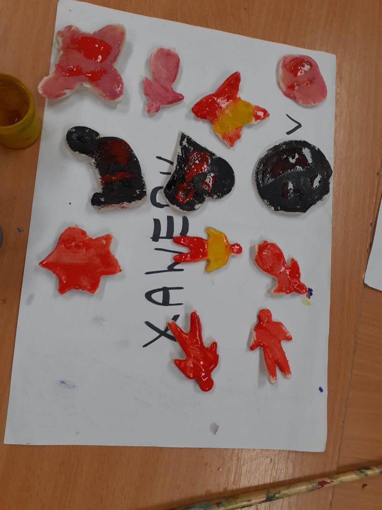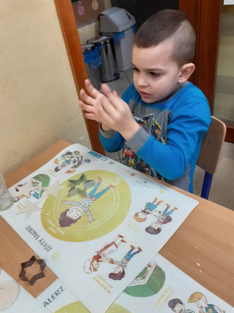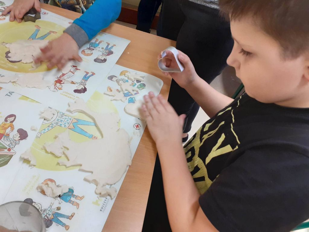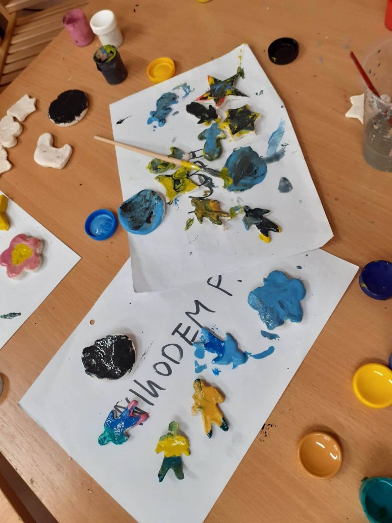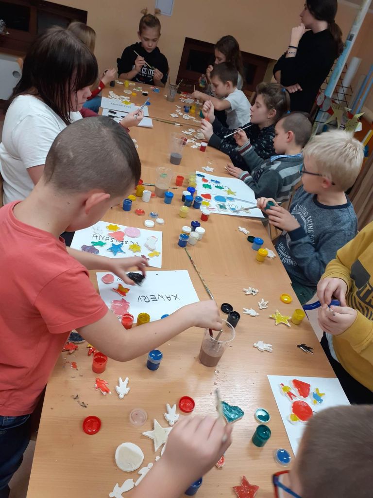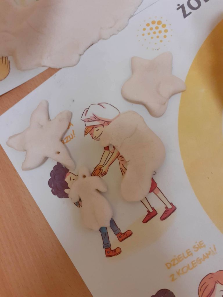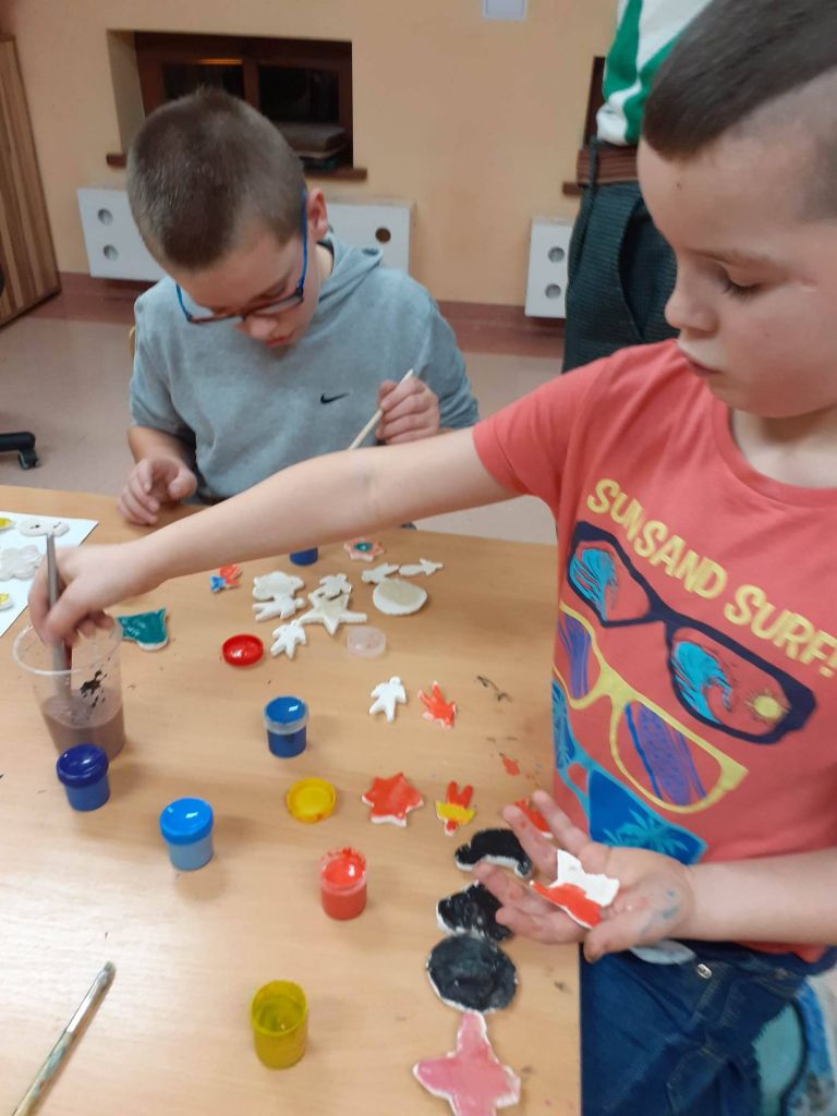 Efekt naszych dwóch dni pracy – ozdoby choinkowe z masy solnej. Wykrajanie kształtów i malowanie ich farbami to była sama przyjemność. A jaka będzie satysfakcja, kiedy już zawisną na naszych choinkach. Przecież bożonarodzeniowe drzewko ubrane we własnoręcznie wykonane dekoracje cieszy najbardziej!