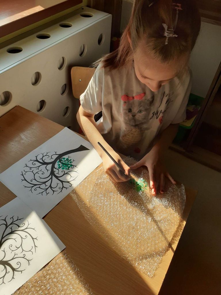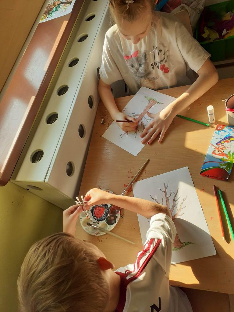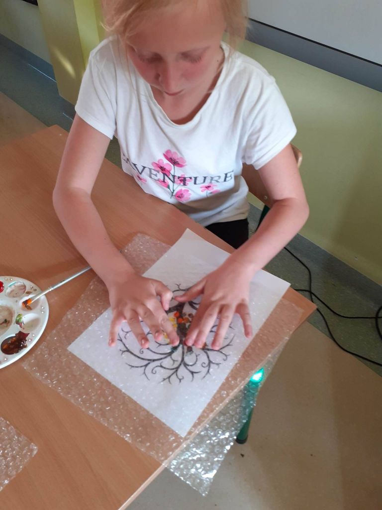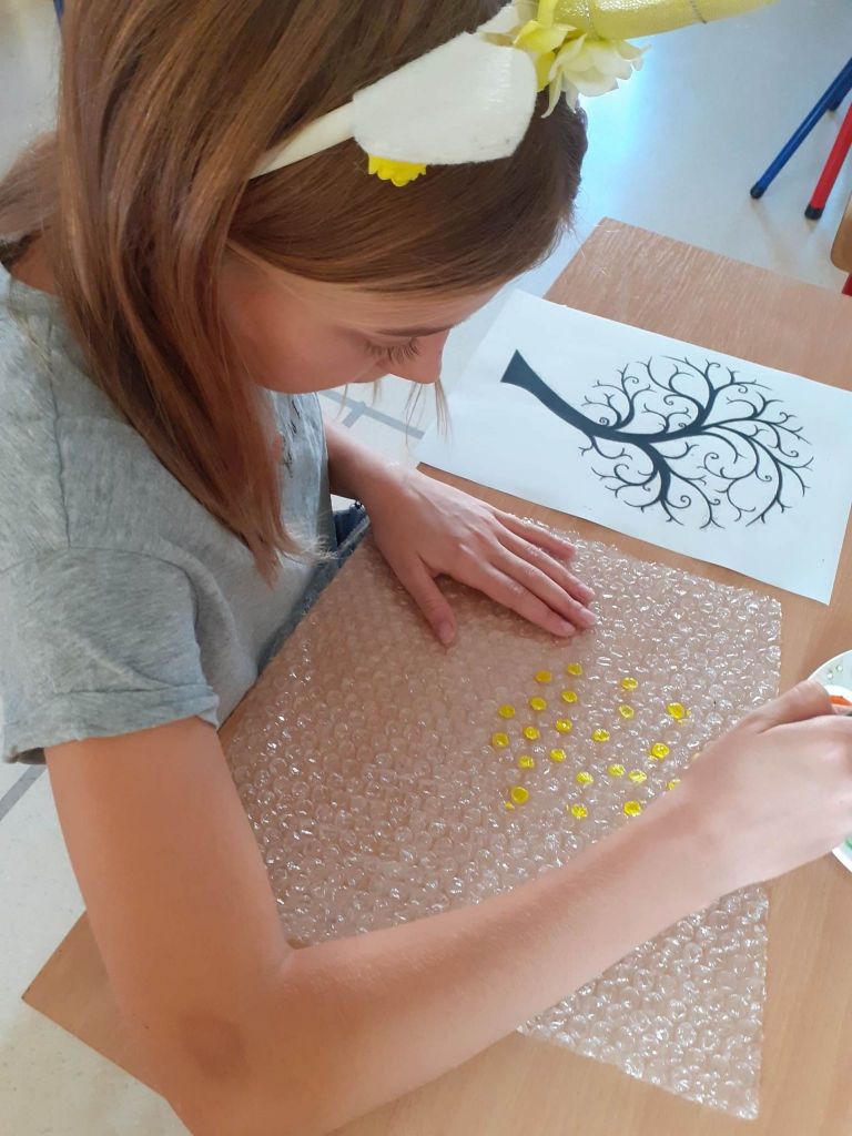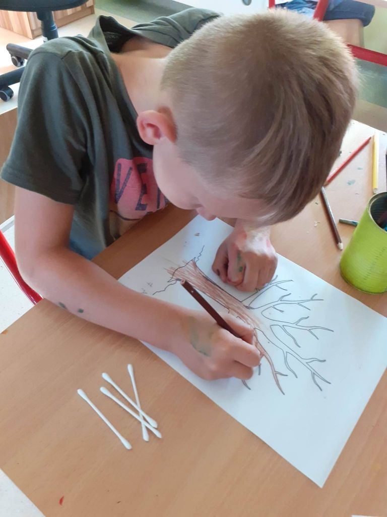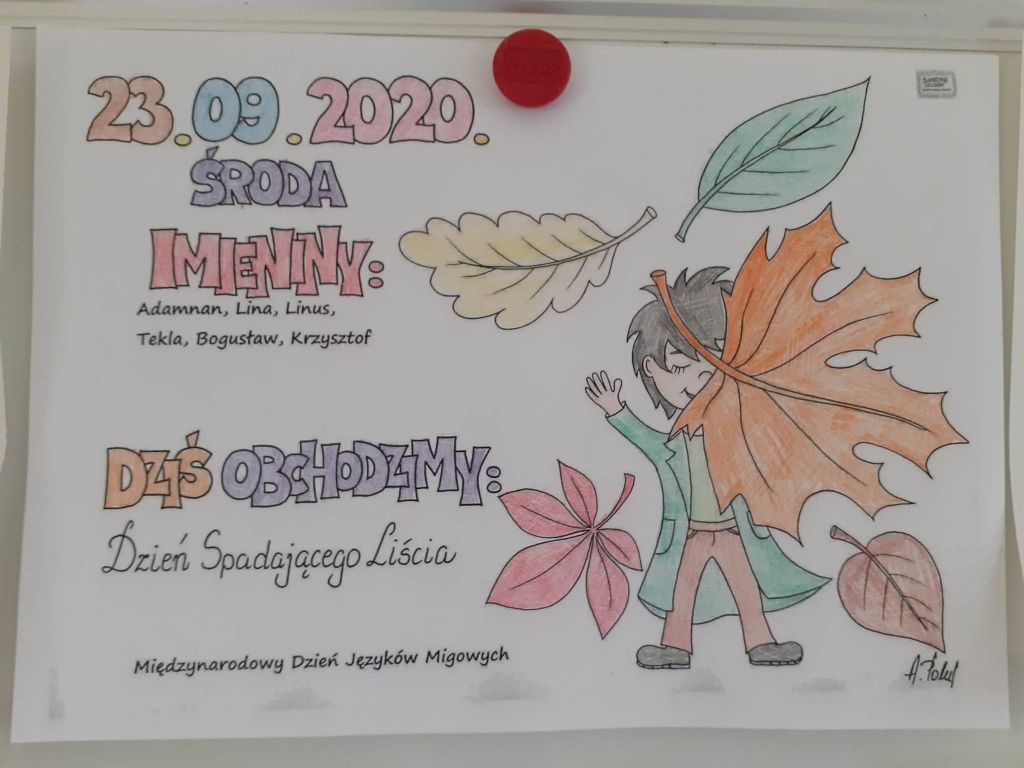 Pierwszy Dzień Jesieni, a zarazem Dzień Spadającego Liścia. Niektórzy nie przepadają za jesienią – bo zimno, mokro, wietrznie. Ale my tą porę roku bardzo lubimy! A kto wcześniej nie lubił, to już zdążył zmienić zdanie. Wszystko dzięki kolorowym pracom plastycznym, które wykonaliśmy. Powstały piękne jesienne drzewa – z pomarańczowymi, zielony, czerwonymi i żółtymi liśćmi. Każde zostało wykonane inną techniką, choć do wszystkich zostały użyte farby – jedne malowaliśmy przy pomocy rolek po papierze toaletowym, inne odbijając kółeczka z folii bąbelkowej, a jeszcze inne patyczkami higienicznymi. U nas już jest jesiennie, ale nadal słonecznie i pozytywnie.