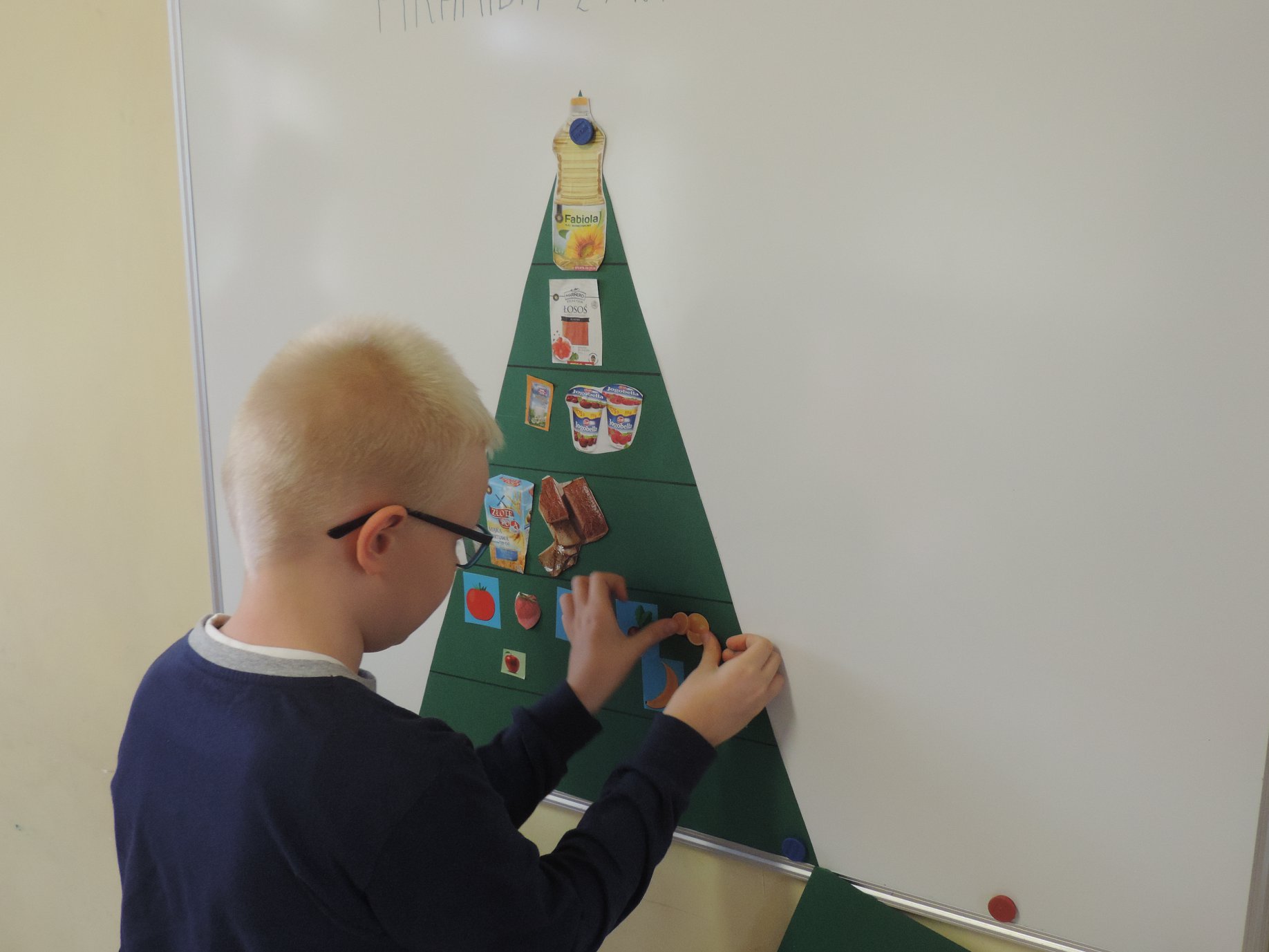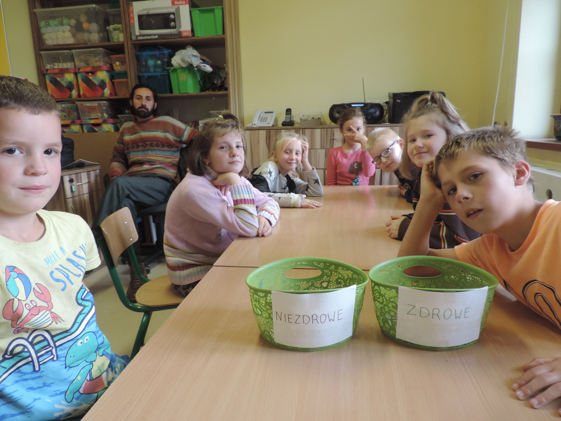 Zdrowe odżywianie jest niezwykle ważnym elementem życia każdego człowieka. Warto wiedzieć co powinniśmy jeść, a czego lepiej unikać. Tego właśnie próbowaliśmy dowiedzieć się na naszych zajęciach. Dzieci najpierw rozdzieliły produkty na zdrowe i niezdrowe, a następnie odtworzyły piramidę żywienia. Zakończeniem zajęć były zagadki o zdrowej żywności, nad którymi nieźle główkowaliśmy!