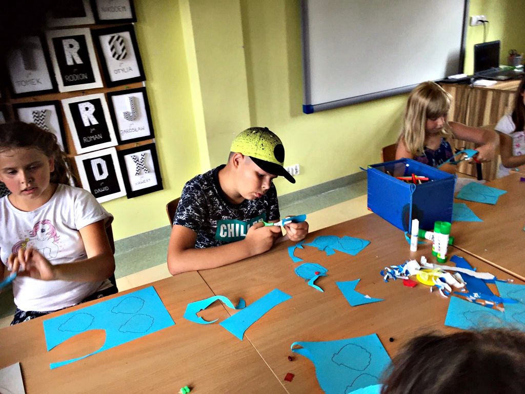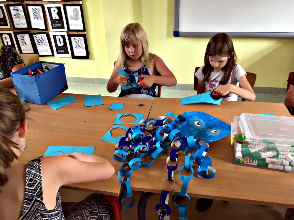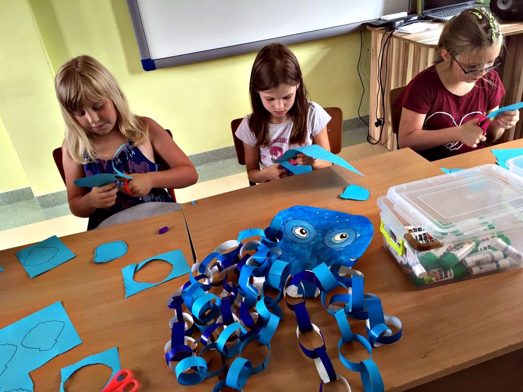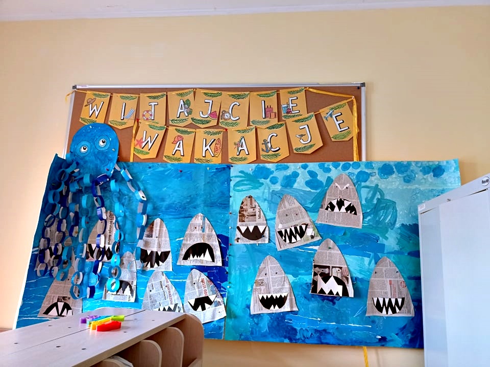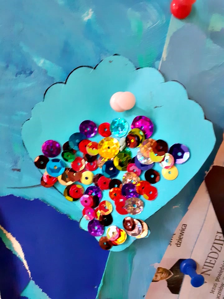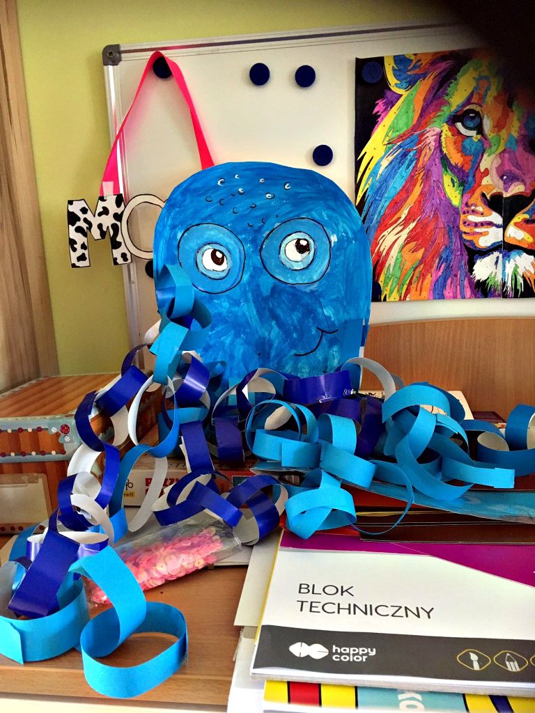 Musimy trochę nadrobić zaległości. Przed wycieczką do Ośrodka Kultury Morskiej, cały tydzień spędziliśmy na poznawaniu podwodnego świata i jego stworzeń. Wiemy, jak bogate jest życie mórz i oceanów i tak nam się ono spodobało, że wykonaliśmy kilka prac z nim związanych. Pojawiła się ogromna ośmiornica, rekiny, rybki, kolorowe muszle. Radości przy tworzeniu było co nie miara, a sporej dawki śmiechu i wzruszeń dostarczyli nam również bohaterowie jednej z bajek – Nemo i Dory.