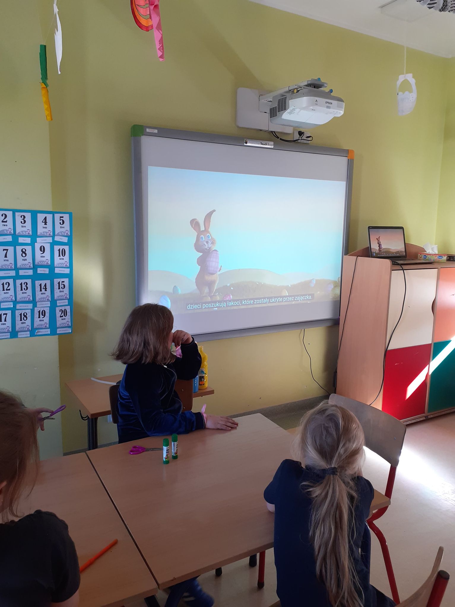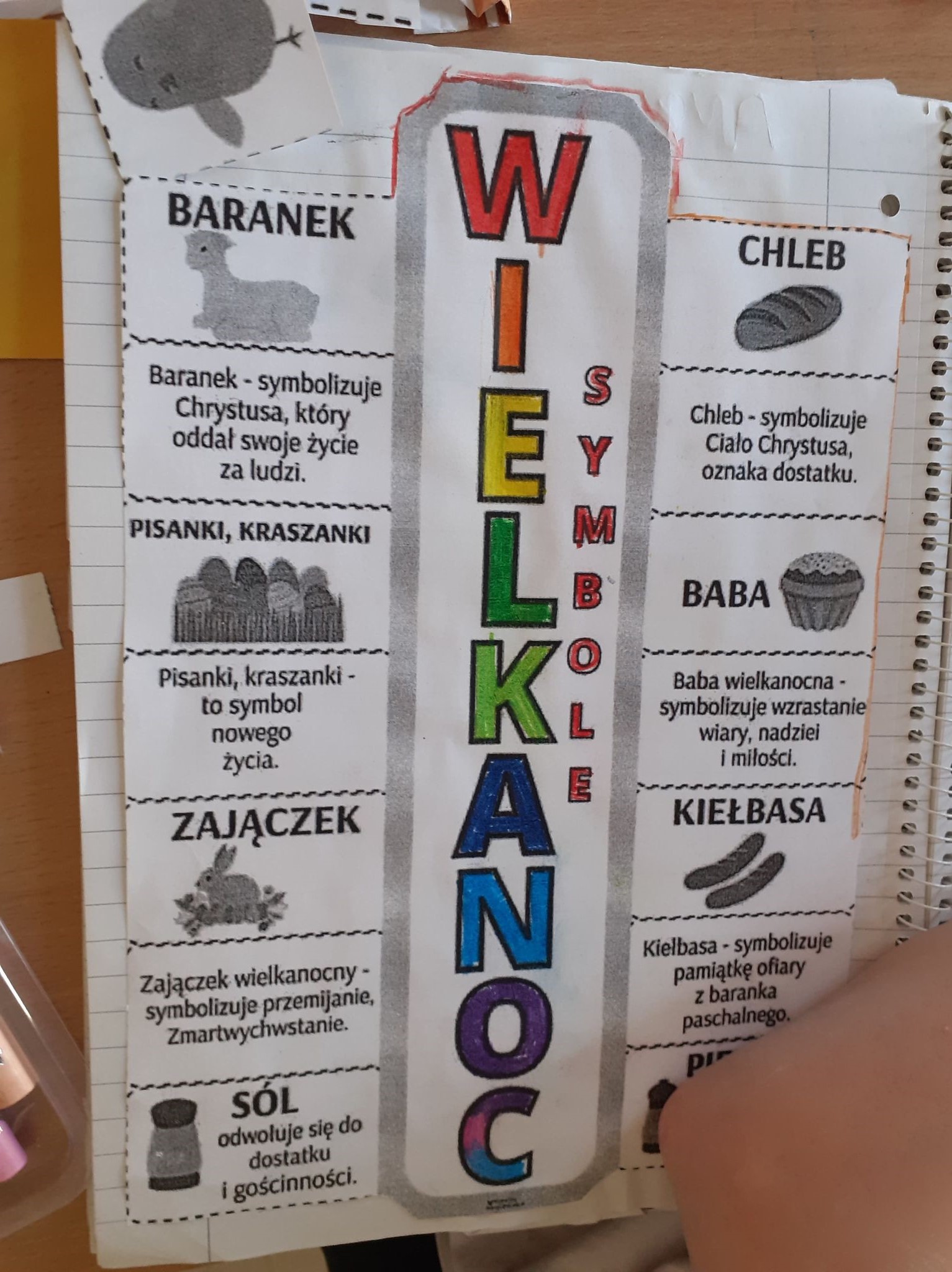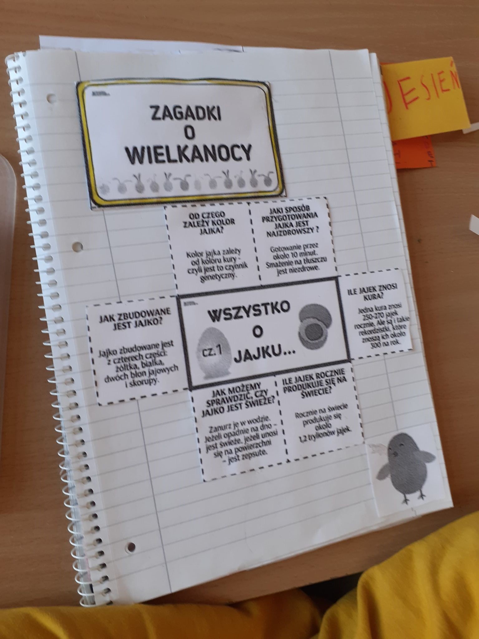 Dzień wcześniej przygotowaliśmy sobie wielkanocne lapbooki, dzięki którym przypomnieliśmy sobie nasze rodzime tradycje, symbole, rozwiązywaliśmy zagadki, rozwiązywaliśmy matematyczne zadania z jajem.
