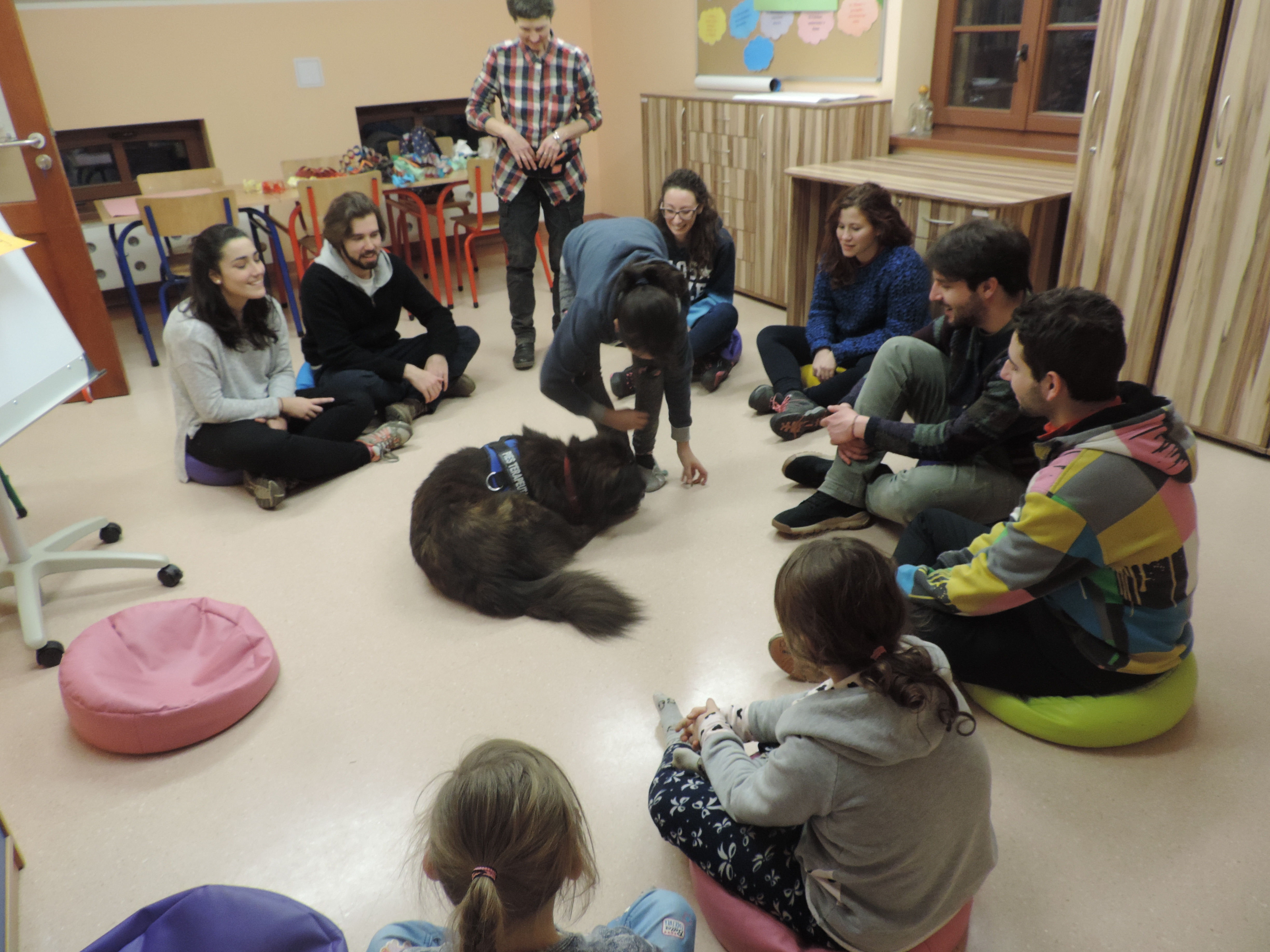 Dzisiaj mieliśmy przyjemność gościć w naszej placówce nowych wolontariuszy EVS – sześcioro przemiłych osób z Włoch, Hiszpanii i Portugalii. Pokazaliśmy im świetlicę, a także namiastkę tego, co robimy na co dzień. Wspólnie robiliśmy sukienki i koszule z origami, a później dobrze się bawiliśmy na zajęciach z naszym psem terapeutą – Faustynem. Jak się wreszcie dowiedzieliśmy, naszą wolontariuszką będzie Hiszpanka – Guadalupe. Już nie możemy się doczekać na wspólną pracę i spędzanie czasu wolnego.