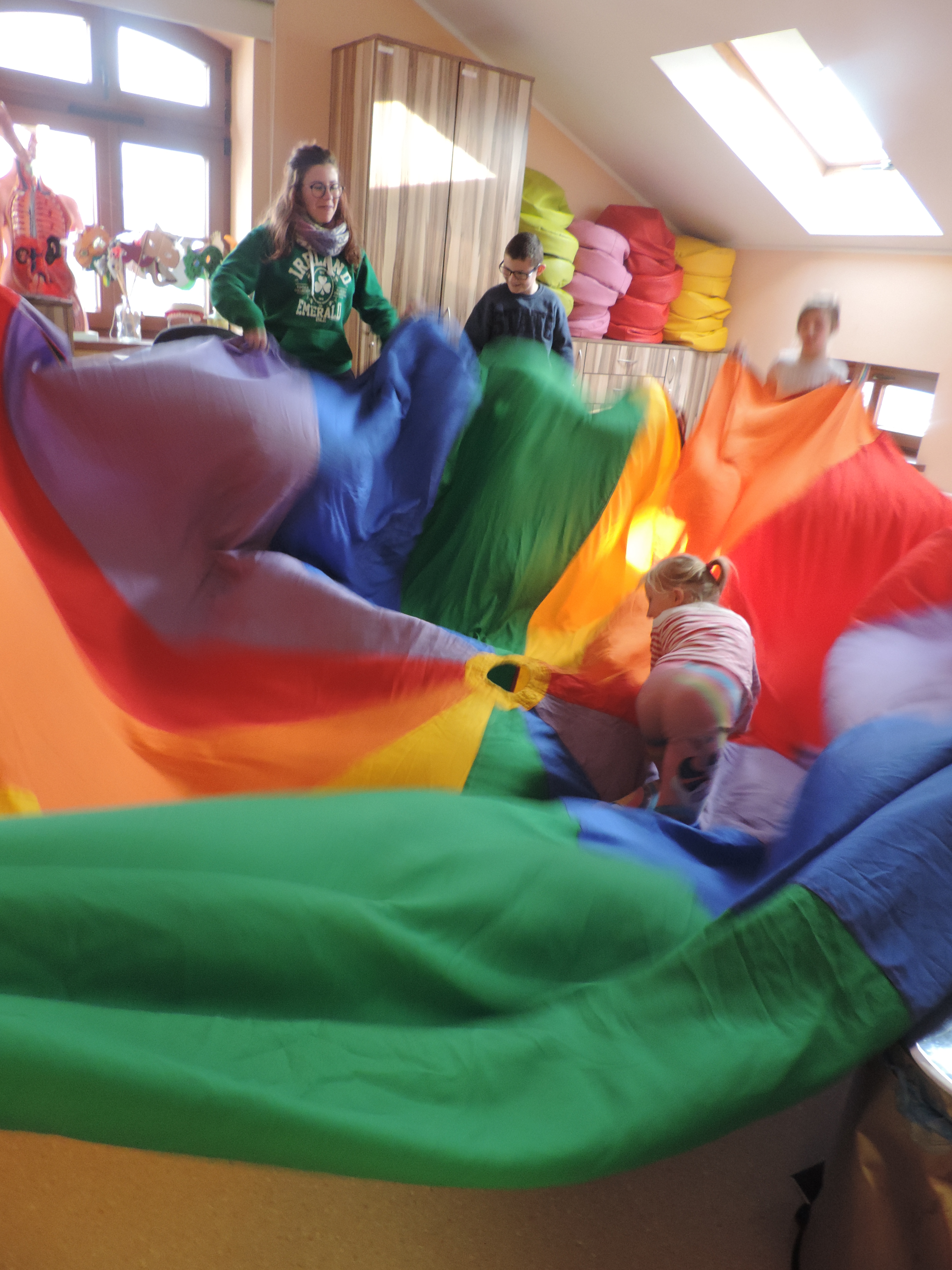 Z angielskim idzie nam coraz lepiej – razem z Guadą przetłumaczyliśmy sobie przepis na ciasto jogurtowe z cytryną. Zrobiliśmy to tak szybko, że później wystarczyło nam czasu jeszcze na zabawy z chustą animacyjną. Było tyle śmiechu, że na koniec zajęć rozbolały nas brzuchy i wyszliśmy uśmiechnięci od ucha do ucha.