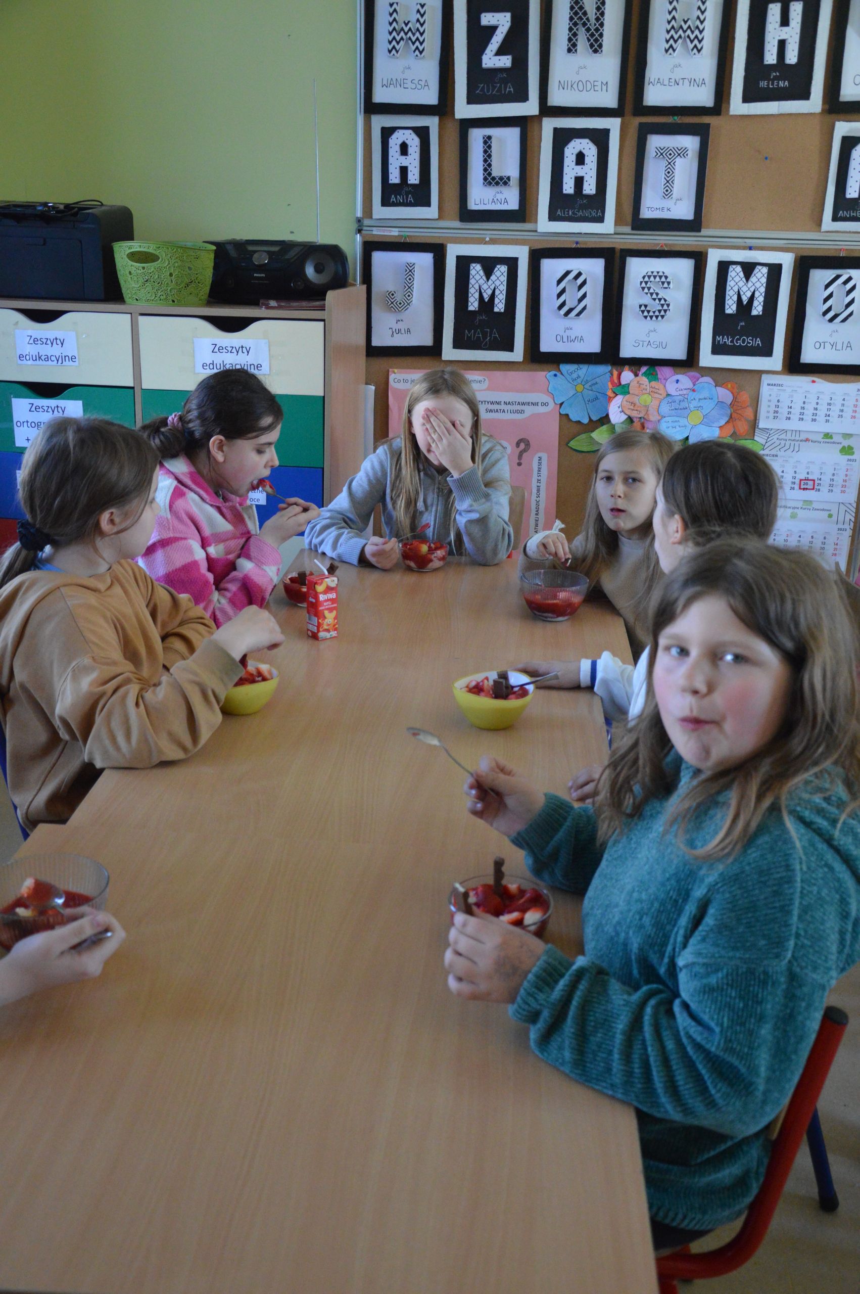 Nasz poprzedni tydzień był pełen pięknej pogody, dobrej energii, słońca i uśmiechów. Było też słodko i zdrowo, za sprawą deseru, który dzieciaki okrzynęły najlepszym deserem świata, oczywiście zaraz po sałatce owocowej. Gdyby ktoś chciał zrobić samodzielnie w domu to nic prostszego. Składniki potrzebne do jego przygotowania to skyr owocowy, mus truskawkowy, świeże owoce i czekolada. Polecamy na te wiosenne dni!