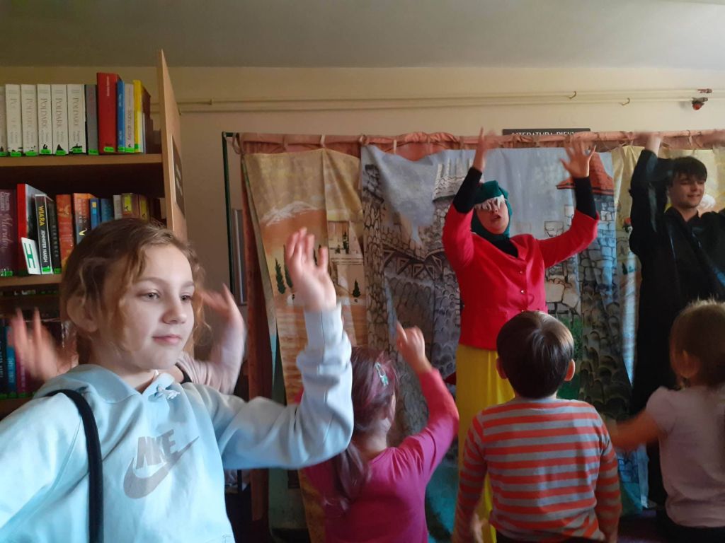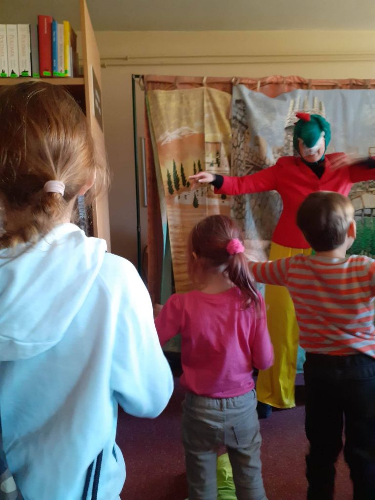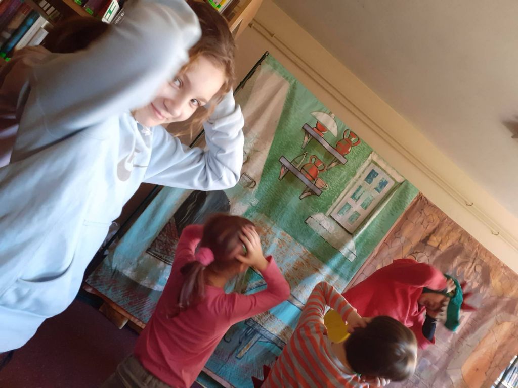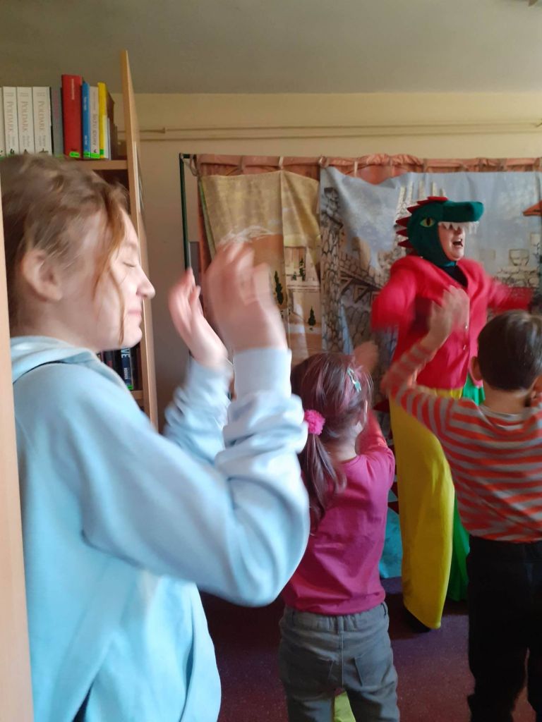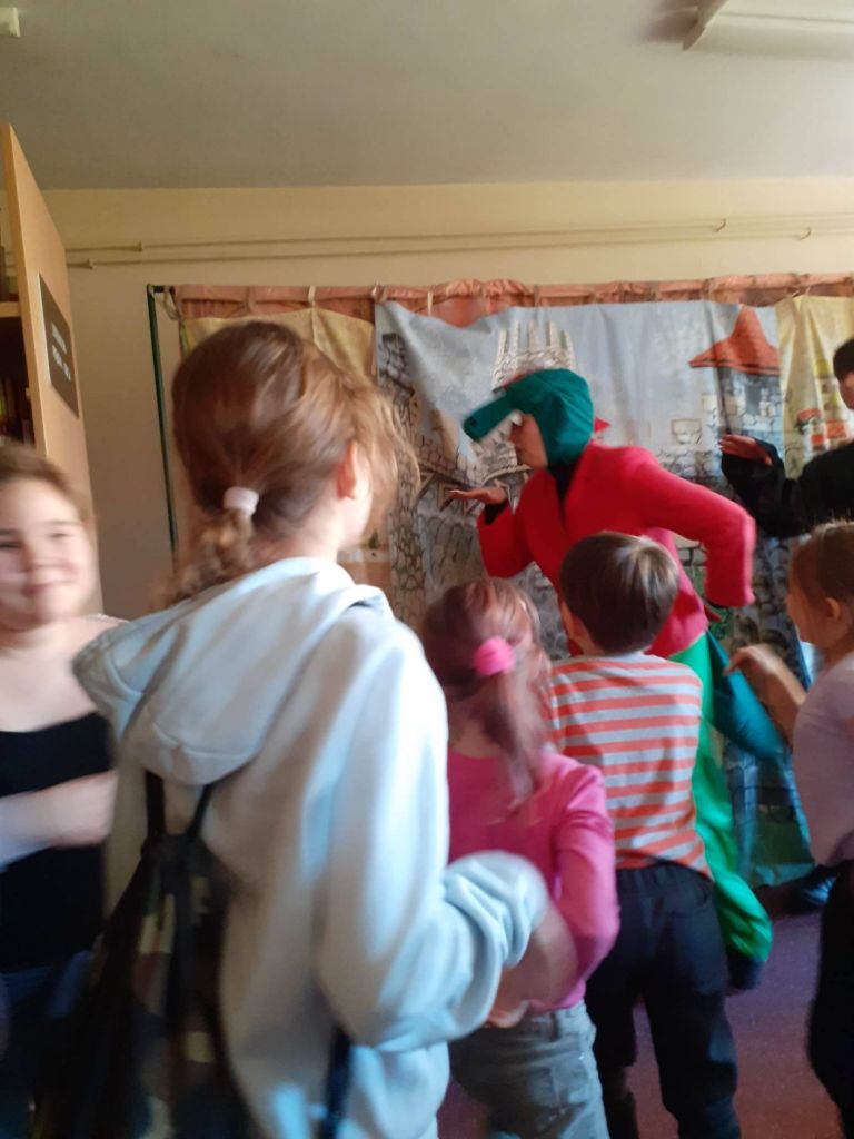 Drugi tydzień ferii zaczęliśmy teatralnie, z Baltazarem Gąbką, a konkretnie to wraz z teatrem „Blaszany Bębenek” wyruszyliśmy na jego poszukiwania. Było sporo śmiechu, ruchu i mówienia o jedzeniu – bo smok był ciągle głodny! Na szczęście po wielu perypetiach udało nam się odnaleźć Pana Profesora. Okazało się, ze zgubił się przez nieznajomych, z którymi rozmawiał po drodze. Przestrzegł nas, abyśmy nie brali z niego przykładu i sami tego nie robili. Posłuchamy jego rady. bo wiadomo, że bezpieczeństwo jest najważniejsze! Także w czasie ferii.