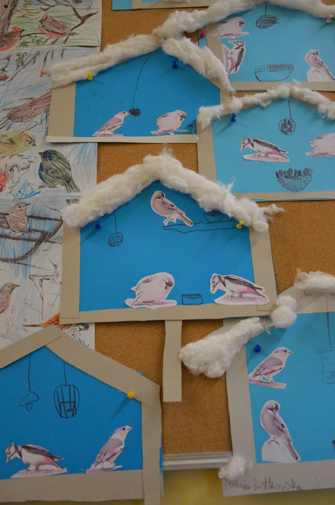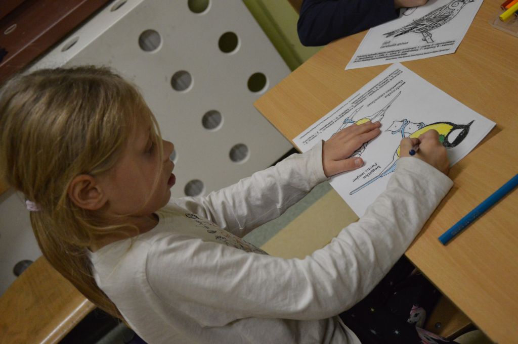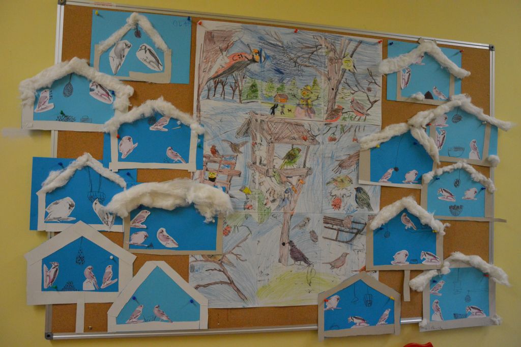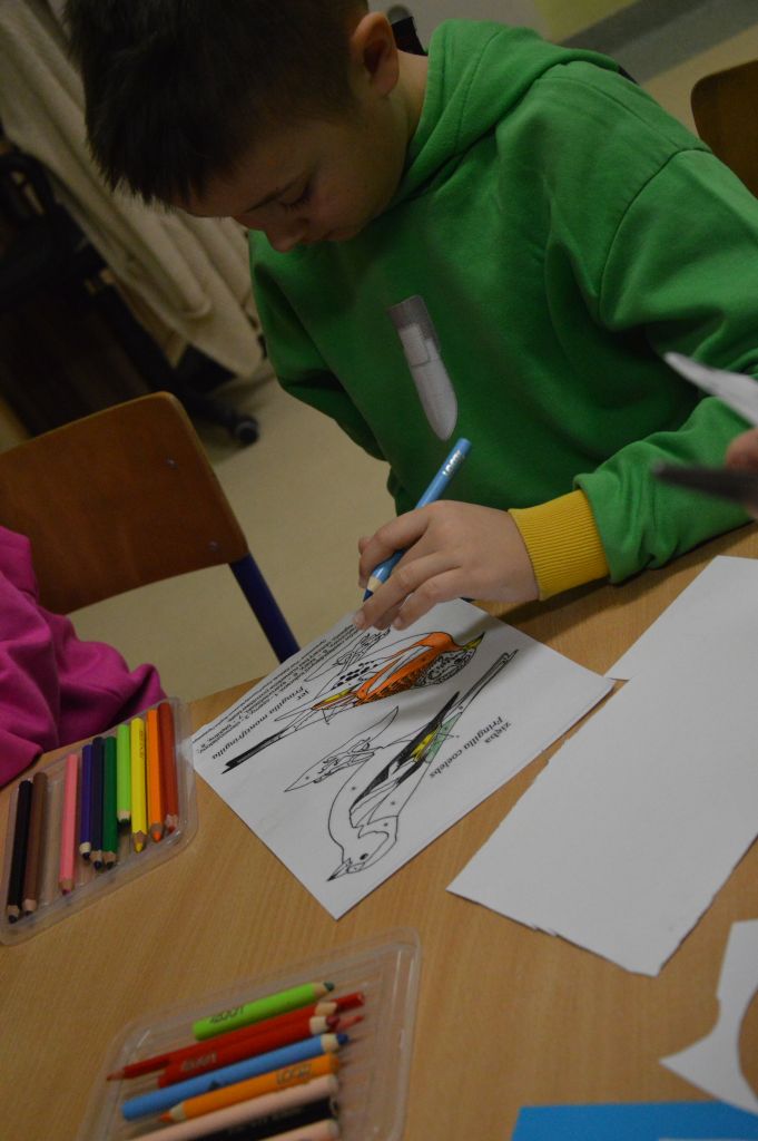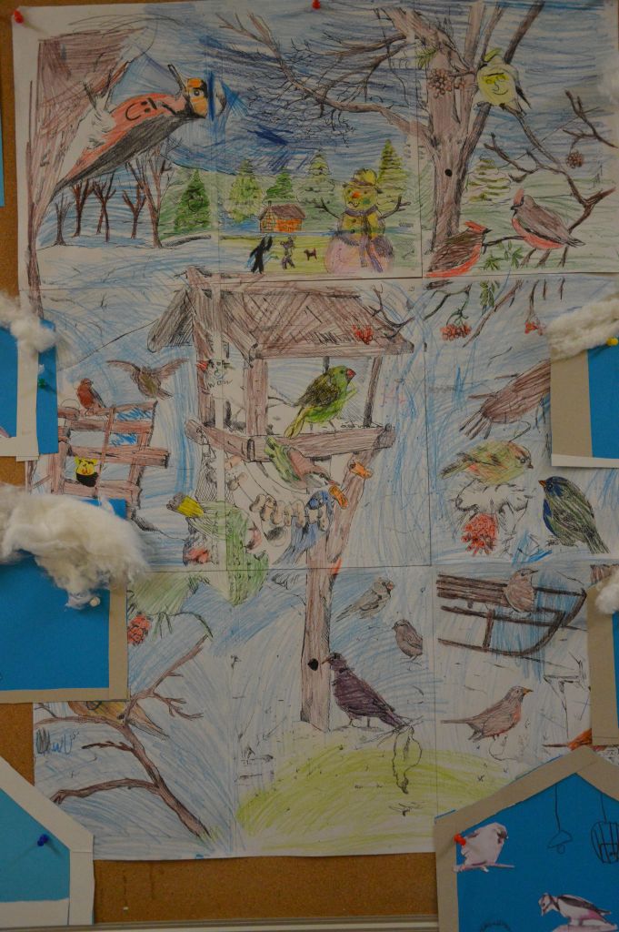 Ptaki w naszych karmnikach. Te zajęcia dały nam możliwość poznania gatunków ptaków, które odlatują z Polski do ciepłych krajów; tych które u nas zostają na zimę, ale co nas zaskoczyło – także ptaków przylatujących do nas na ten mroźny czas. Wiemy już co nieco o dzięciole, grubodziobie, czyżyku czy sójce. Poznaliśmy również kilka bardzo ważnych zasad dotyczących dokarmiania ptaków zimą. Wiemy już, żeby nie karmić ich chlebem, a ziarnami, owocami czy nawet warzywami. Okazuje się, że różne gatunki ptaków mają swoje preferencje i upodobania. Mamy też piękną zimową gazetkę, na której znalazły się karmniki dla ptaków lekko przyprószone śniegiem i kolorowanka o tej samej tematyce, która była wynikiem współpracy nas wszystkich. Bardzo pouczające zajęcia dające możliwość dyskusji, dzielenia się swoimi doświadczeniami i historiami związanymi z ptakami i ich dokarmianiem.