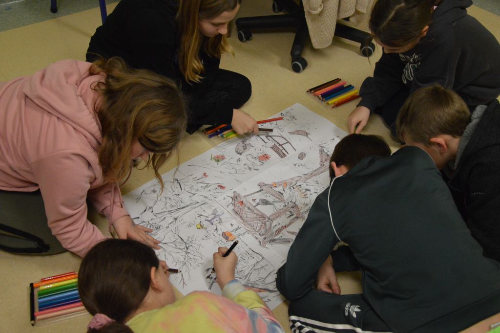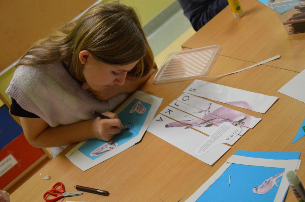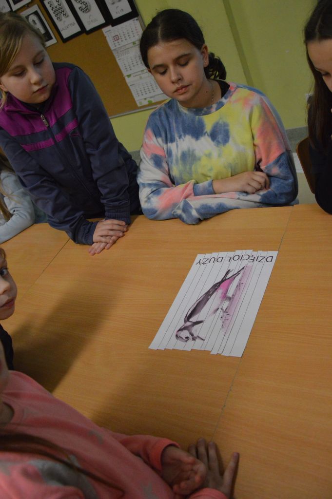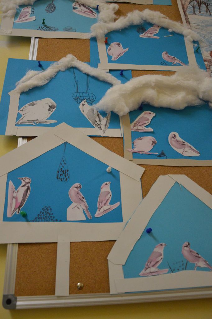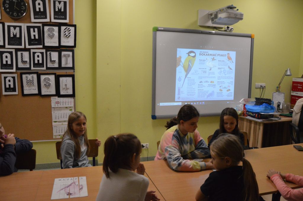 Ptaki w naszych karmnikach. Te zajęcia dały nam możliwość poznania gatunków ptaków, które odlatują z Polski do ciepłych krajów; tych które u nas zostają na zimę, ale co nas zaskoczyło – także ptaków przylatujących do nas na ten mroźny czas. Wiemy już co nieco o dzięciole, grubodziobie, czyżyku czy sójce. Poznaliśmy również kilka bardzo ważnych zasad dotyczących dokarmiania ptaków zimą. Wiemy już, żeby nie karmić ich chlebem, a ziarnami, owocami czy nawet warzywami. Okazuje się, że różne gatunki ptaków mają swoje preferencje i upodobania. Mamy też piękną zimową gazetkę, na której znalazły się karmniki dla ptaków lekko przyprószone śniegiem i kolorowanka o tej samej tematyce, która była wynikiem współpracy nas wszystkich. Bardzo pouczające zajęcia dające możliwość dyskusji, dzielenia się swoimi doświadczeniami i historiami związanymi z ptakami i ich dokarmianiem.