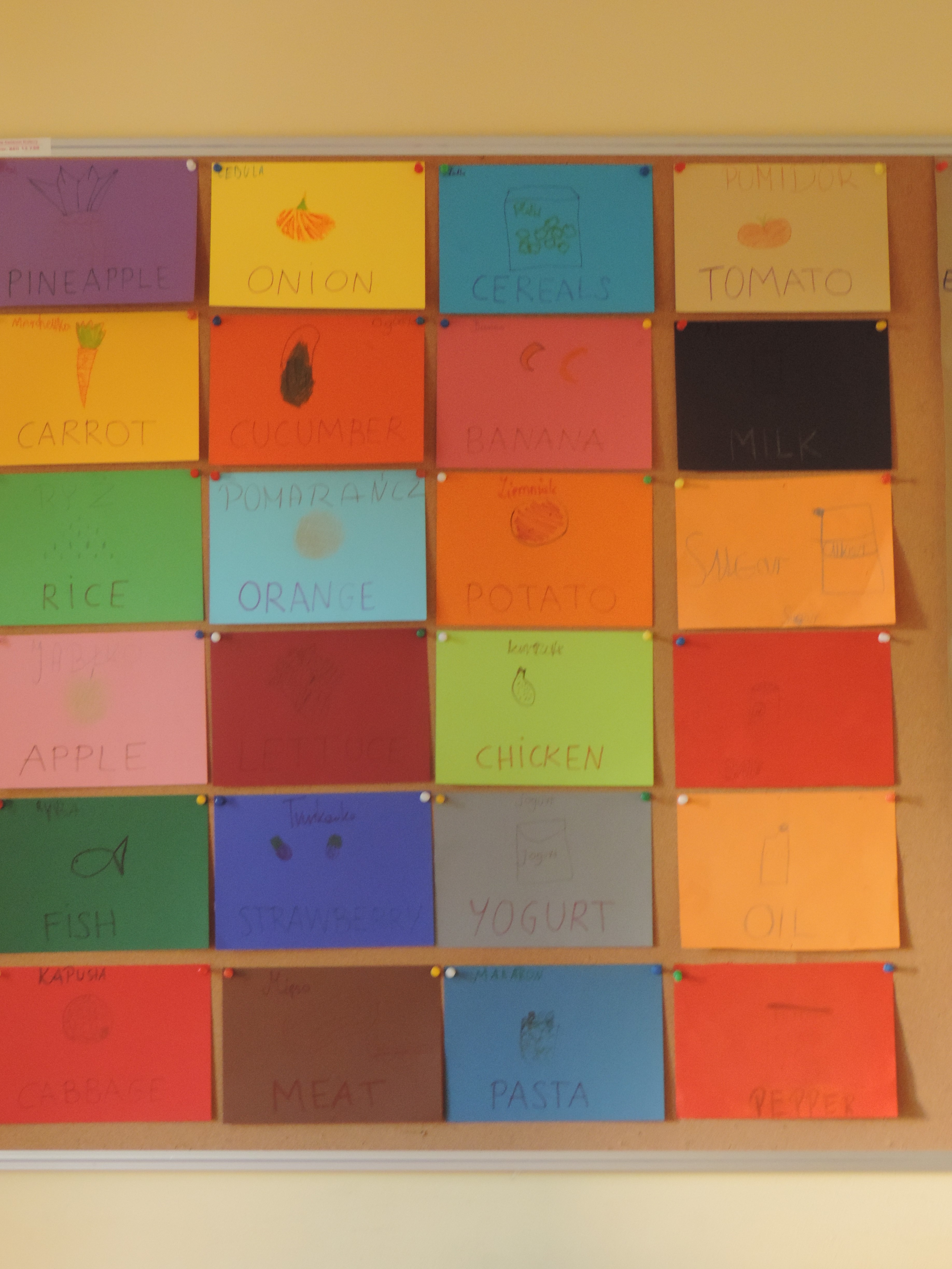 Kolejne zajęcia z j. angielskiego za nami. Dzisiaj Alvaro nauczył nas kilkunastu słówek, a wszystkie o jedzeniu: przede wszystkim owoce i warzywa, ale także inne produkty – te, które spożywamy najczęściej. Nowozdobytą wiedzę trzeba było szybko przyswoić, bo pod koniec zajęć Alvaro przeprowadził quiz. Wypadliśmy na prawdę świetnie, nasz prowadzący był z nas bardzo zadowolony.