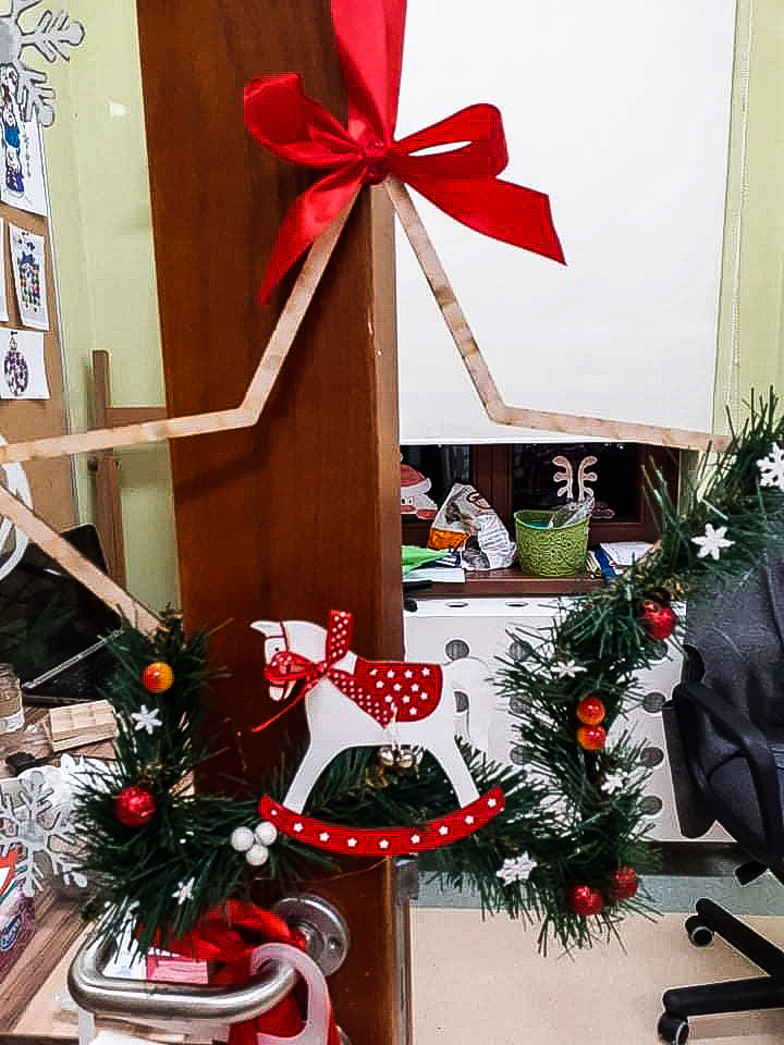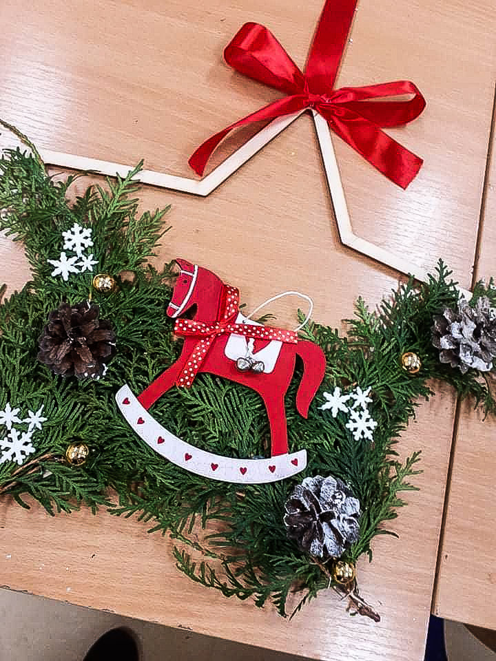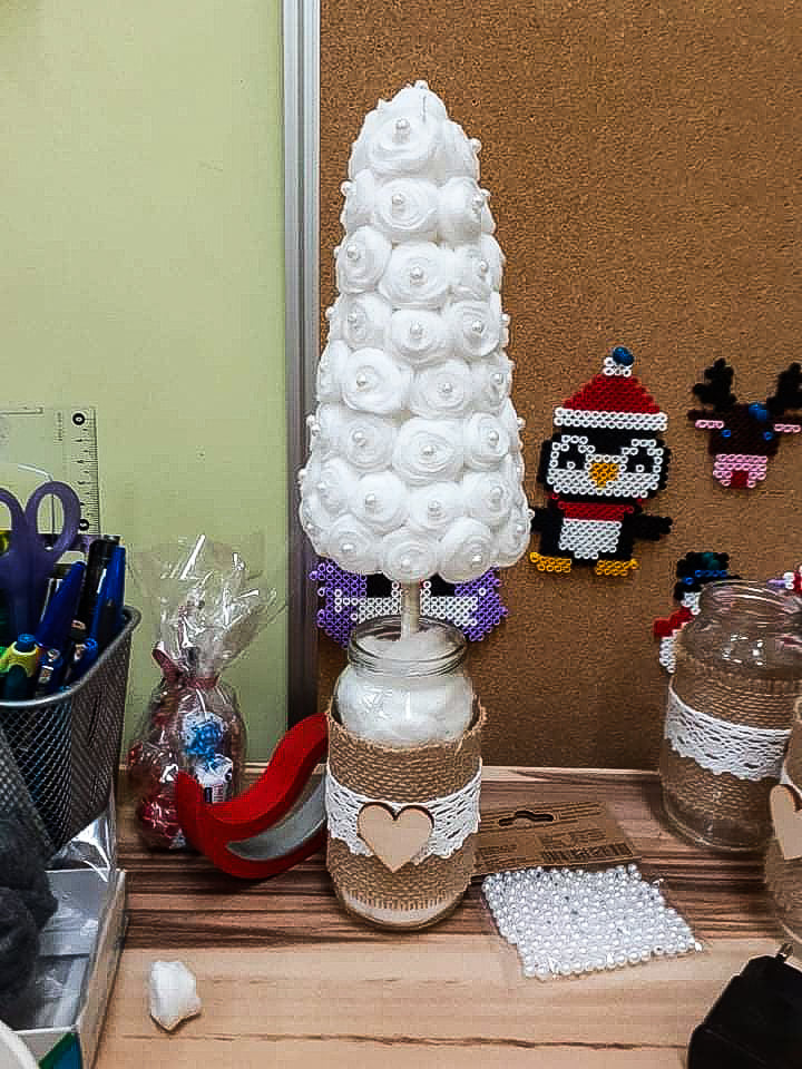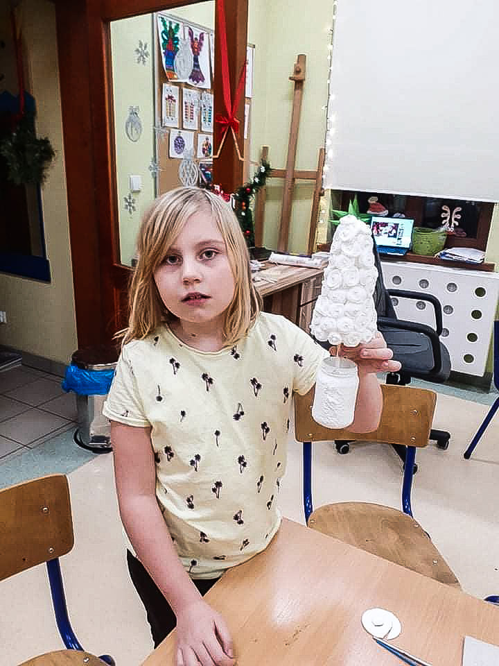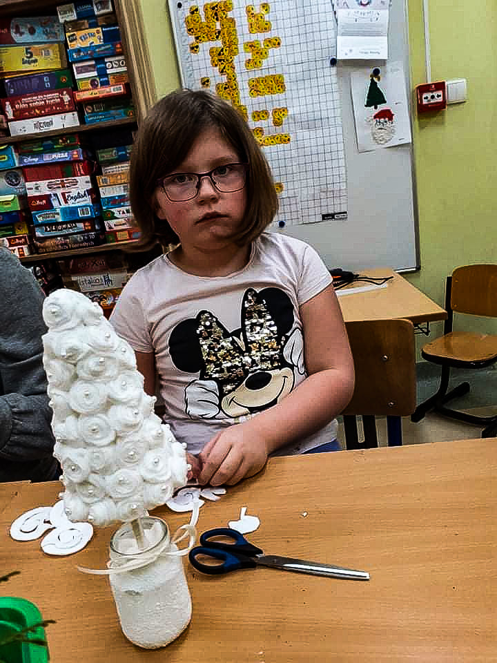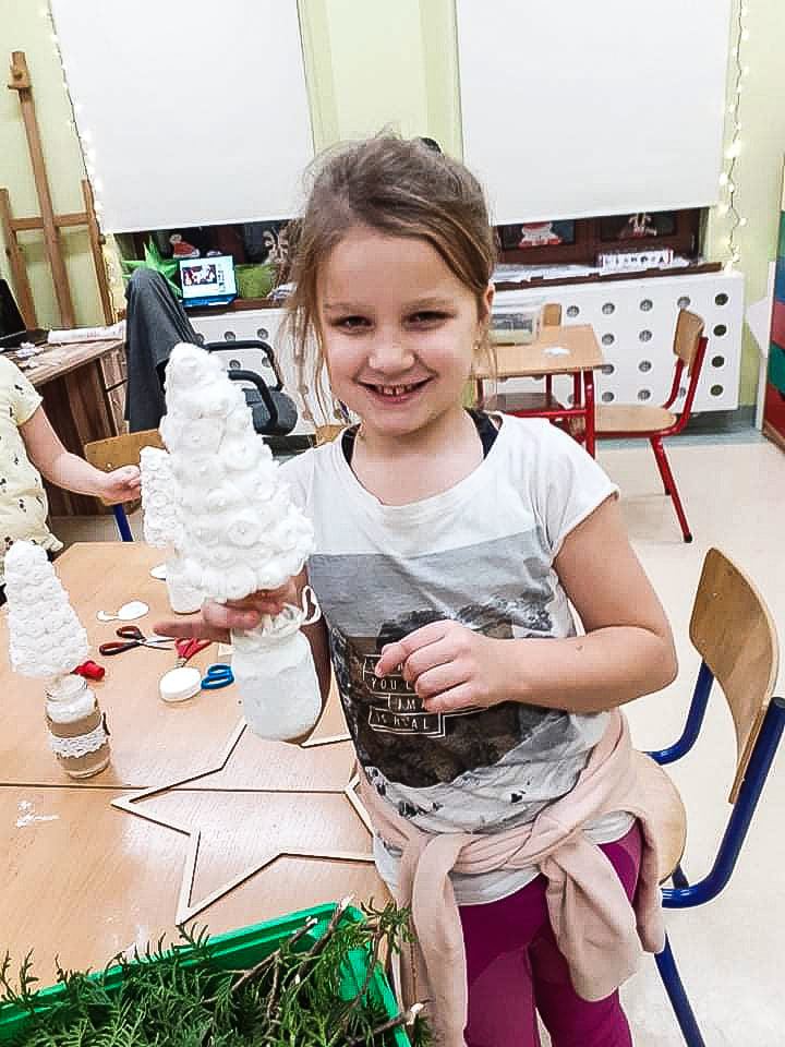 W piątek odbyły się rodzinne warsztaty świąteczne, podczas których przygotowywaliśmy ozdoby bożonarodzeniowe do swoich domów. Wystarczyły nam płatki kosmetyczne, słoiczek, kilka ozdób świątecznych, szablon gwiazdy, szyszki. W ten sposób powstały choinki i stroiki na drzwi.