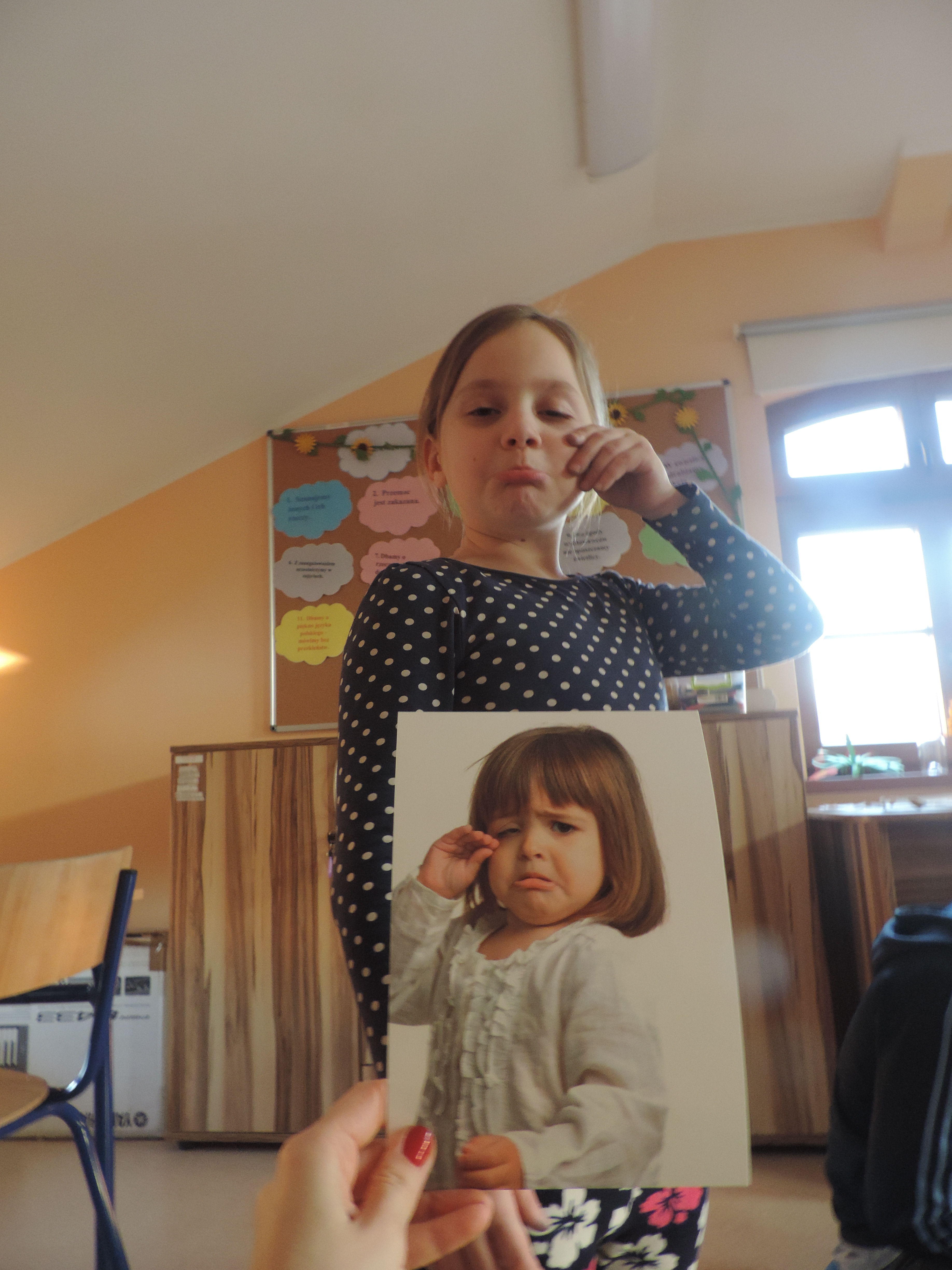 Kontynuujemy zajęcia profilaktyczne w tematyce emocji. Dzisiaj bawiliśmy się w kalambury, w których wykorzytaliśmy karty z kilkoma emocjami: gniewem, smutkiem, radością, dumą, wstrętem i wstydem. Utrwaliliśmy sobie też ich nazwy zarówno w języku polskim jak i angielskim, w czym pomógł nam Alvaro.