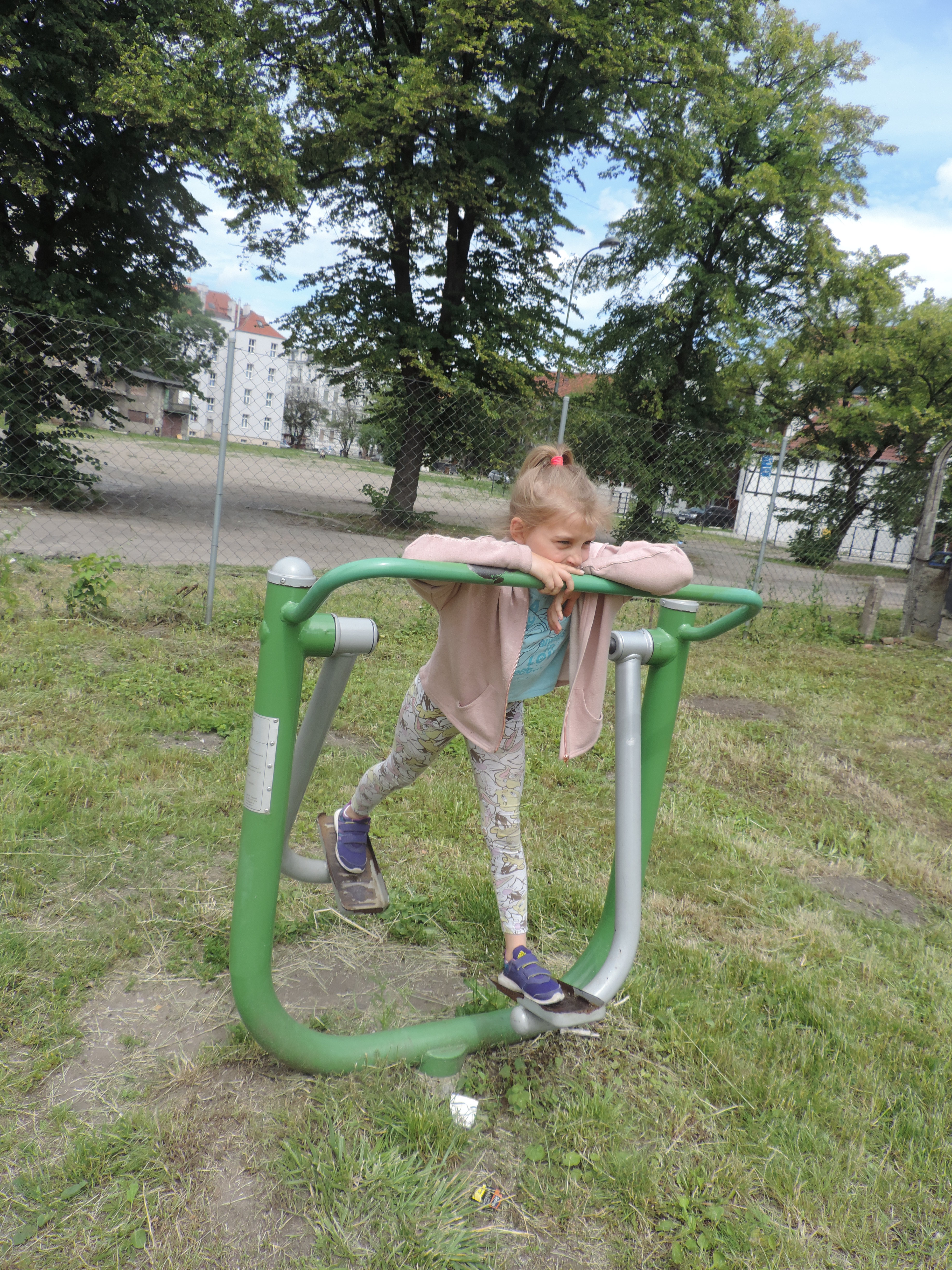 Mieliśmy dzisiaj bardzo pracowity dzień. Najpierw pielgnowaliśmy nasz przyplacówkowy ogródek – po tym, jak ciocia skosiła trawę trzeba było ją zagrabić i wrzucić do worków, co poszło nam bardzo sprawnie. Później mogliśmy się już bawić na naszym czystym placu zabaw. Przed posiłkiem postanowiliśmy jeszcze troszkę poćwiczyć. W tym celu odwiedziliśmy pobliską siłownię pod chmurką. Bawiliśmy się wyśmienicie. Sport to zdrowie!