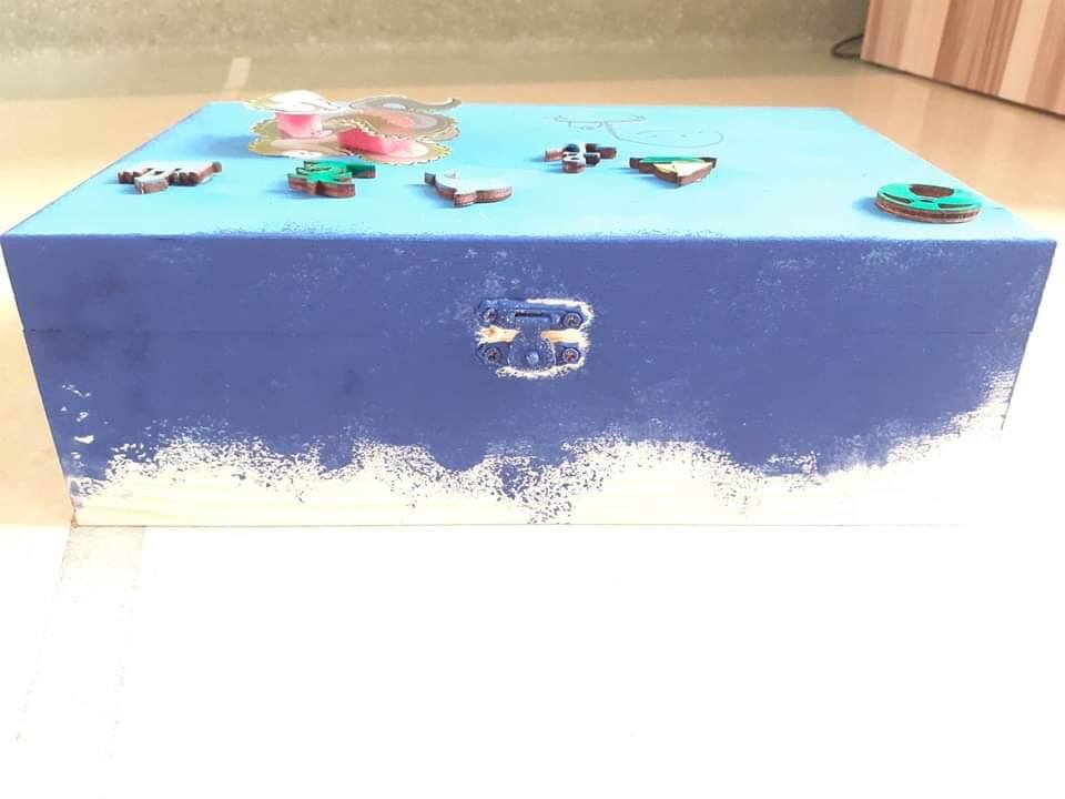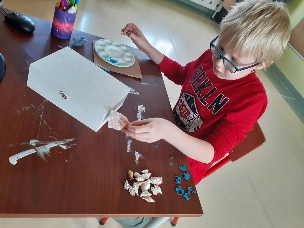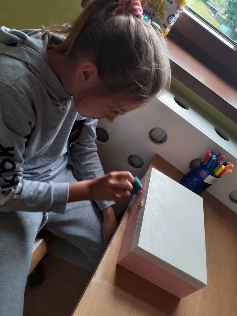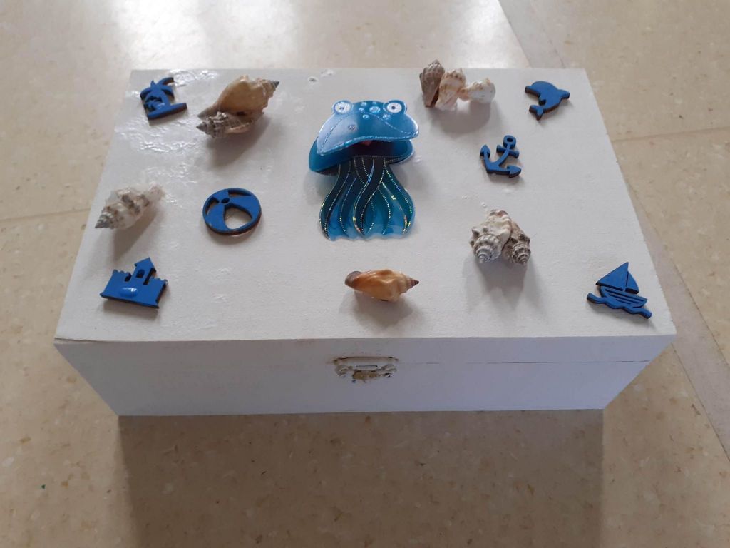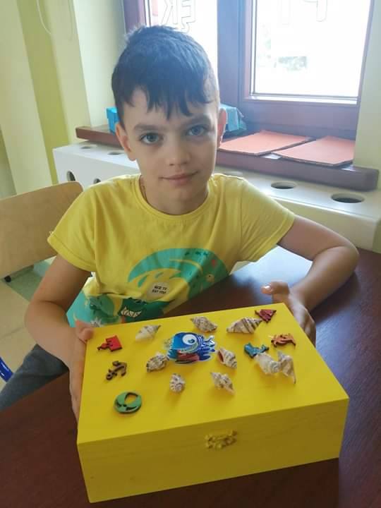 Wakacje trwają w najlepsze, u nas również. Tym razem chcieliśmy zadbać o nasze wakacyjne skarby: kamyczki, patyczki, muszelki, bursztyny, o wszystko to, co znajdujemy podczas naszych podróży małych i dużych. Dlatego powstały pięknie zdobione skrzyneczki. Wśród ozdób oczywiście królowała tematyka morska i wakacyjna.